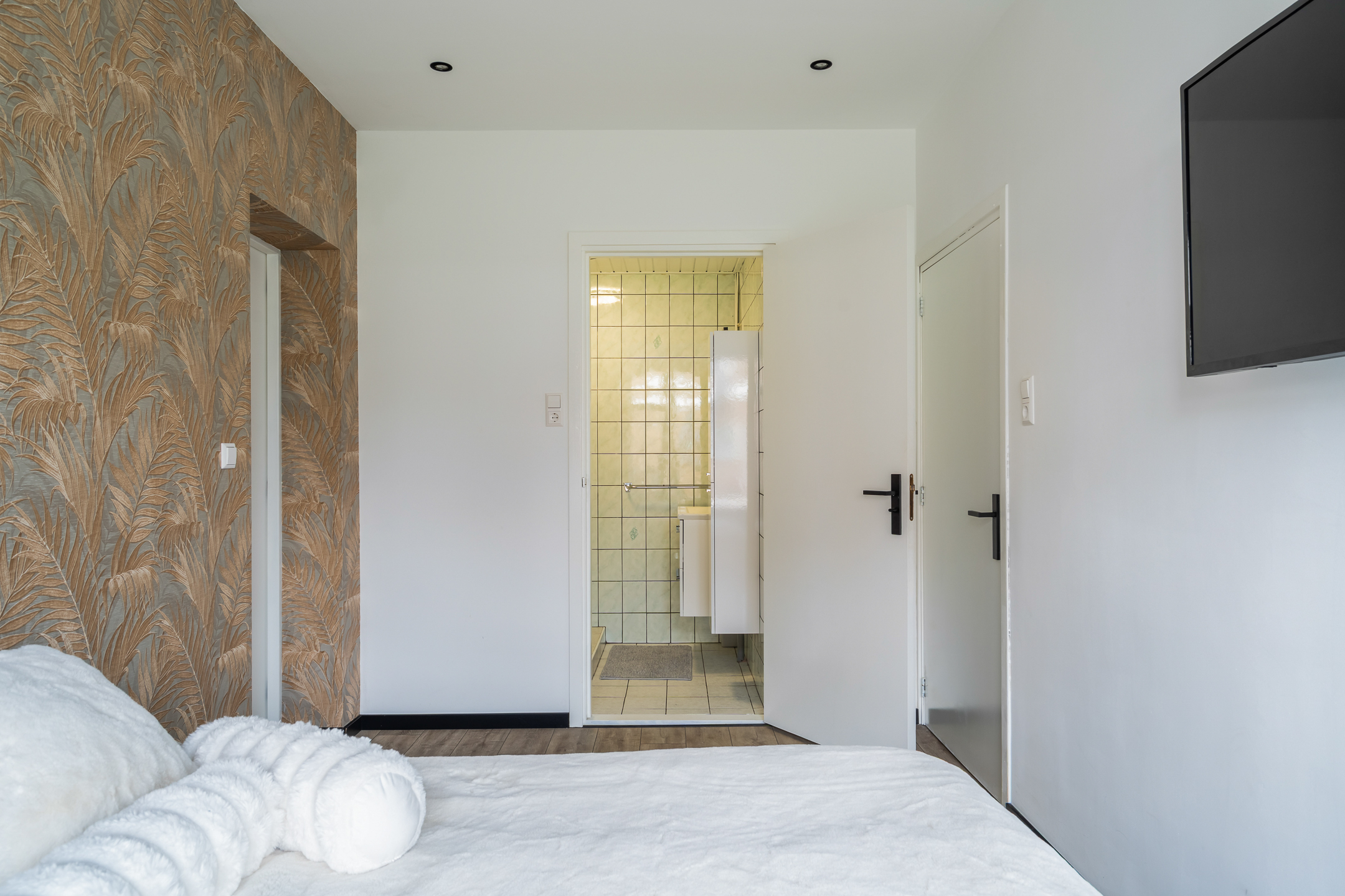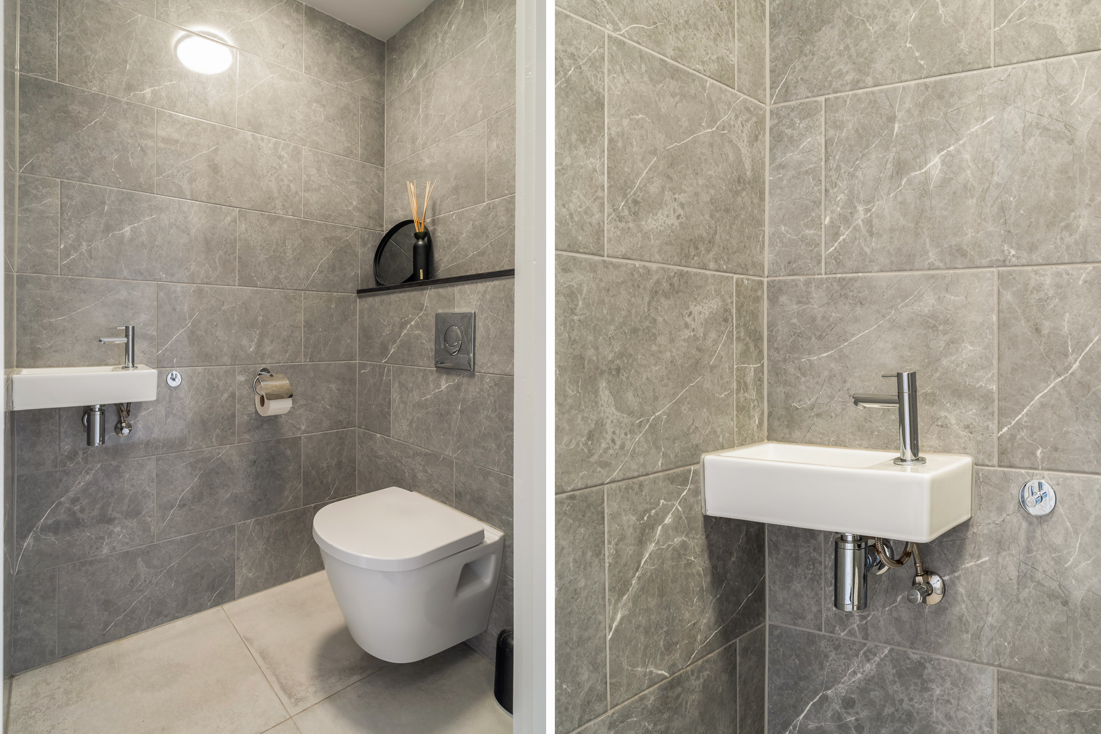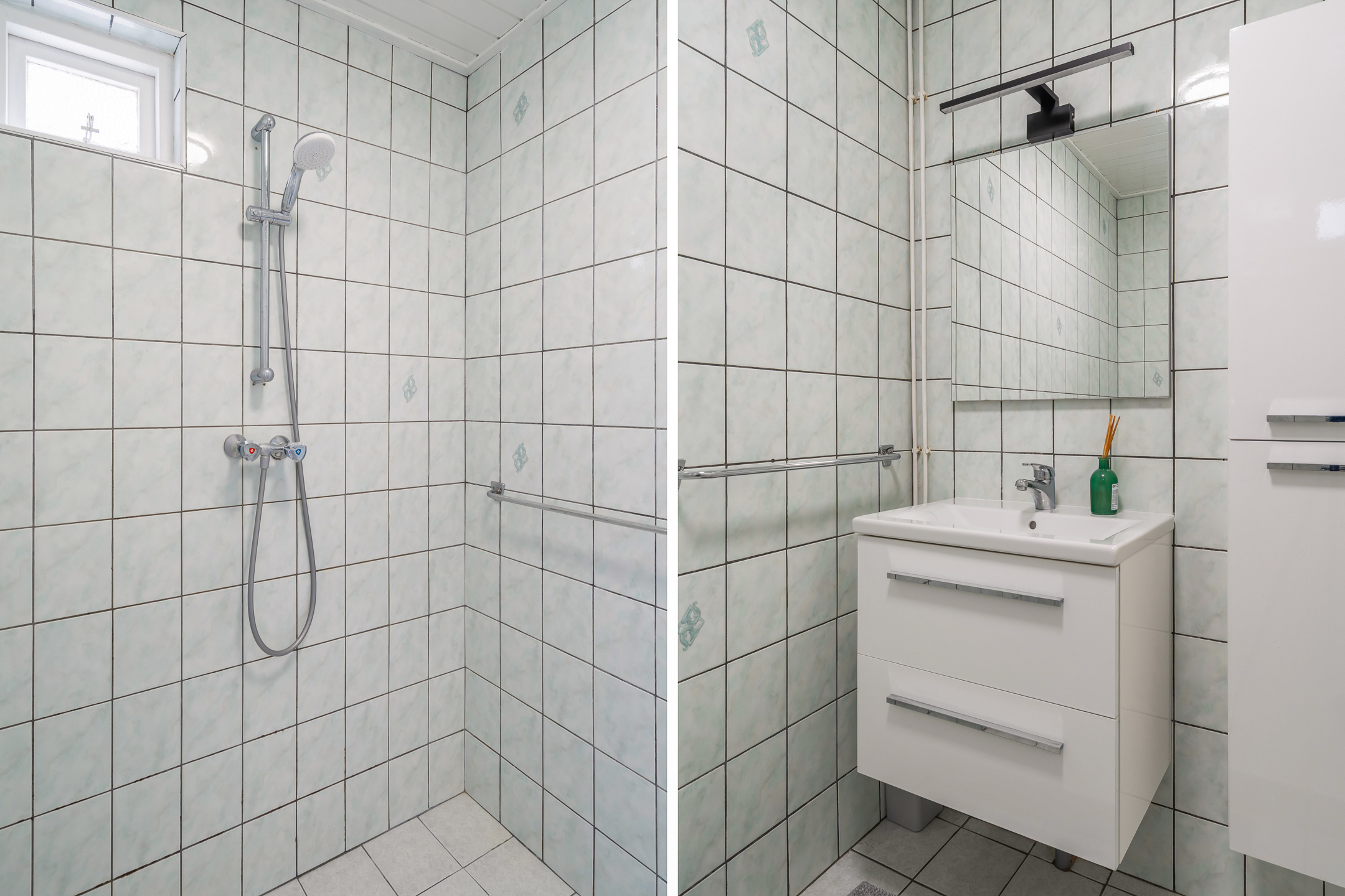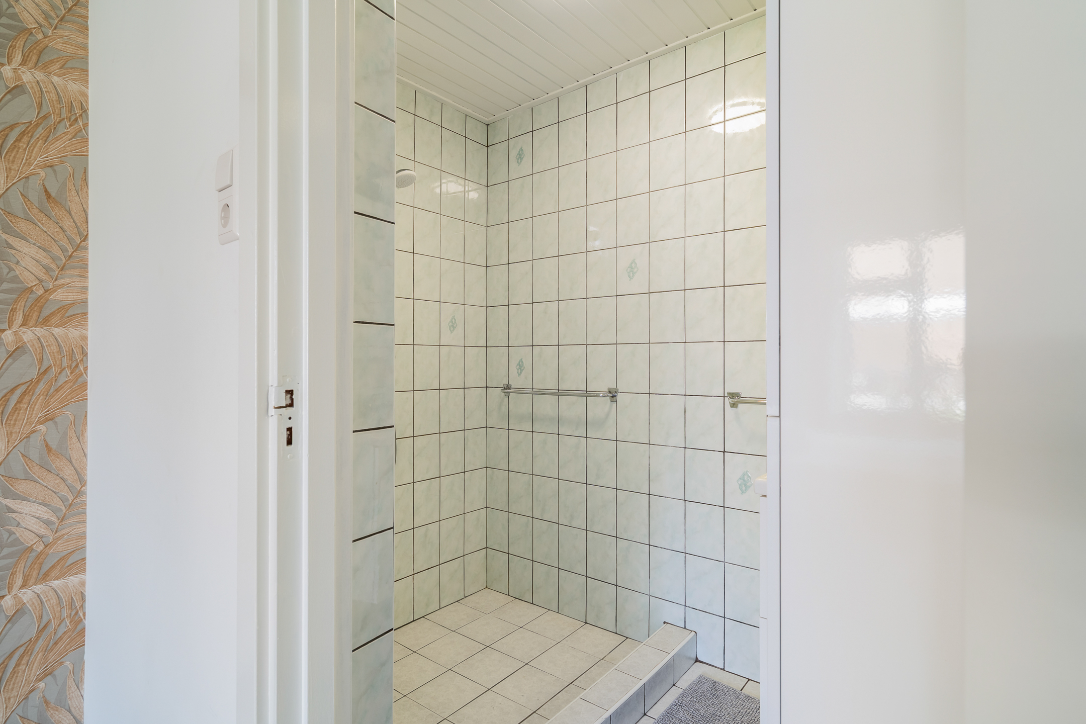 -Badkamer met douche en wastafelmeubel, bereikbaar via ouderslaapkamer. Deze is nog 30 cm uit te breiden door een loze ruimte die zich bevindt tussen de badkamer en het toilet.