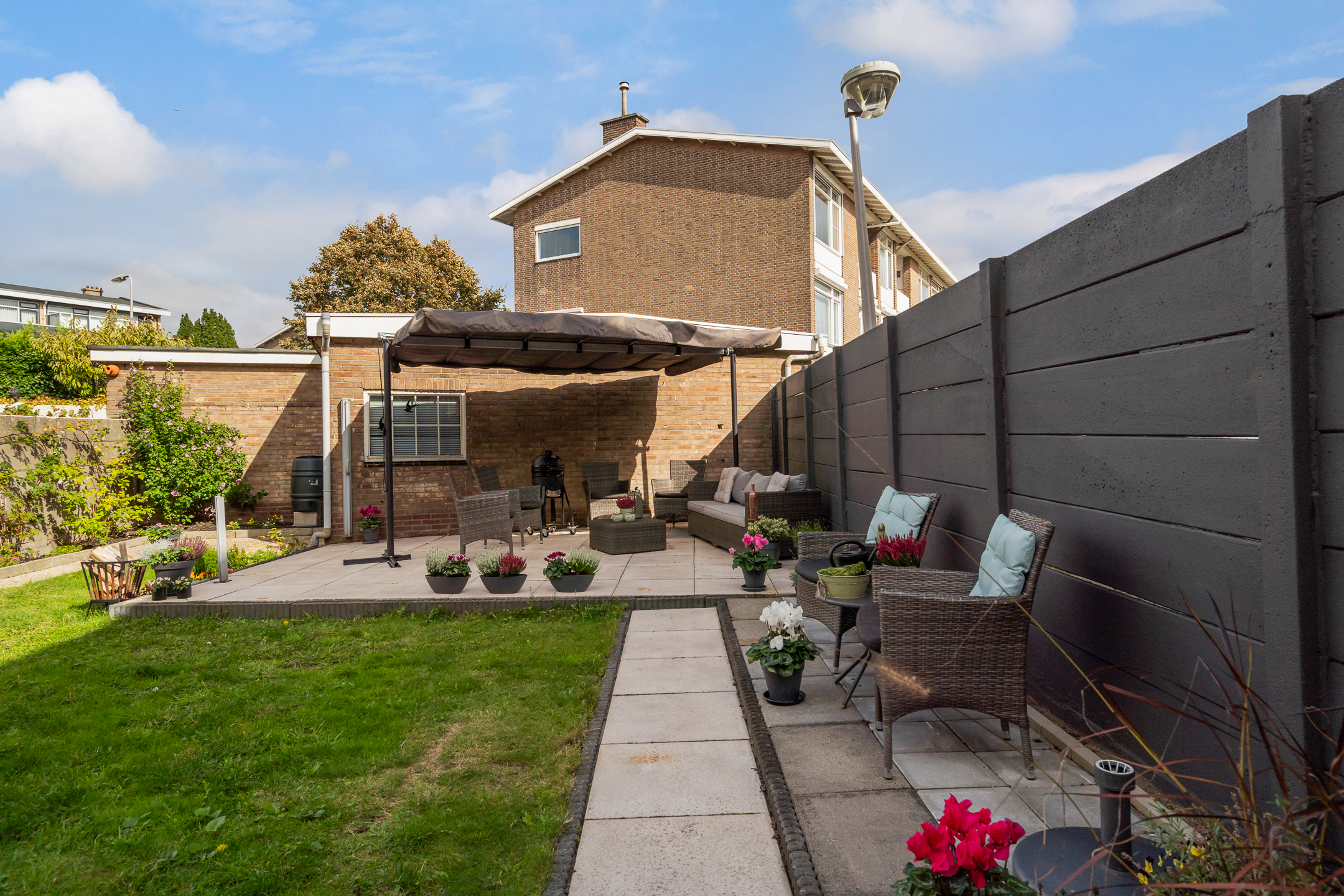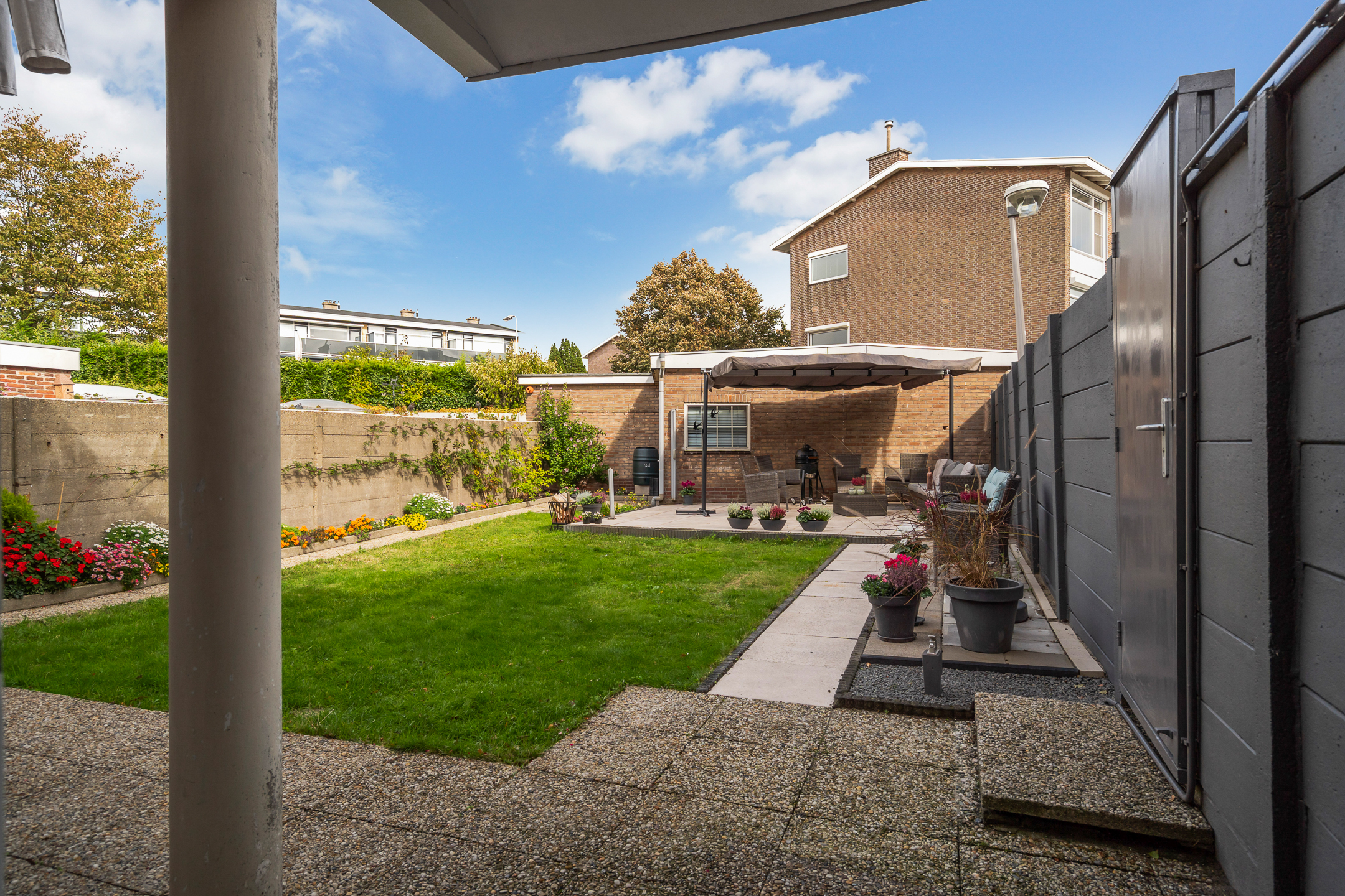-Zonnige achtertuin en toegang tot de garage met automatische deur