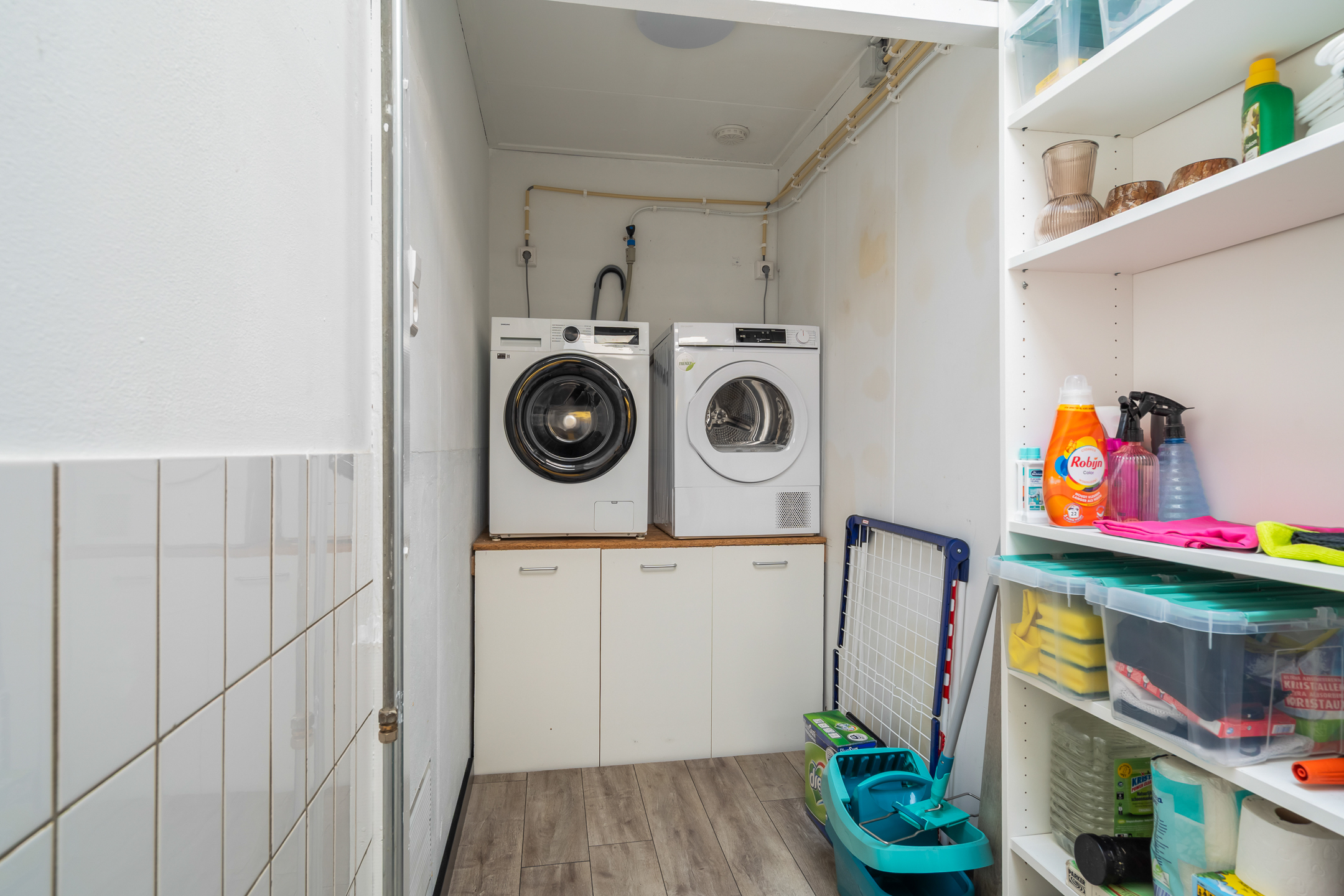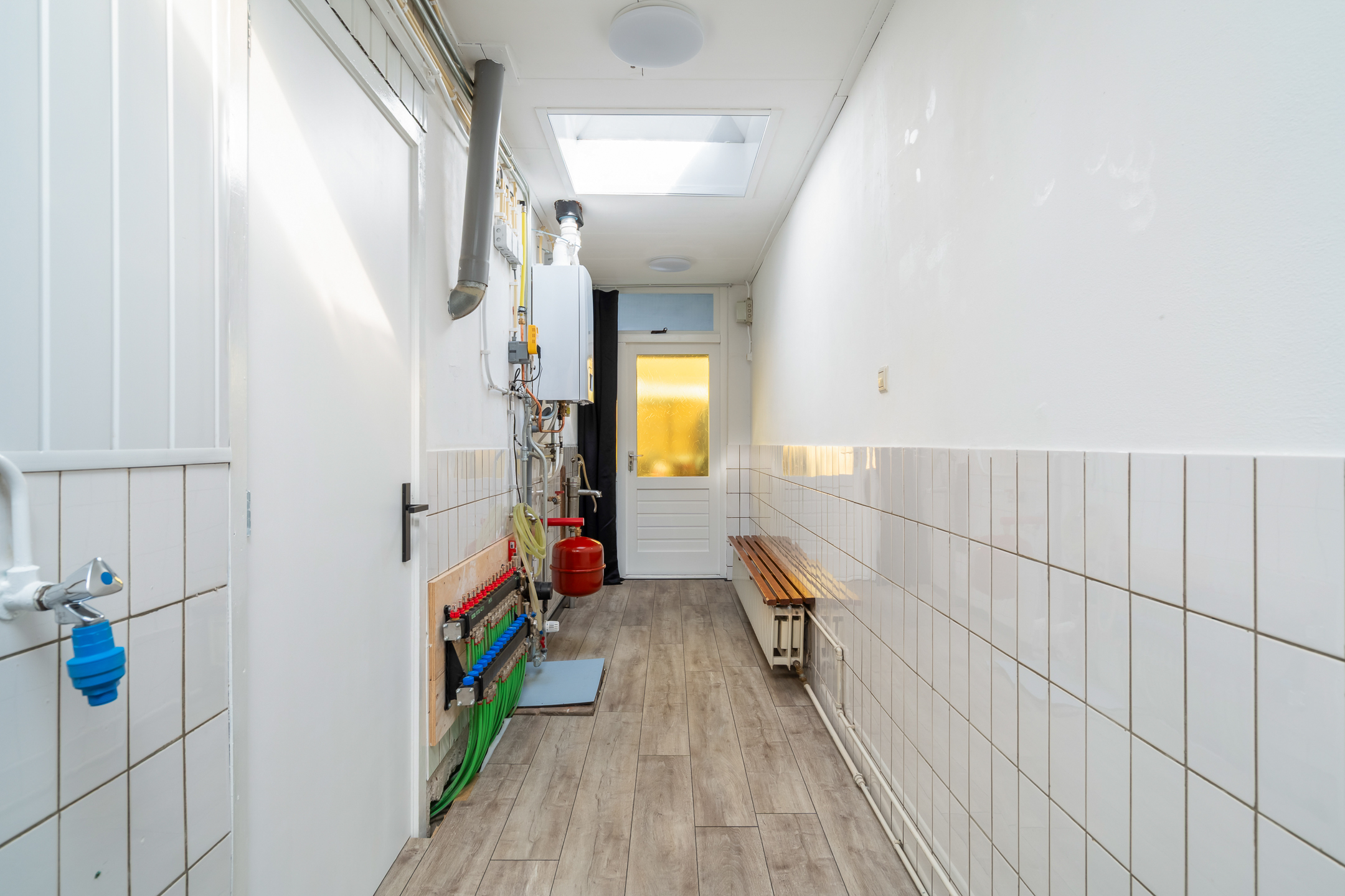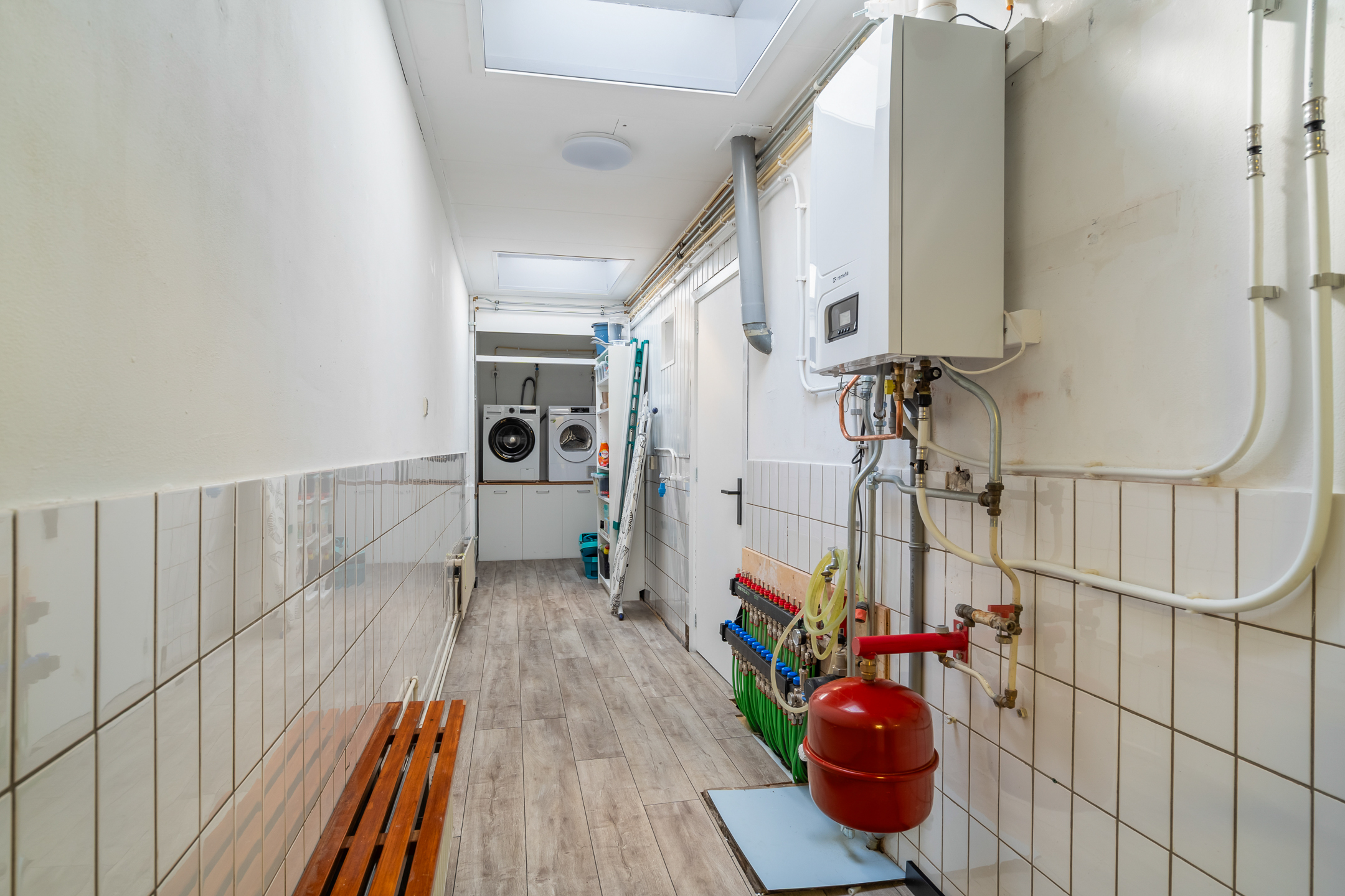 -Bijkeuken met opstelplaats cv-ketel (2023), wasmachine en voorraadruimte, toegang tot tuin
