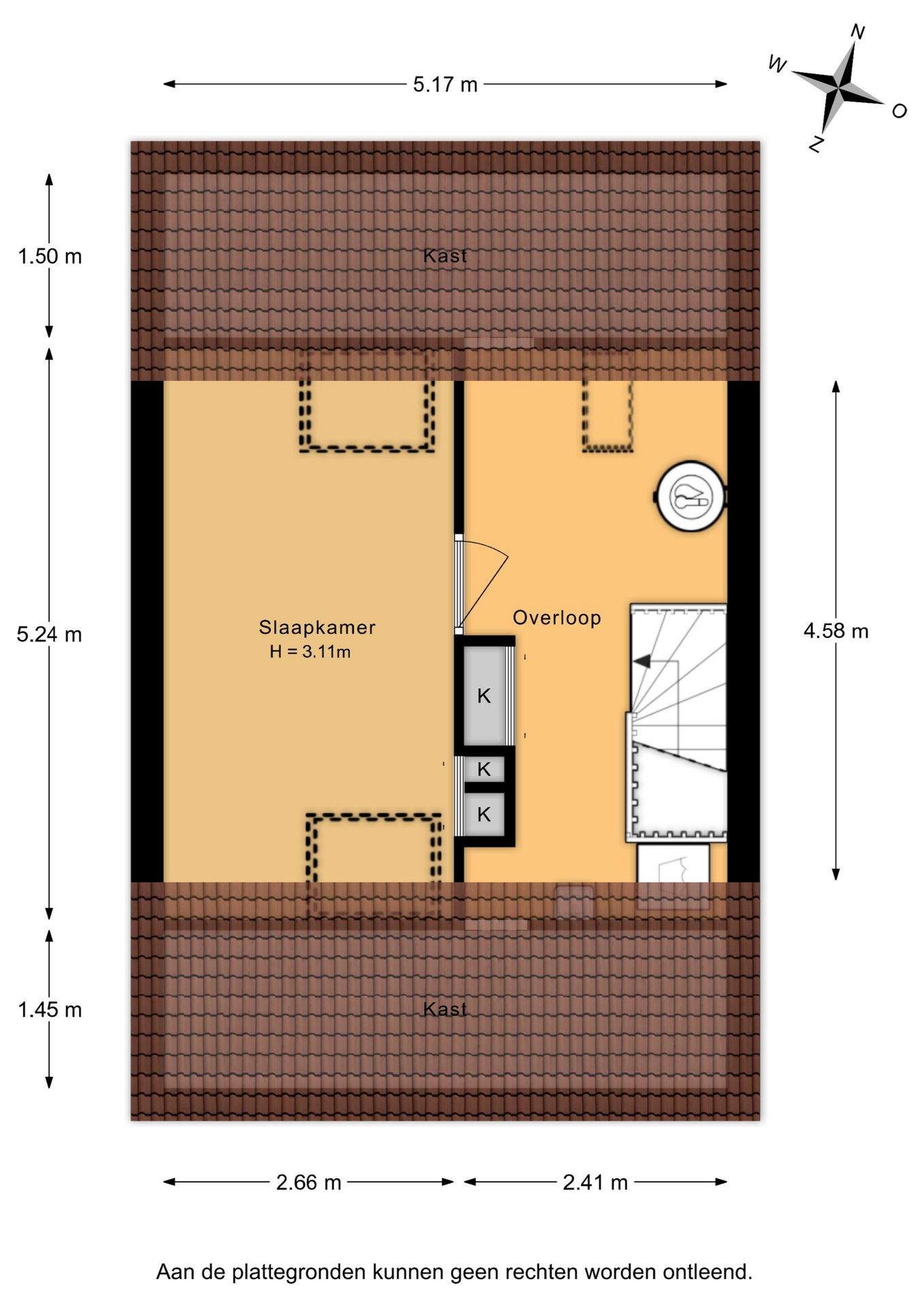 Deze informatie is geheel vrijblijvend, uitsluitend voor geadresseerde bestemd en niet bedoeld als aanbod. De vermelde maten zijn circa-maten. Ten aanzien van de juistheid van de vermelde informatie kan door de verkopend makelaar en haar opdrachtgever geen aansprakelijkheid worden aanvaard, noch kan aan de vermelde informatie enig recht worden ontleend.