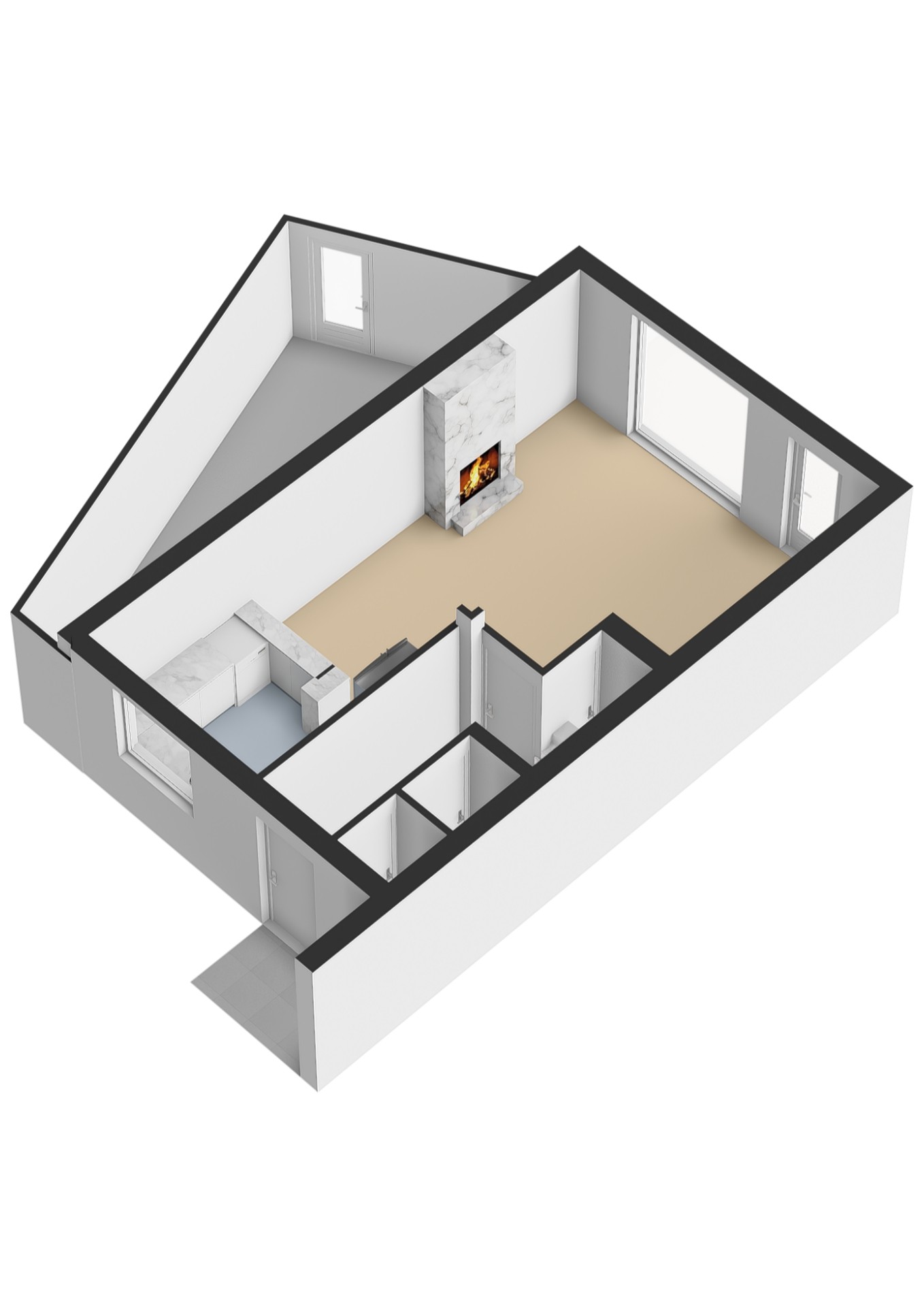- Overloop met toegang tot alle vertrekken en vaste trap naar de tweede etage;
