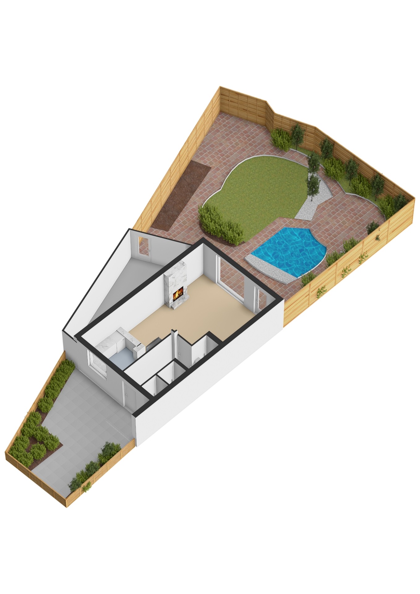 - Oppervlakte hoofdtuin ca. 102 m2