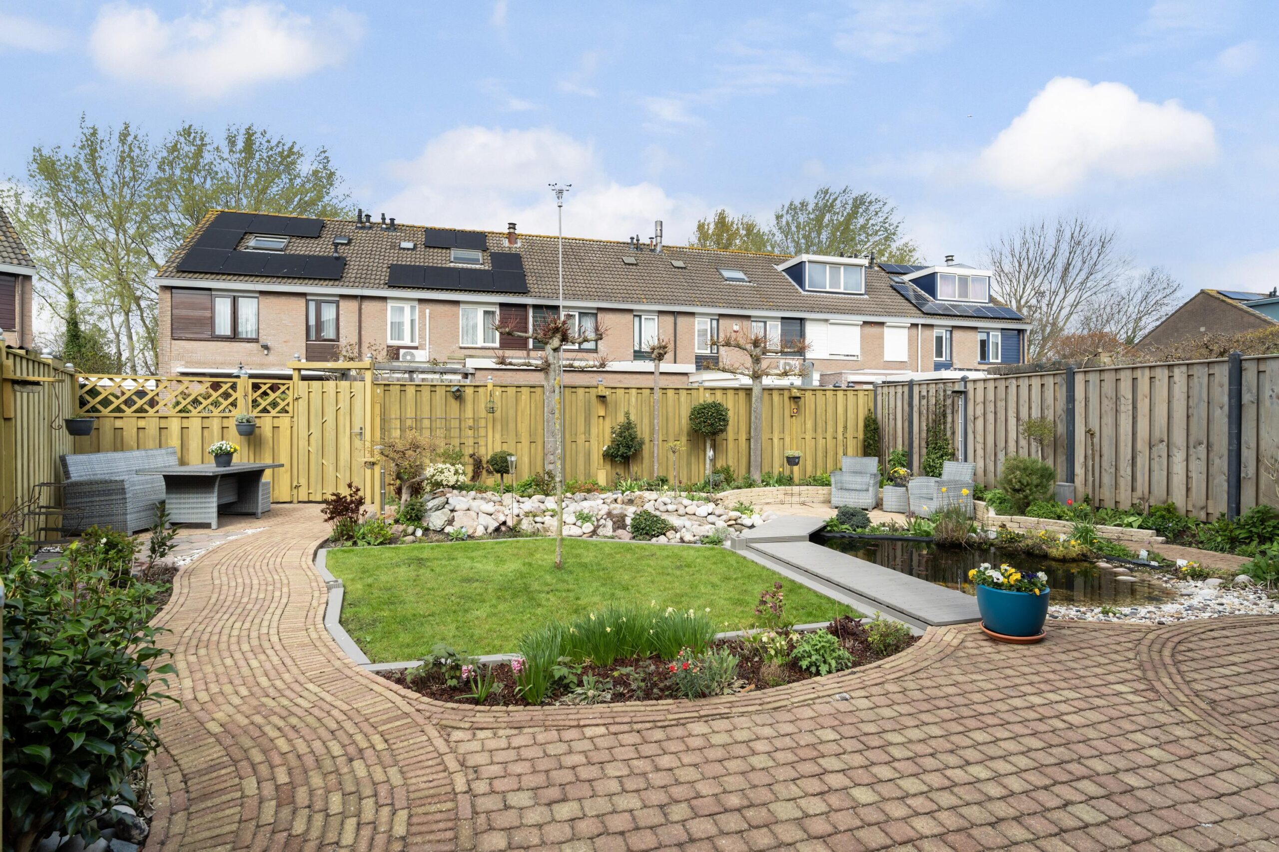De woning staat op een royaal perceel van 225 m² en beschikt over een verzorgde achtertuin met meerdere terrassen, waardoor u op elk moment van de dag kunt genieten van zon én schaduw. Aan…