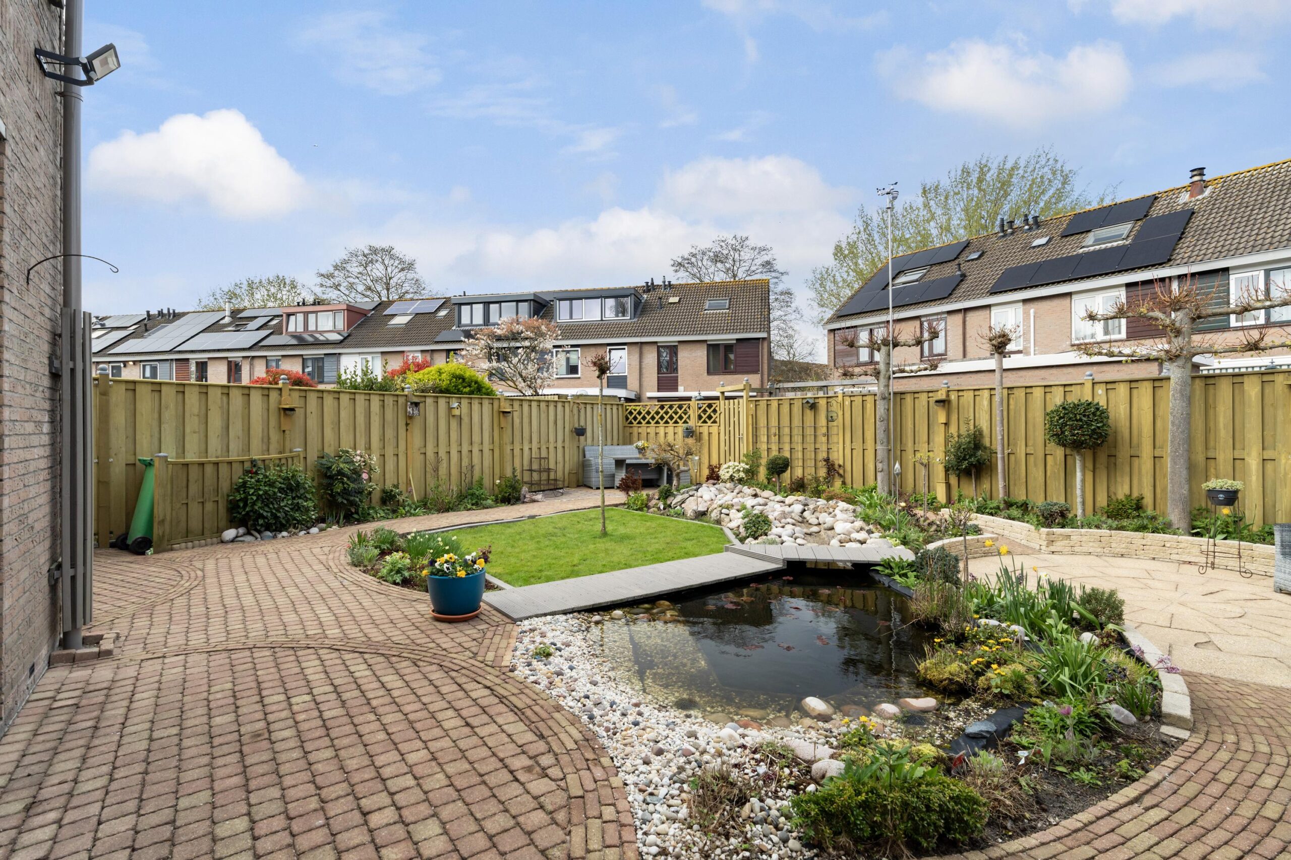 De woning staat op een royaal perceel van 225 m² en beschikt over een verzorgde achtertuin met meerdere terrassen, waardoor u op elk moment van de dag kunt genieten van zon én schaduw. Aan de voorzijde kijkt u vrij uit over een groenplantsoen. Met drie volwaardige slaapkamers (en de mogelijkheid tot vier), energielabel A en een praktische indeling is dit een ideale woning voor gezinnen.