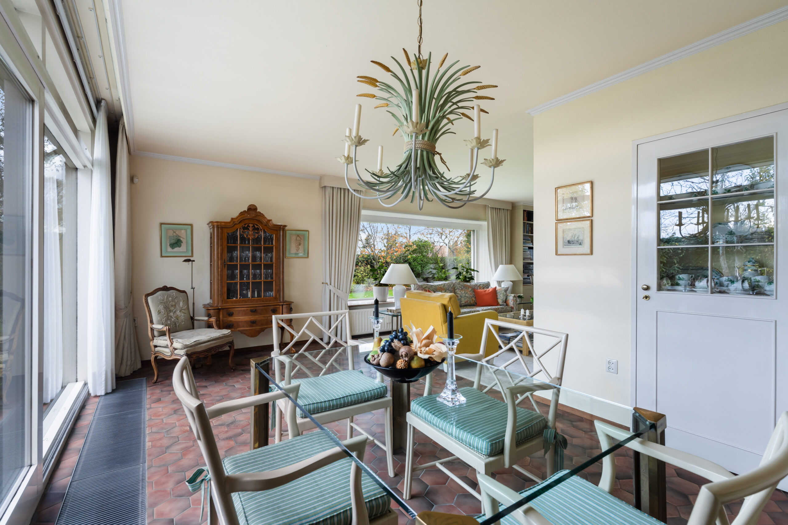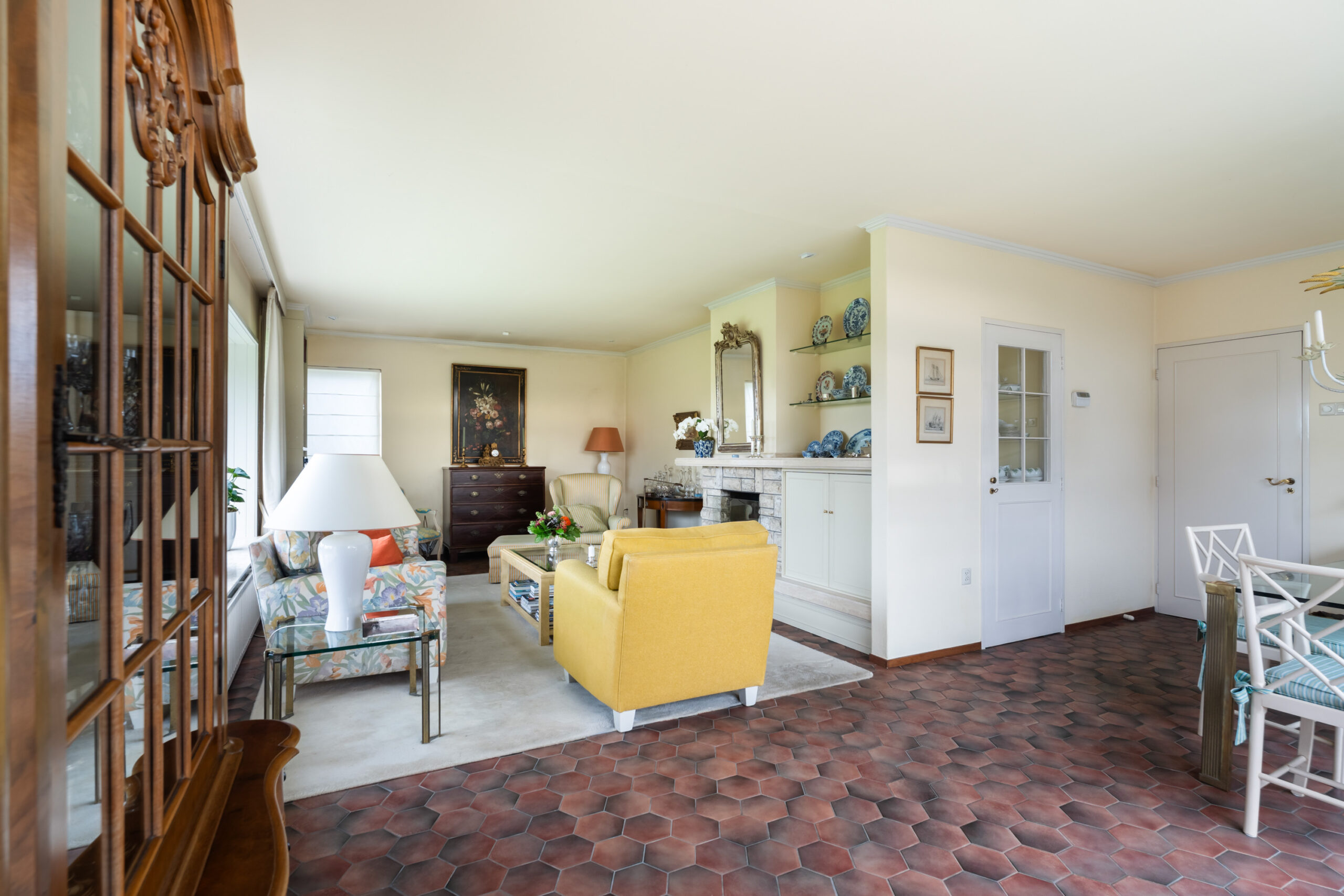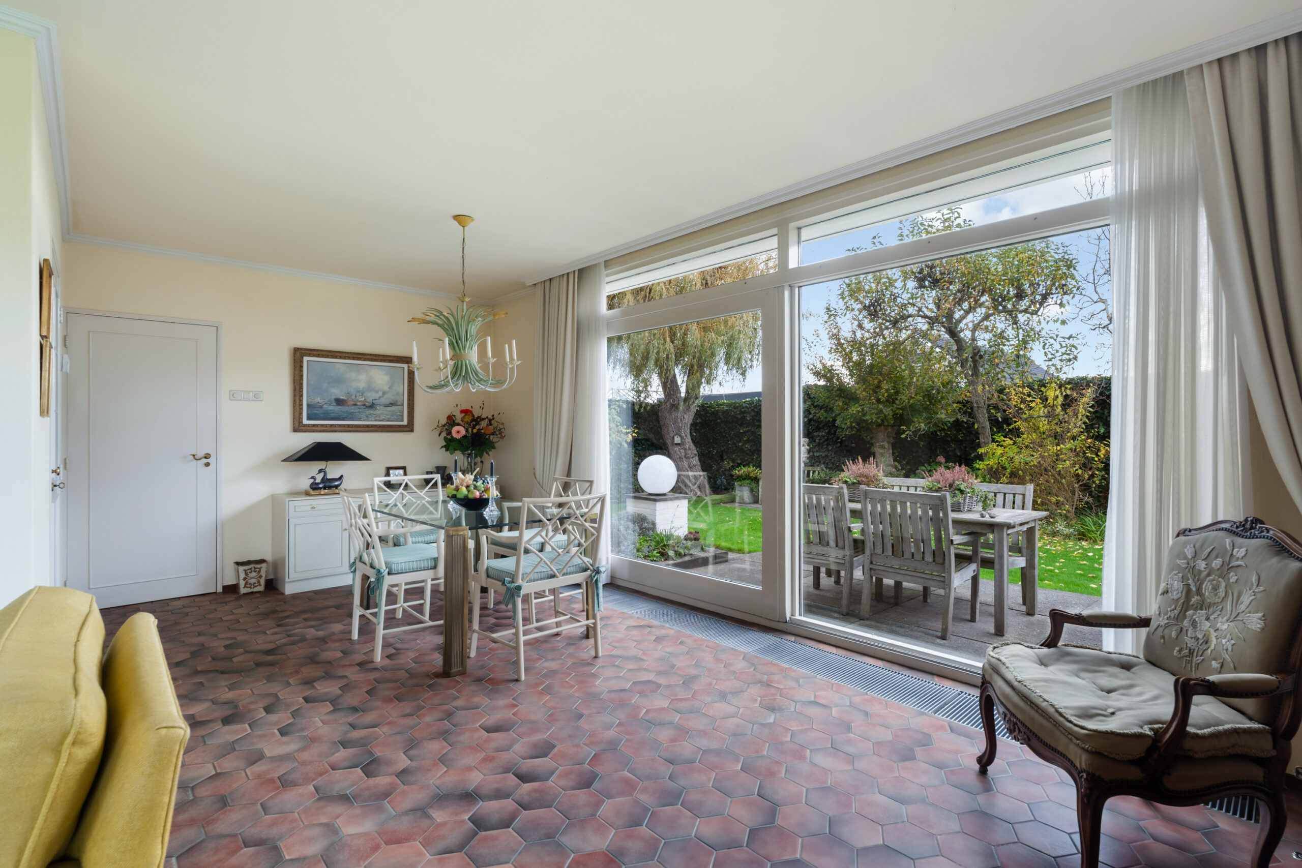 - Riante en lichte woonkamer (ca. 40 m²) met een op gasgestookte open haard, veel raampartijen en schuifpuien naar de tuin;