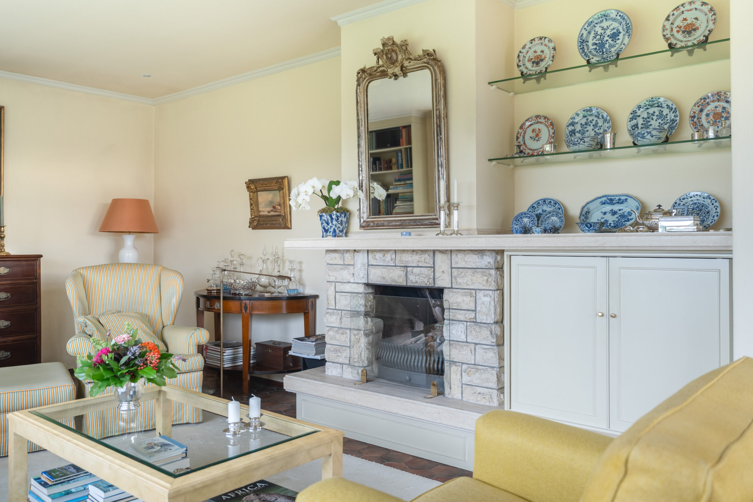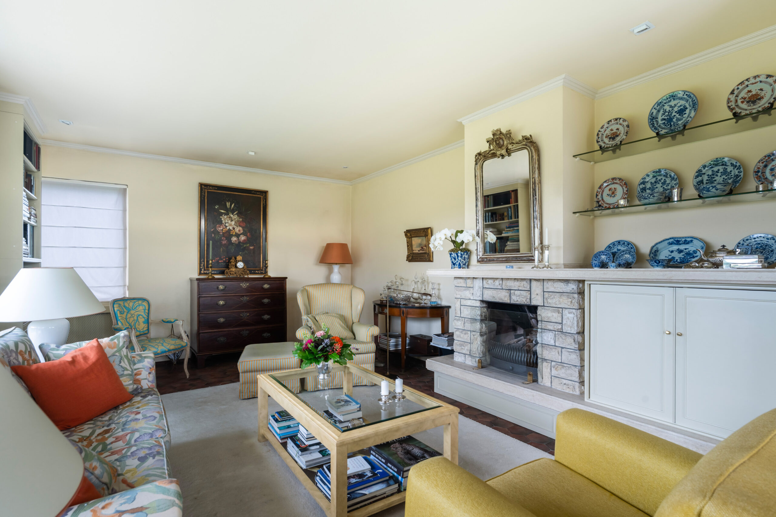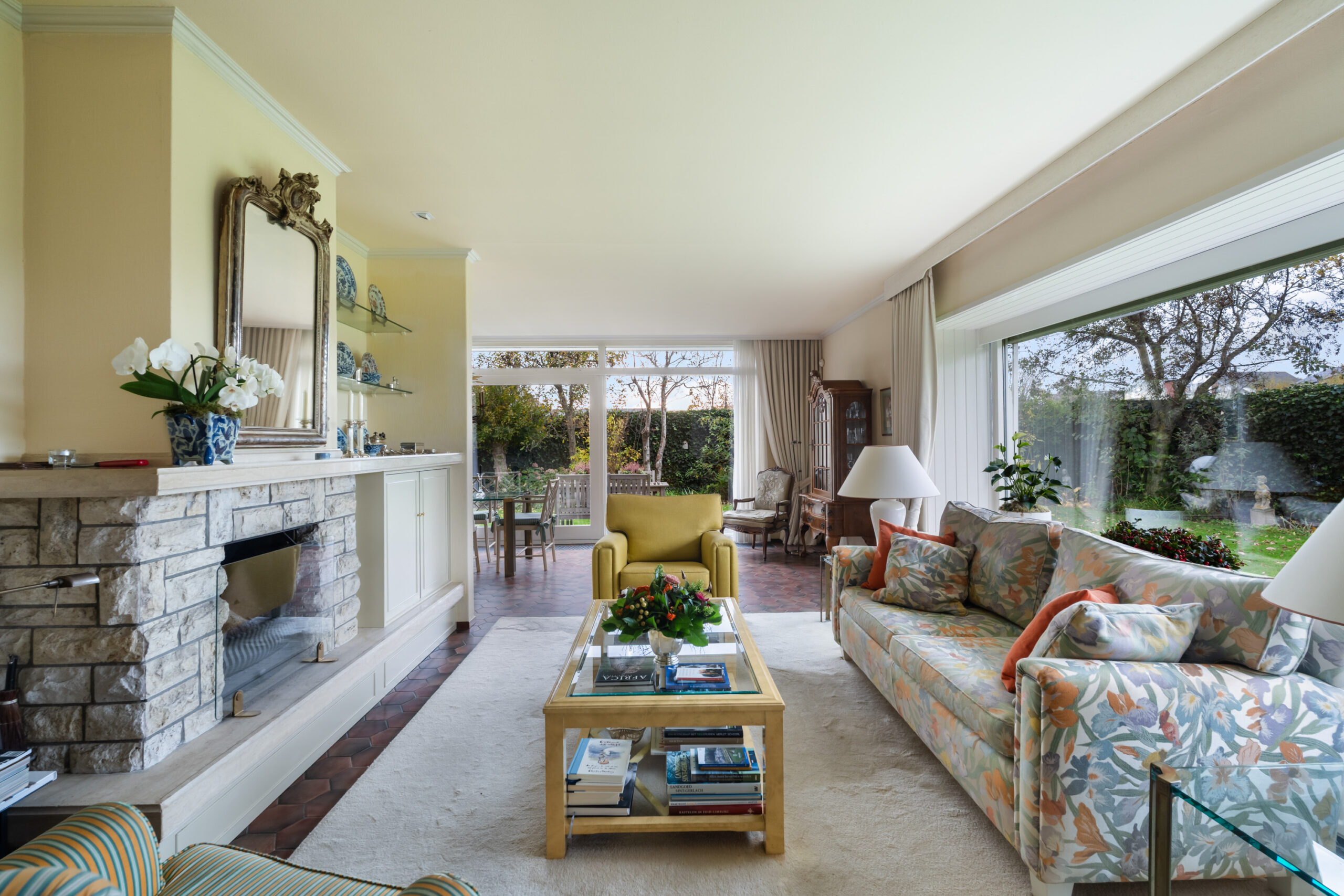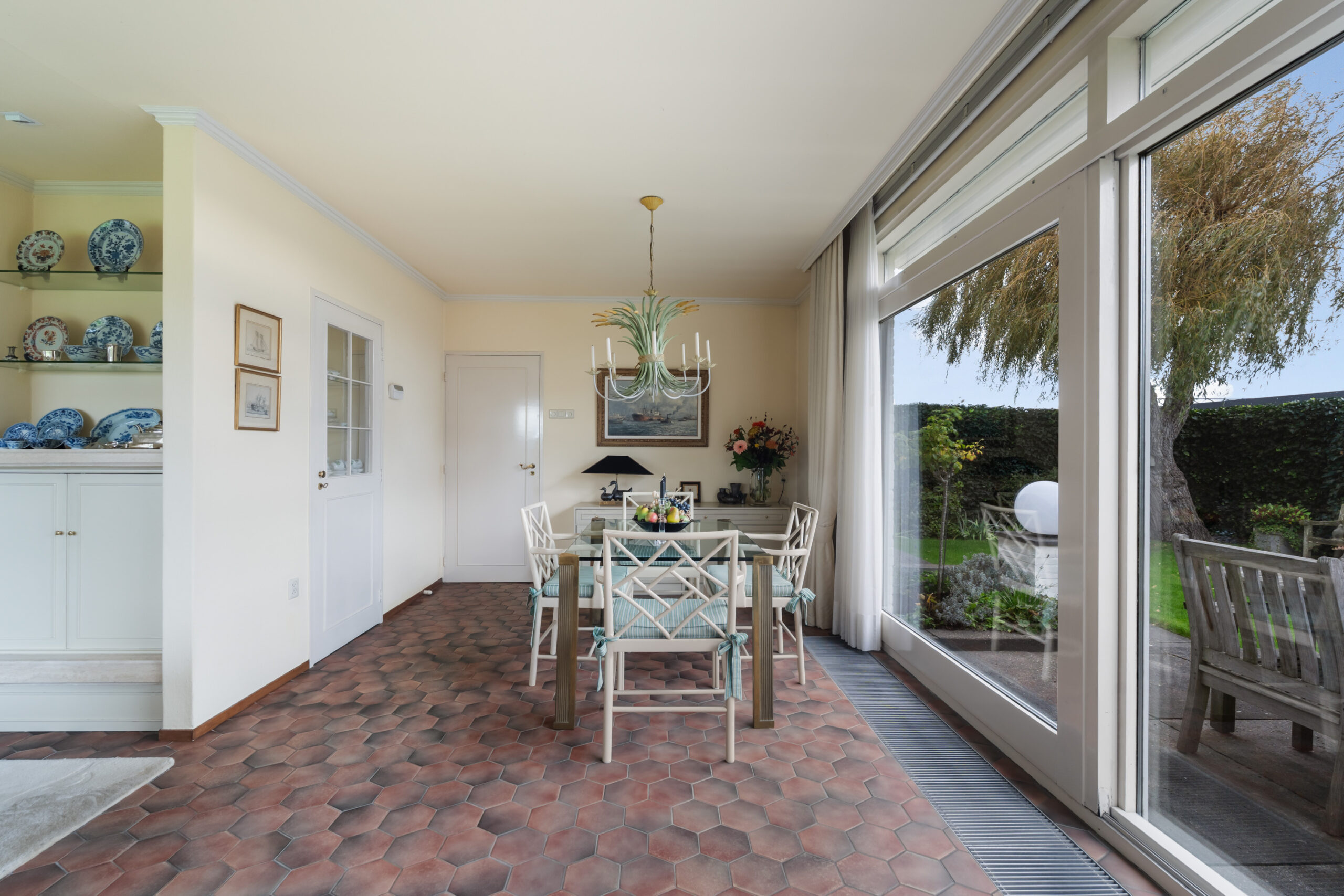 - Riante en lichte woonkamer (ca. 40 m²) met een op gasgestookte open haard, veel raampartijen en schuifpuien naar de tuin;