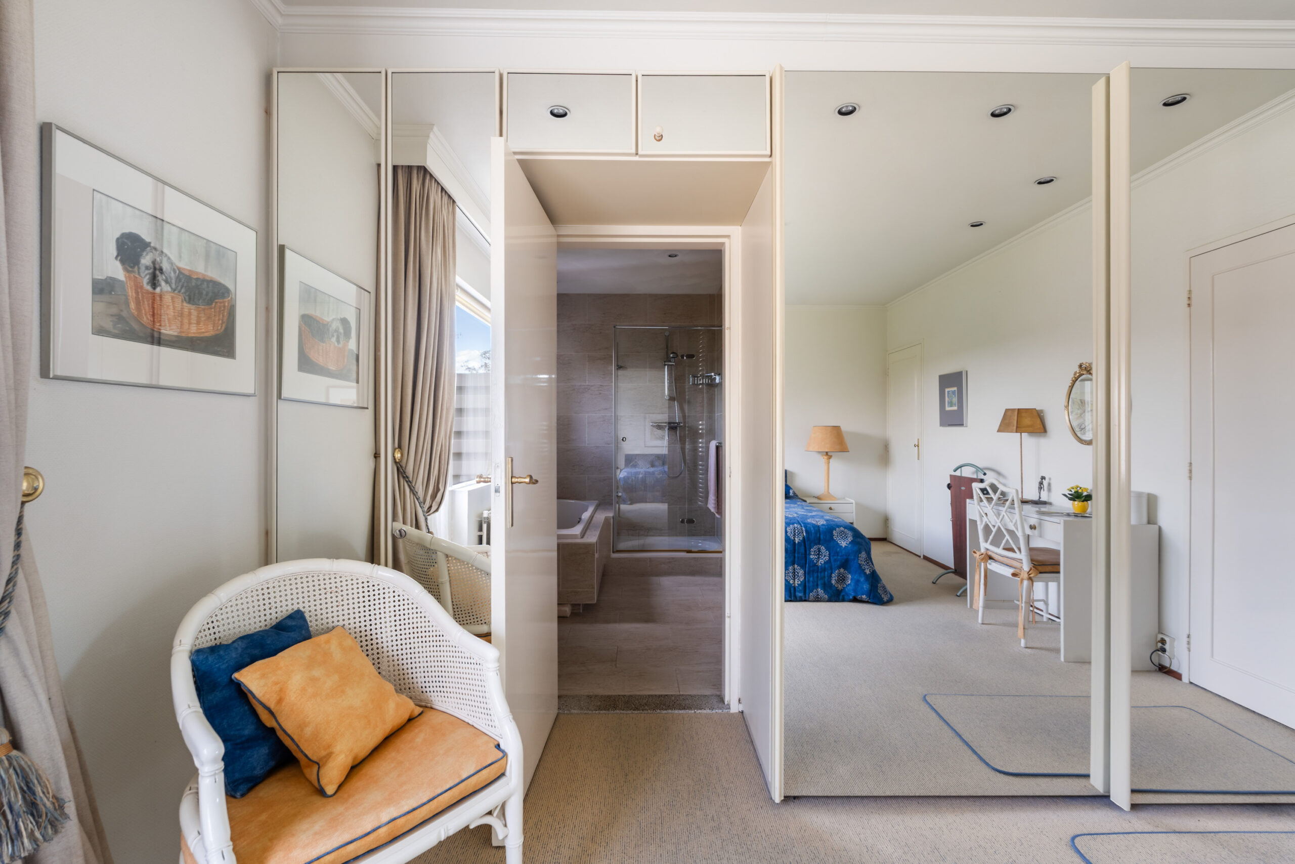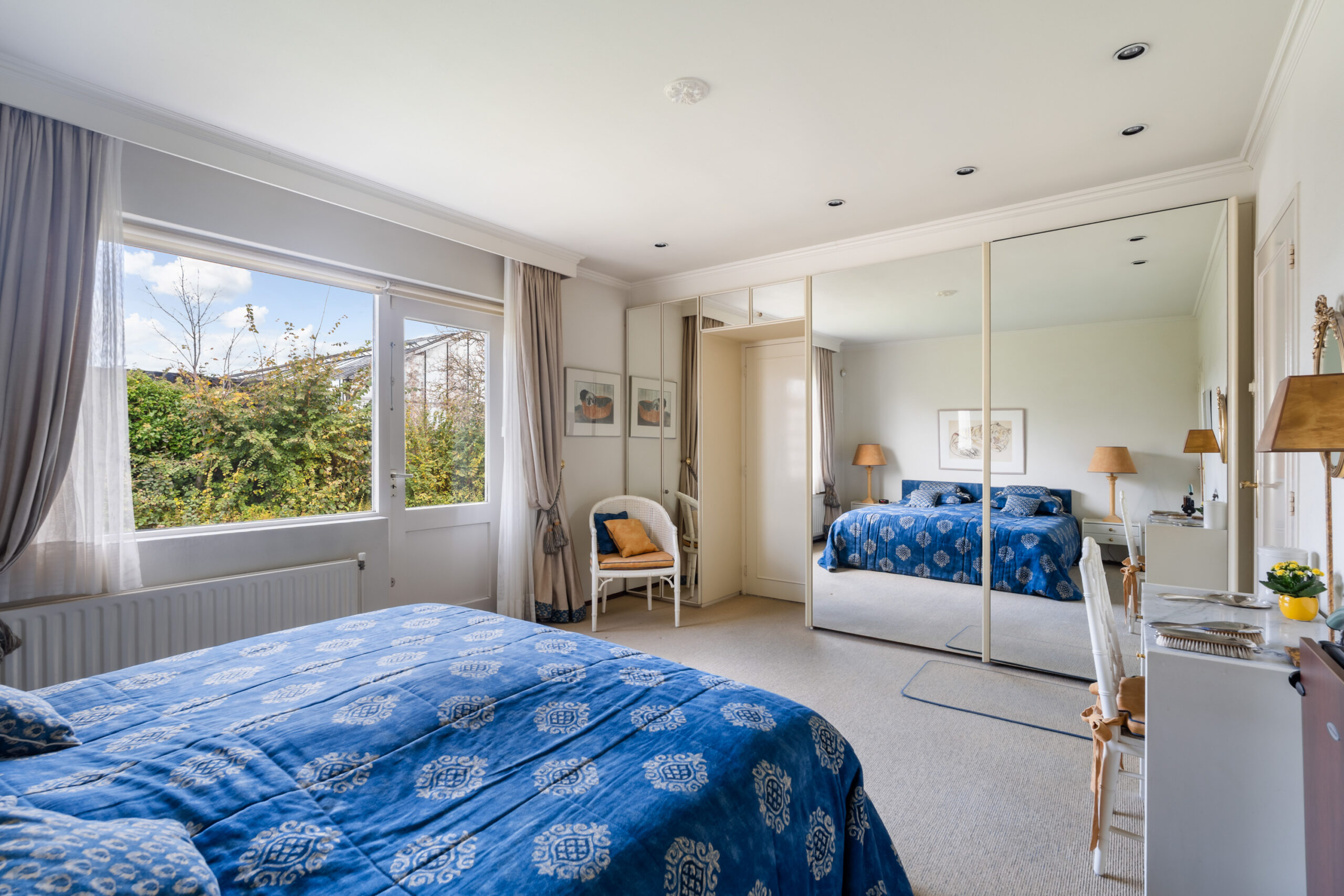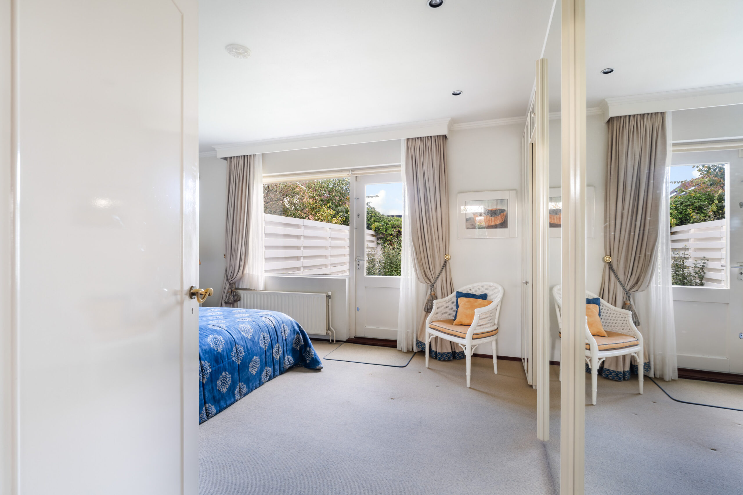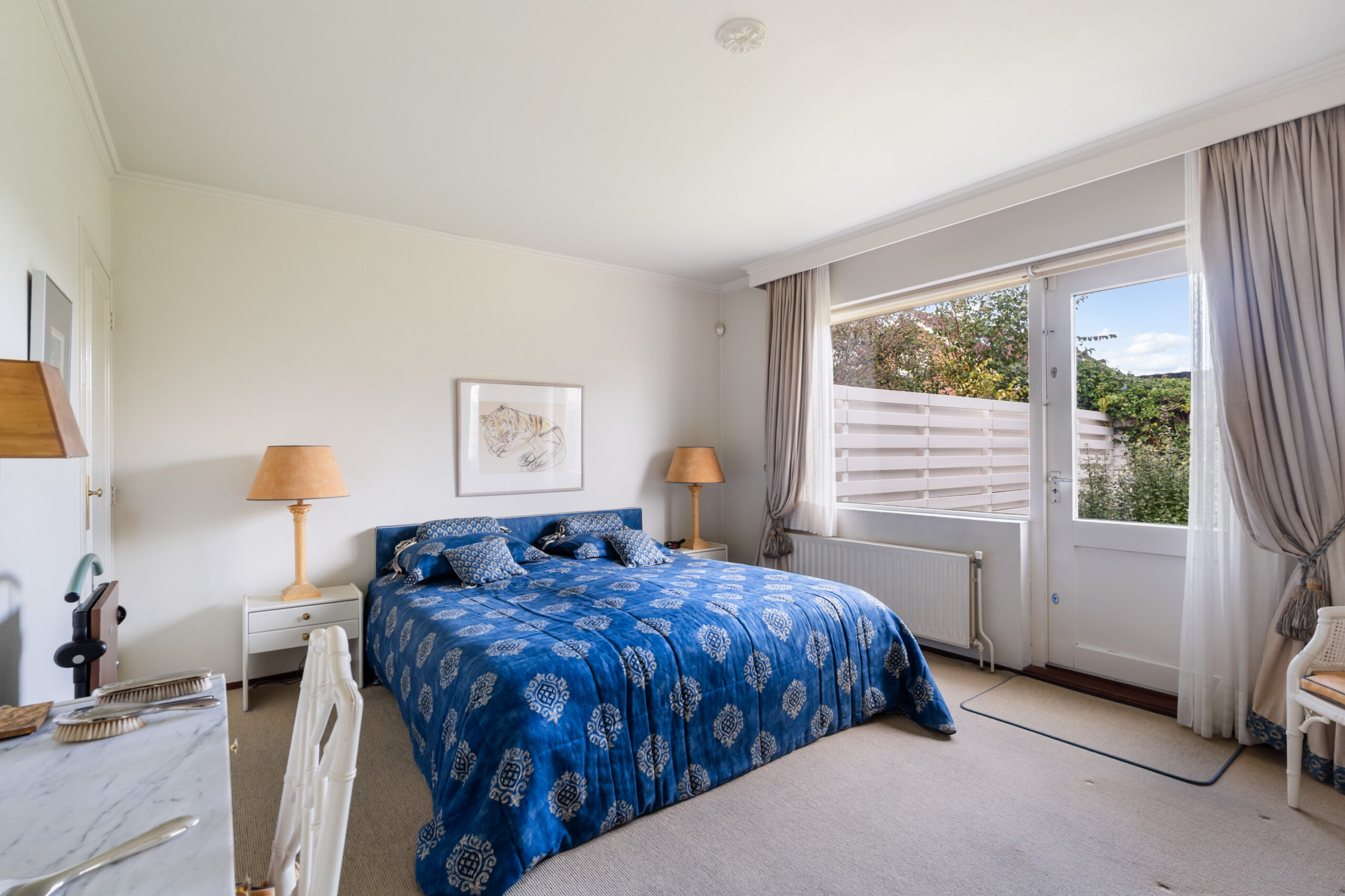 - Riante slaapkamer (ca. 16 m²) met kastenwand en toegang tot de achtertuin;