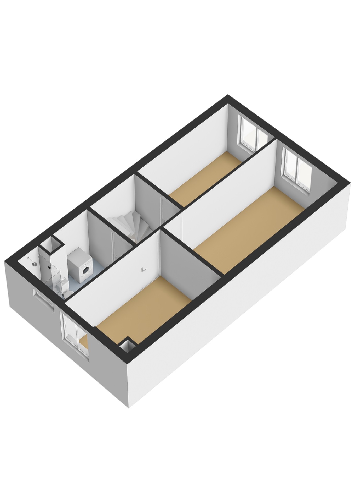 - De ruime badkamer (ca. 2,94 x 2,14 m) is voorzien van een douche, wastafel, tweede toilet en wasmachine aansluiting;