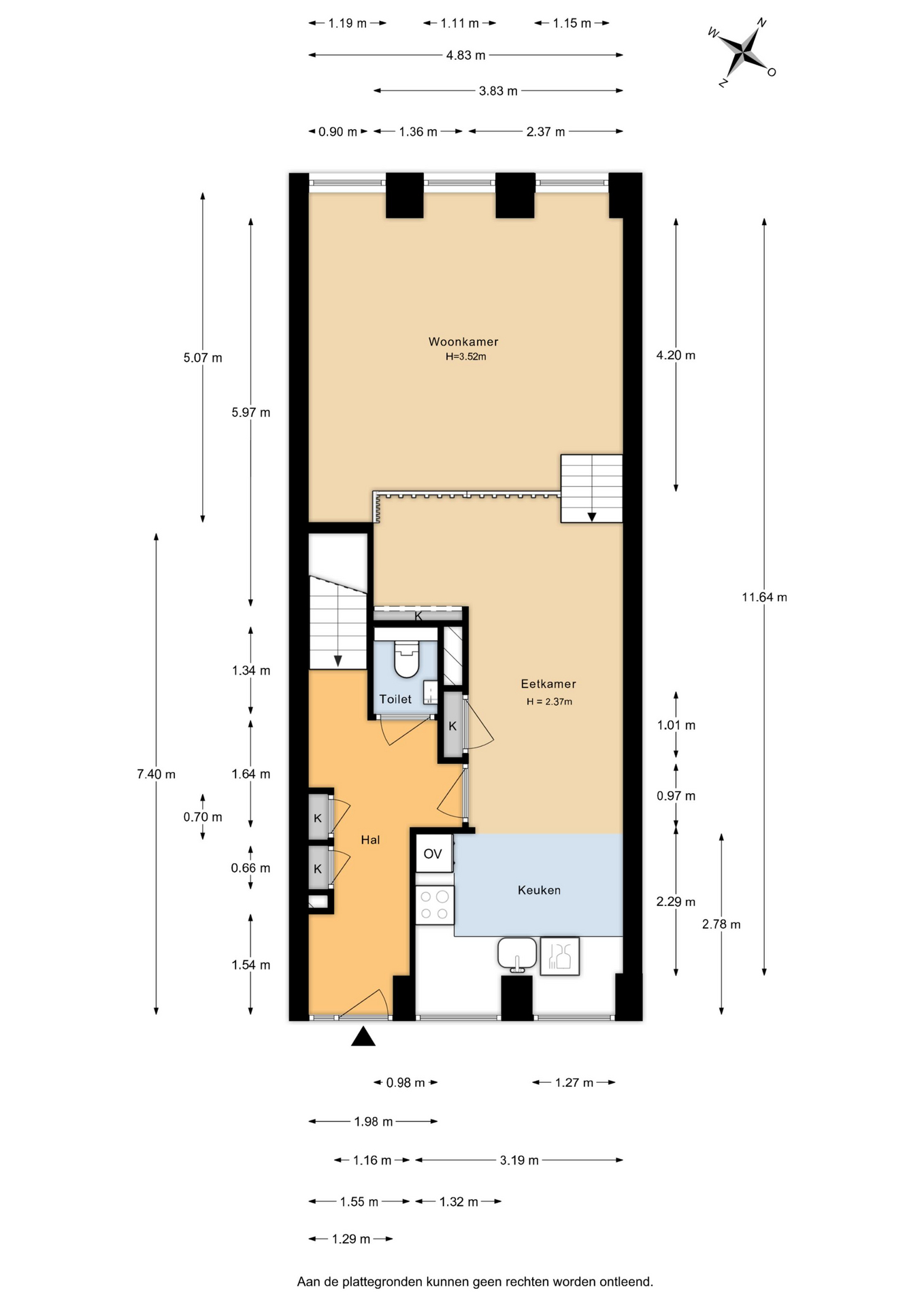 Indeling: (voor de maatvoering wordt verwezen naar de plattegronden)