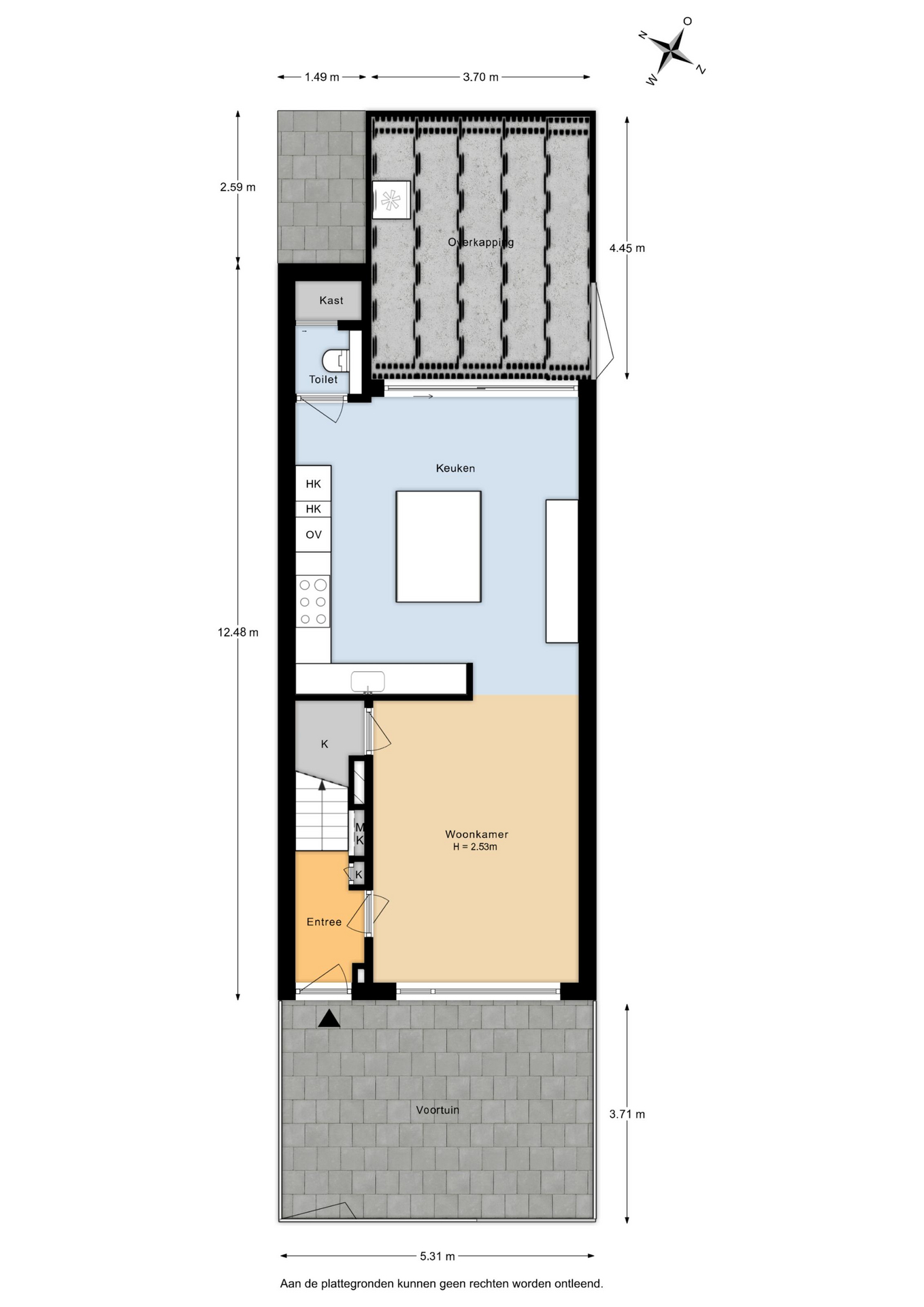 - Entree via de voortuin naar de hal met meterkast en trapopgang naar de 1e verdieping;