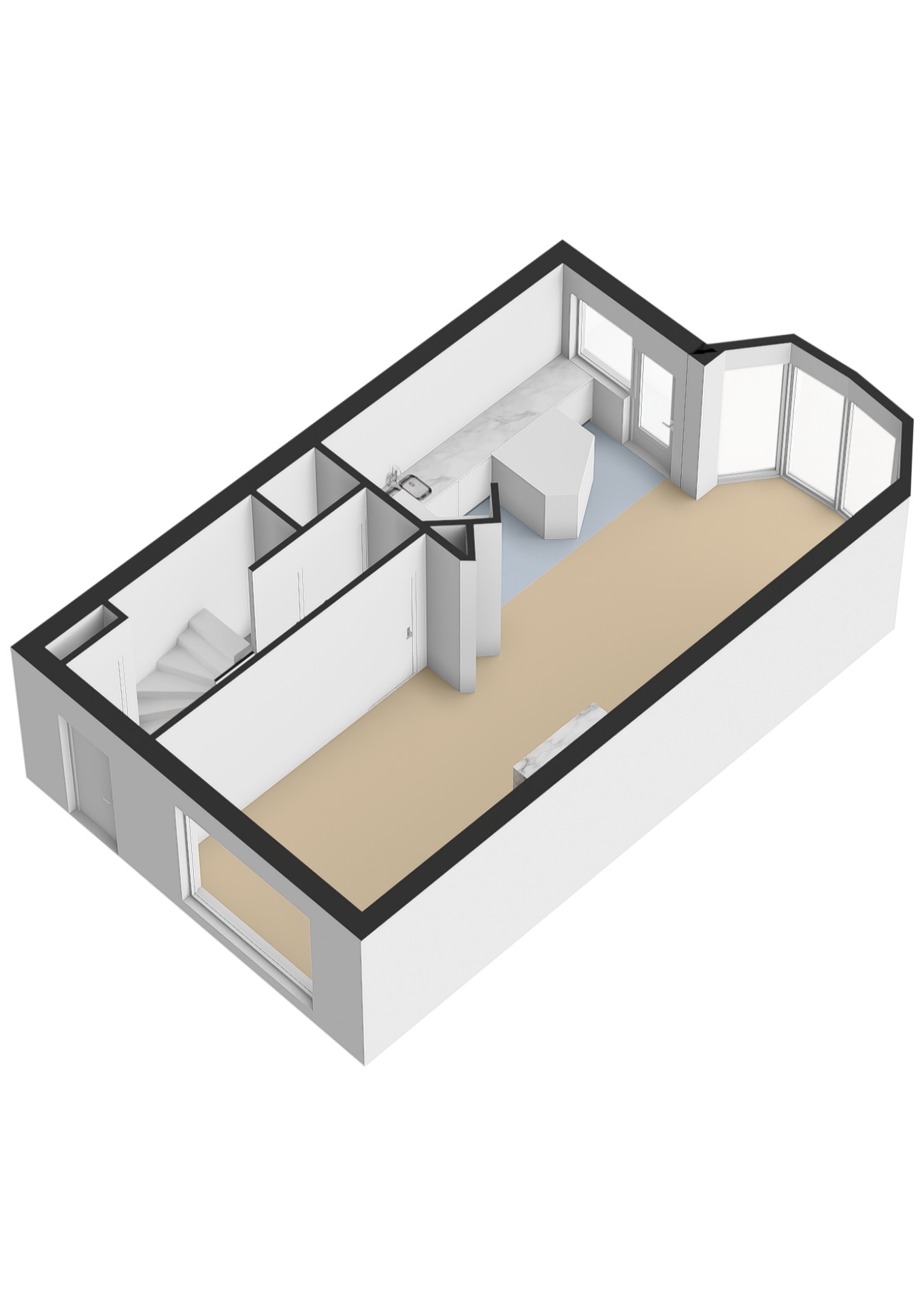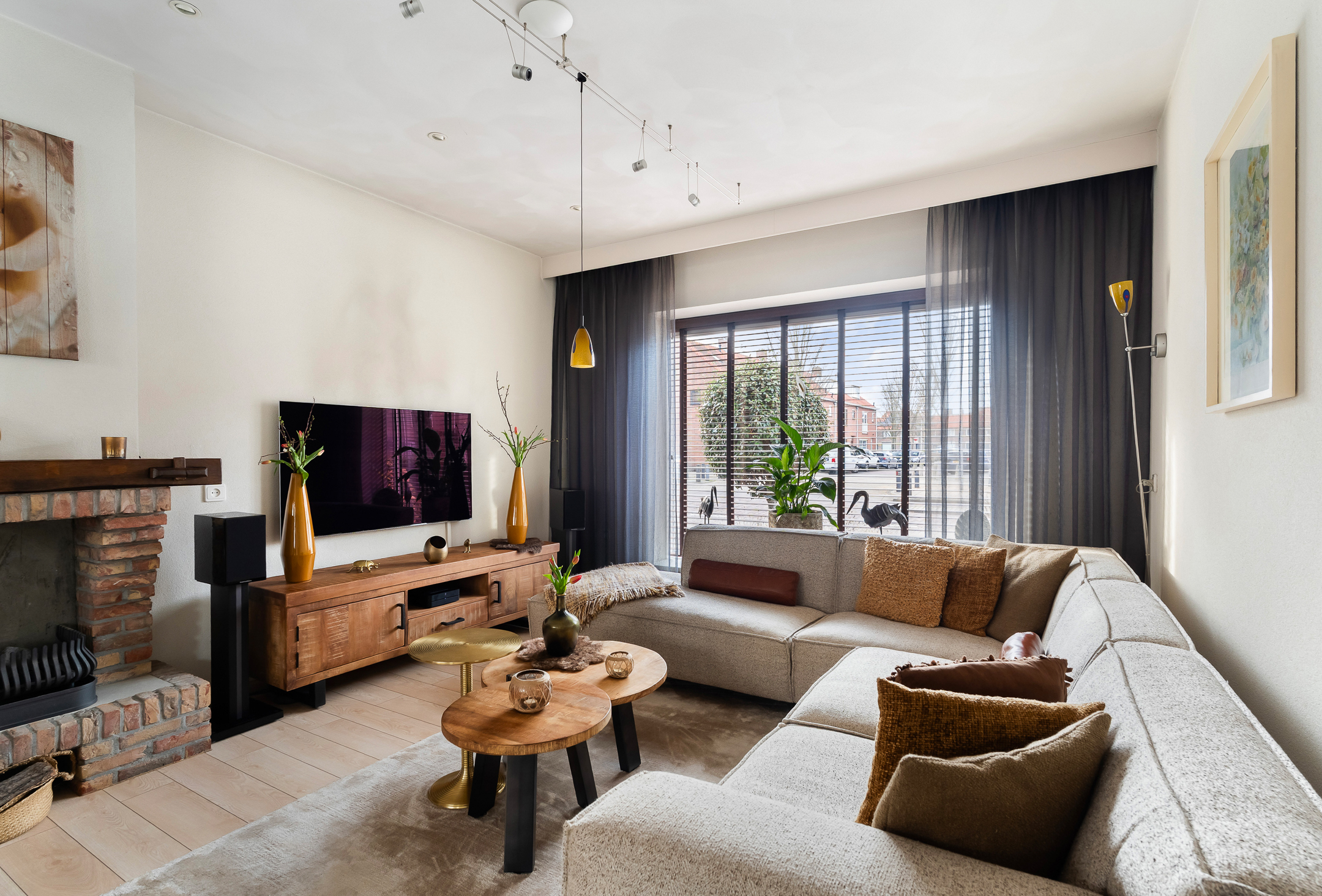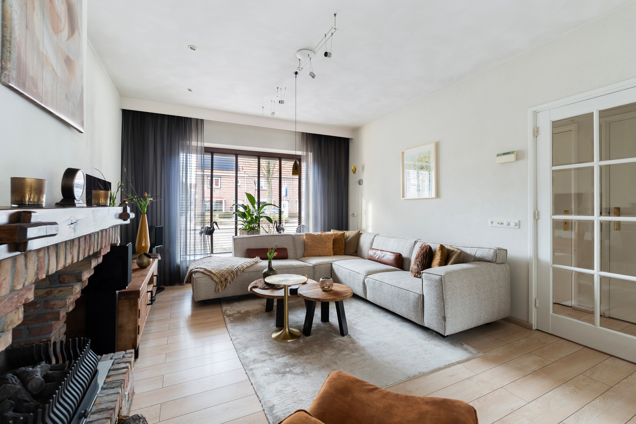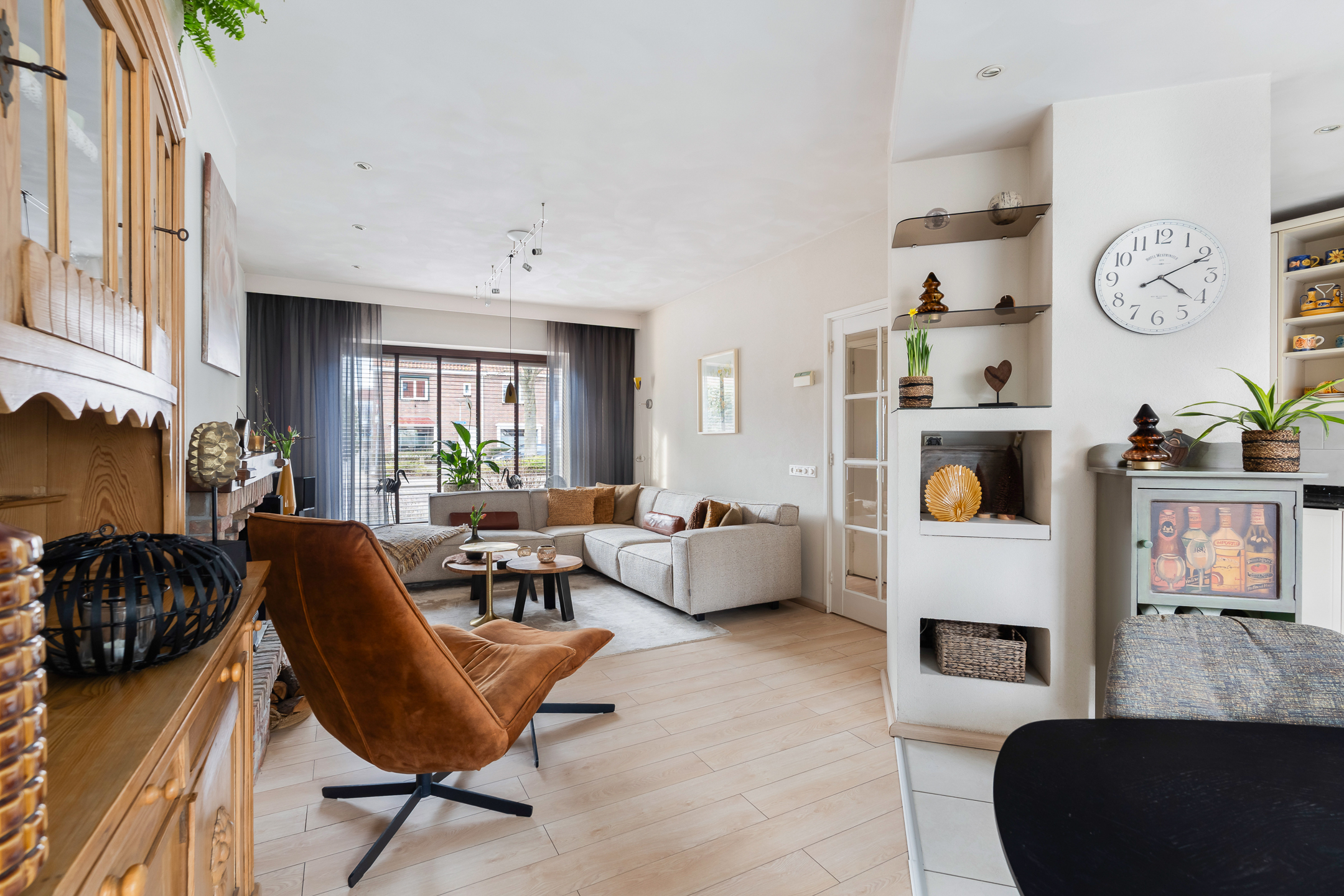- Ruime uitbouw met natuurlijk lichtinval door de hoge ramen.