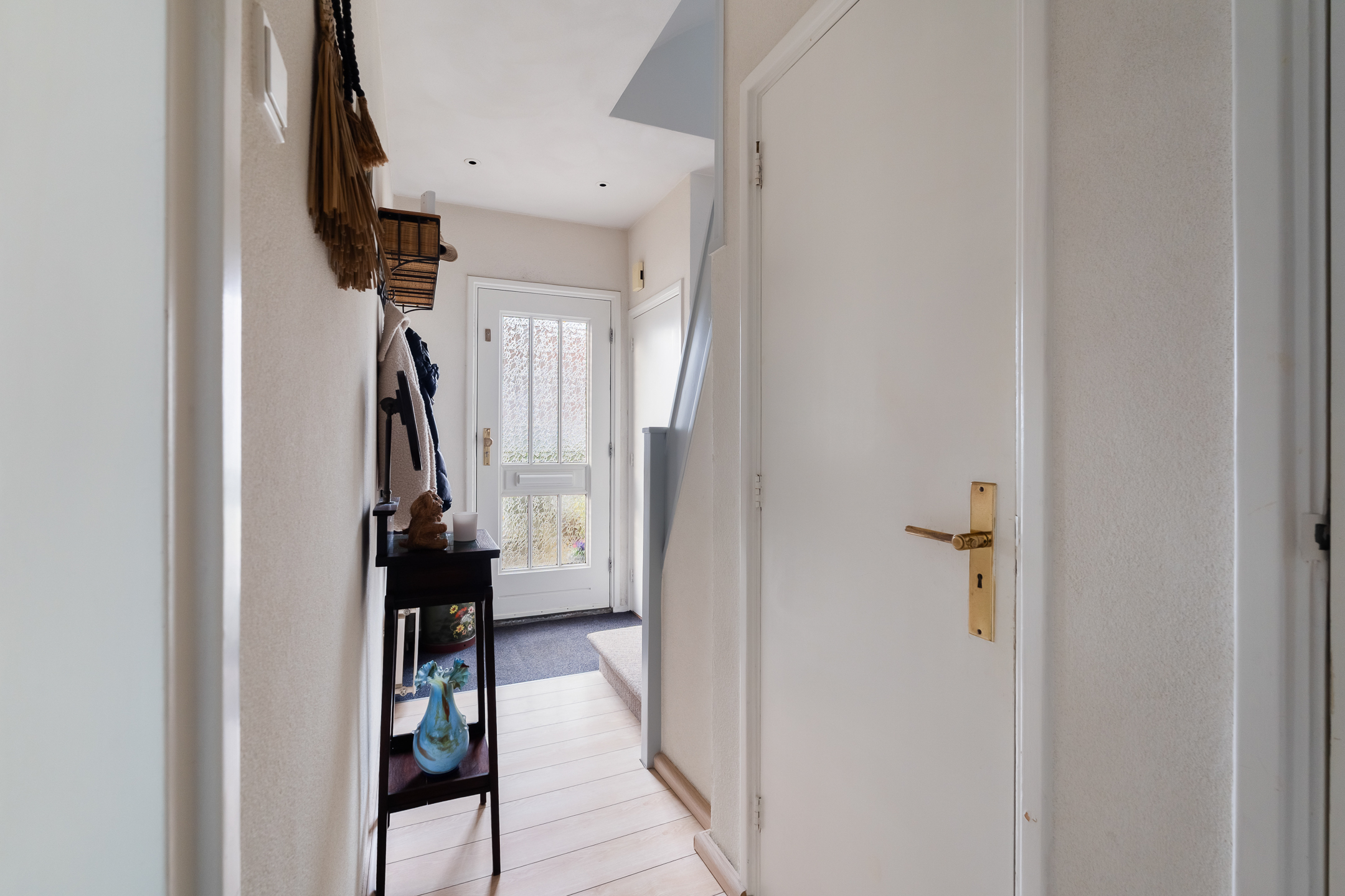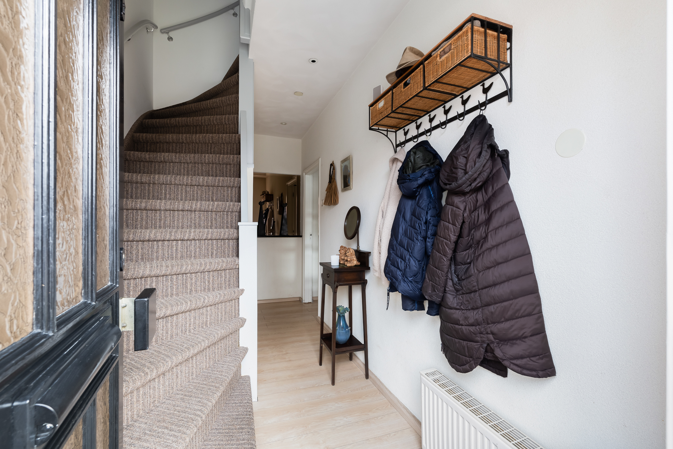 - Hal met trapopgang naar de eerste etage, meterkast, kelderkast en toiletruimte.