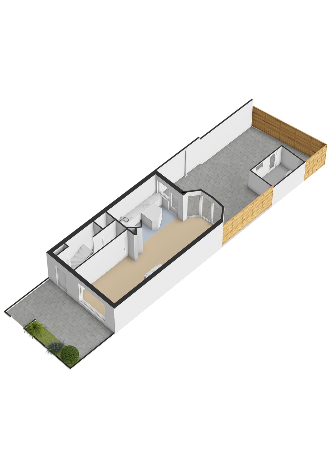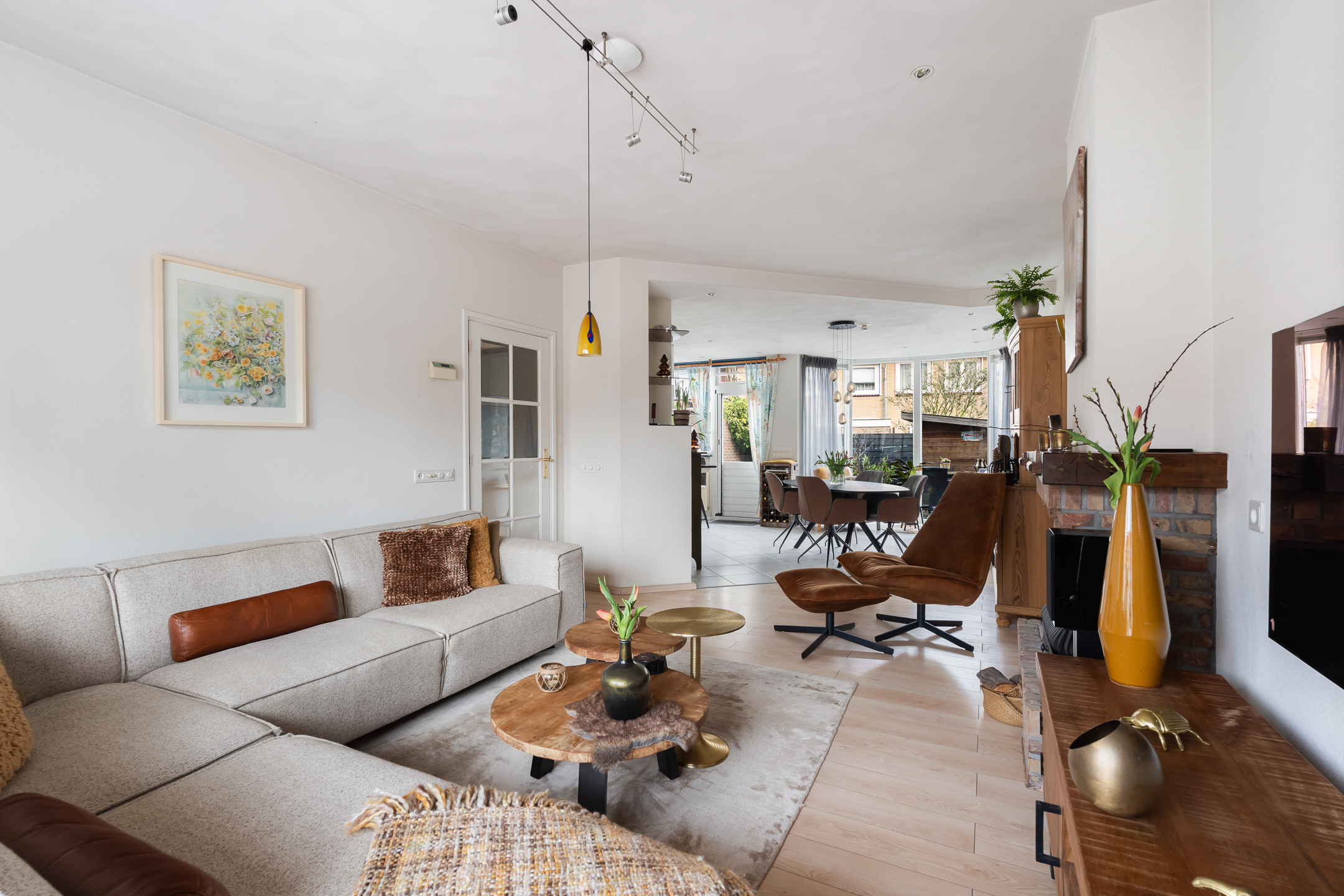 - Uitgebouwde en lichte doorzonwoonkamer voorzien van gestucte wanden en plafond en stucwerk plafond. Daarnaast is de voorzijde van de woning voorzien van een markies.