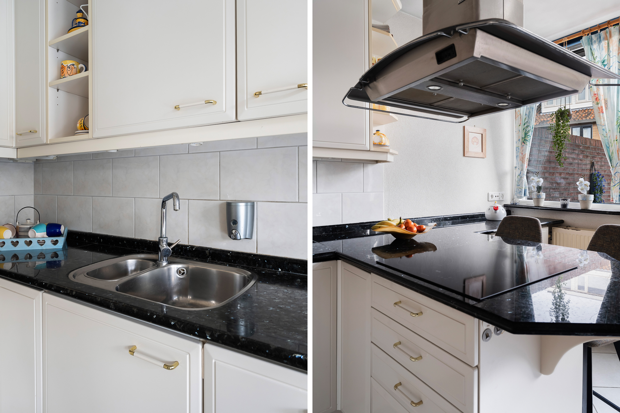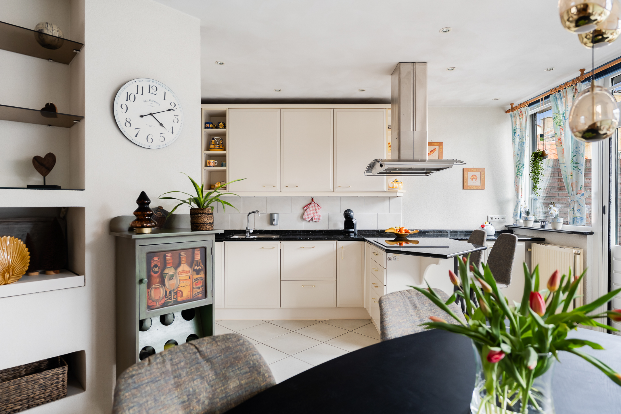 - Open keuken met vloerverwarming voorzien van Keramische kookplaat, vaatwasser, verhoogde inbouw vaatwasser, close-in boiler, koelkast, vriezer en afzuigkap. Daarnaast geeft de keuken toegang tot de achtertuin.