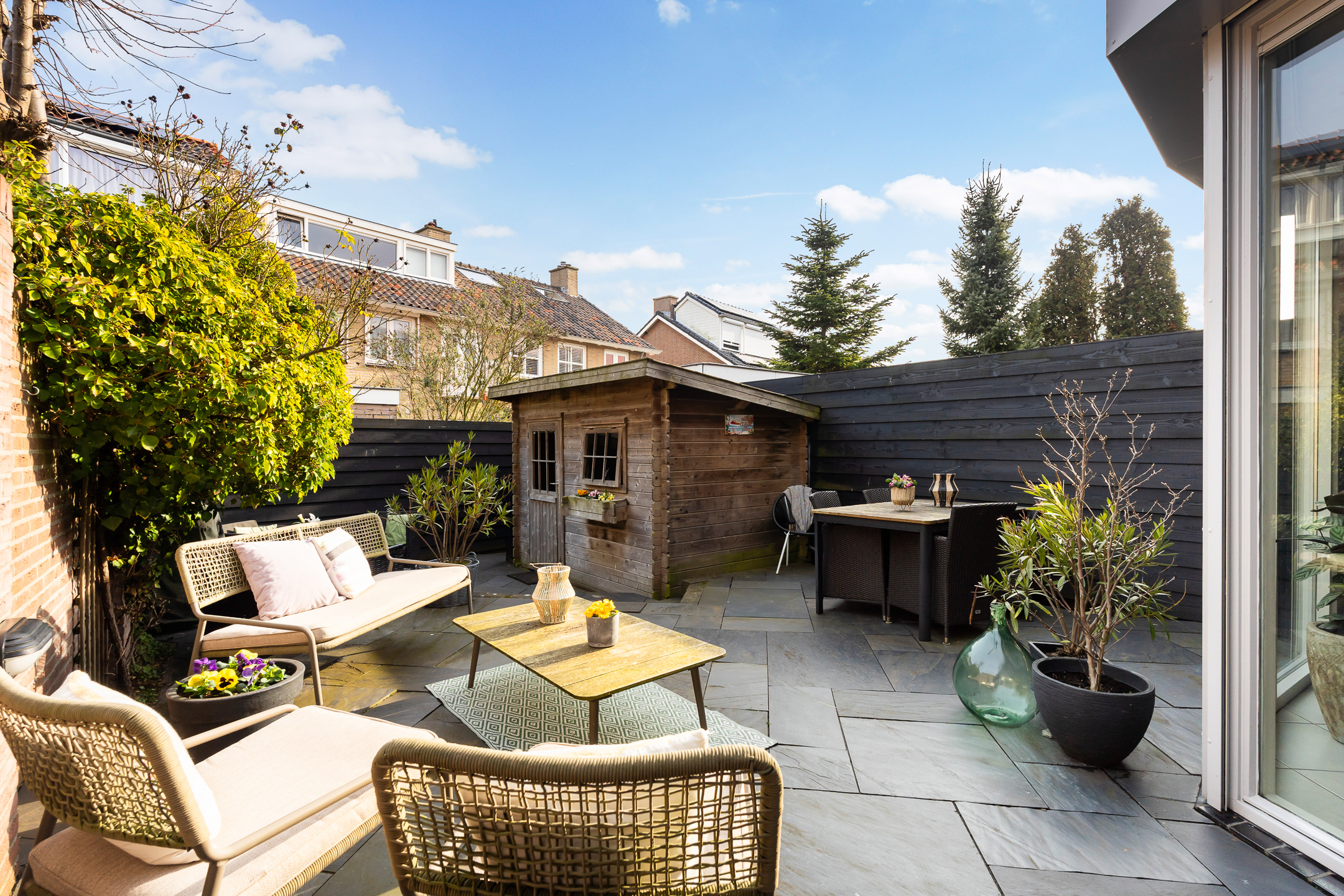 - Verzorgde en zonnige achtertuin waar u de gehele dag heerlijk kunt genieten van de zon. De achtertuin is voorzien van een houten berging.