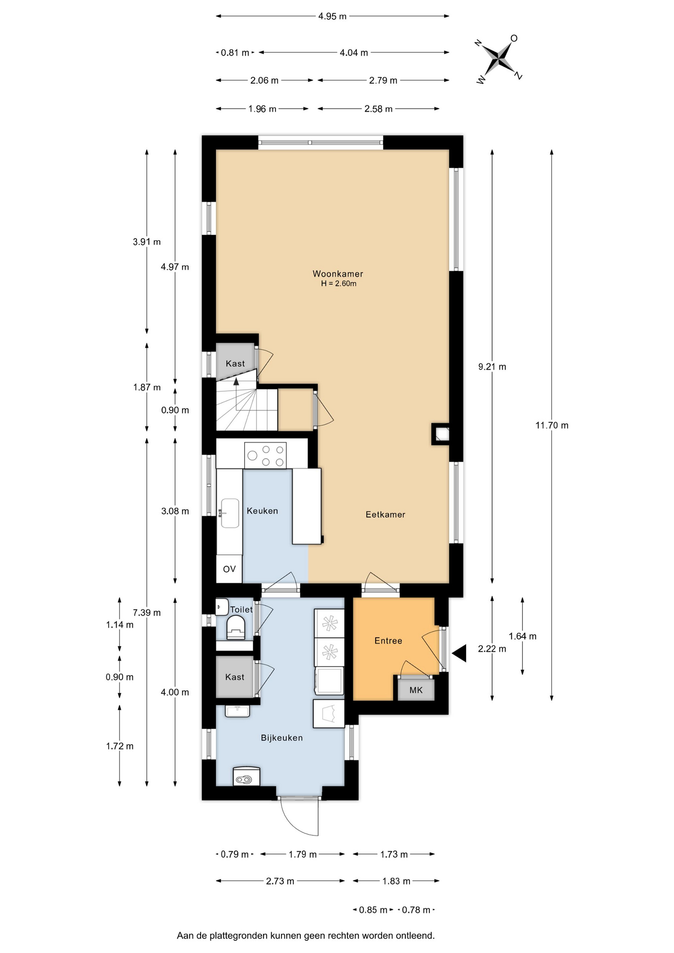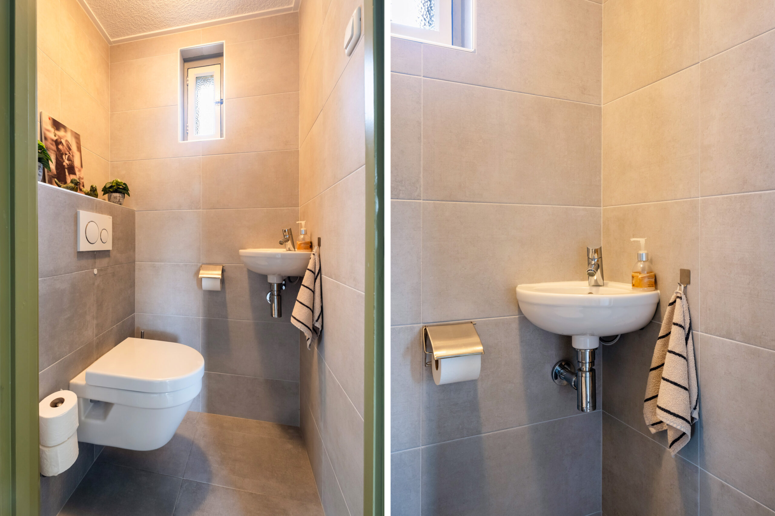 - Naast de keuken is de bijkeuken gelegen met toilet en opstelplaats voor de vaatwasser, wasmachine en droger;
