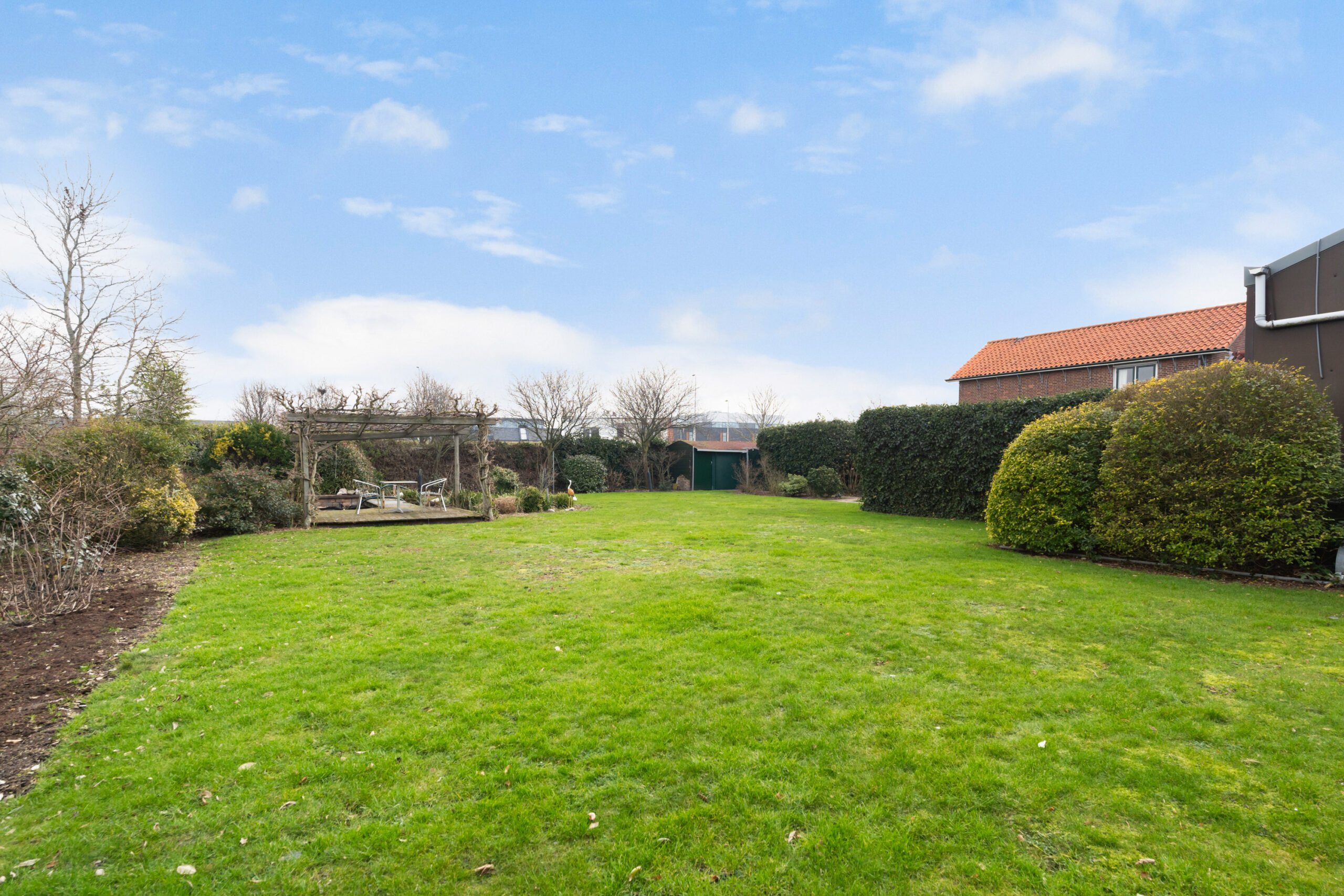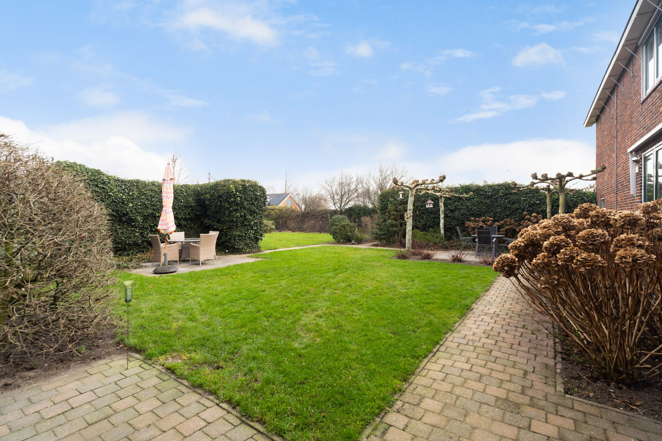 Langs de zijkant van de woning strekt zich een zeer riante zijtuin uit, waar meerdere terrassen zijn aangelegd. Hier kunt u op elk moment van de dag heerlijk van de zon genieten. Dankzij de beschutte ligging ervaart u hier bovendien veel privacy.