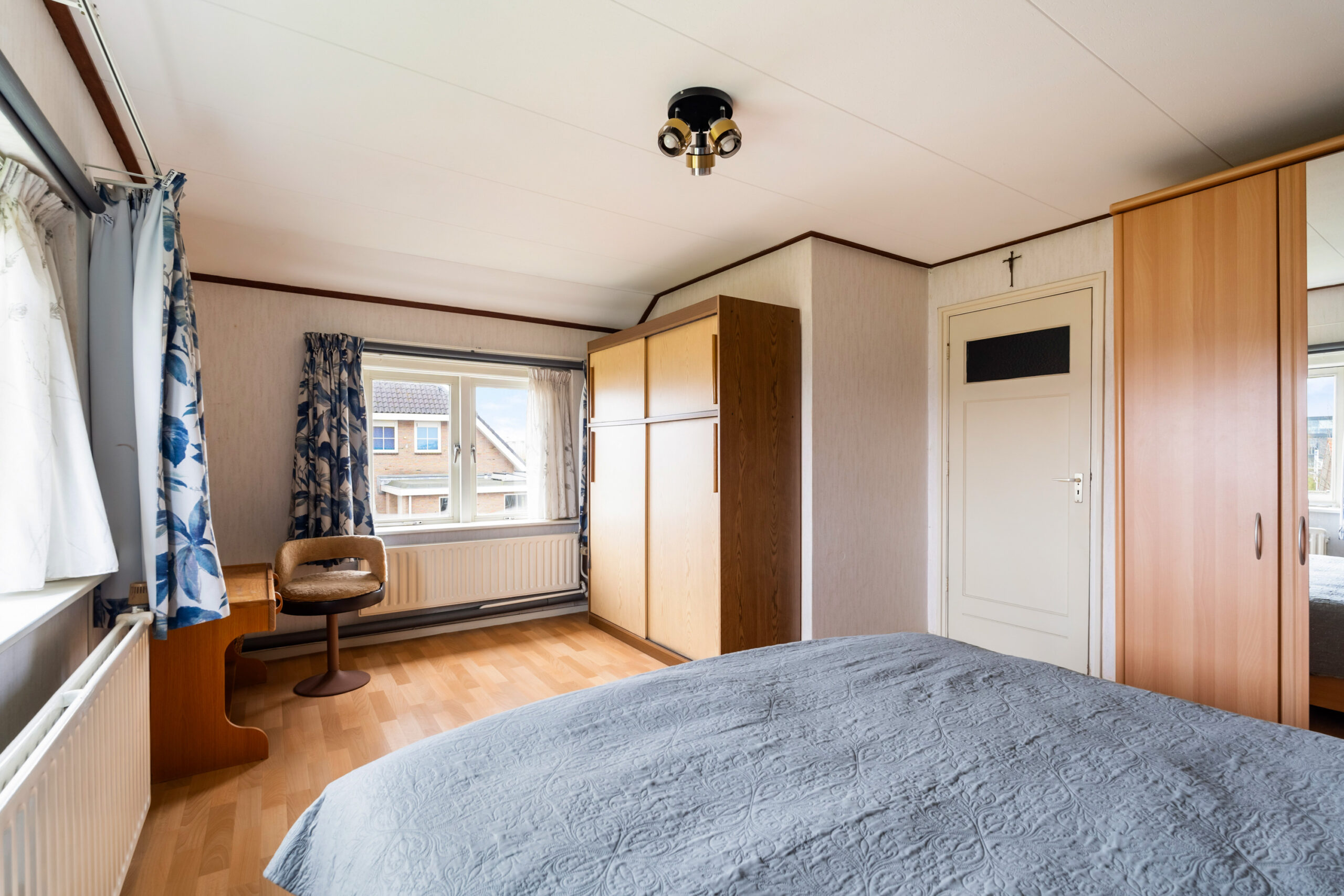 - Ruime slaapkamer (ca. 3,96 x 4,95/2,99) met uitzicht op de riante voortuin;