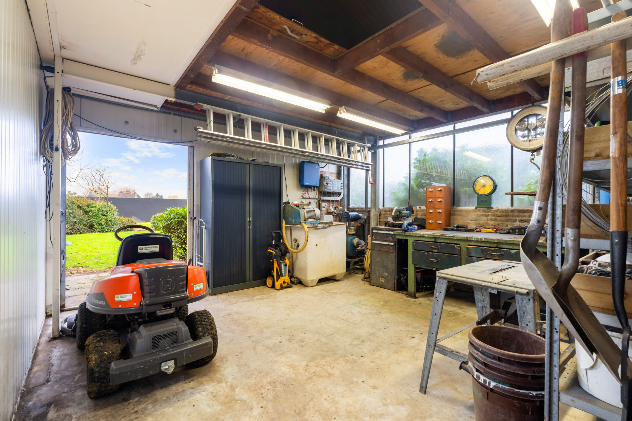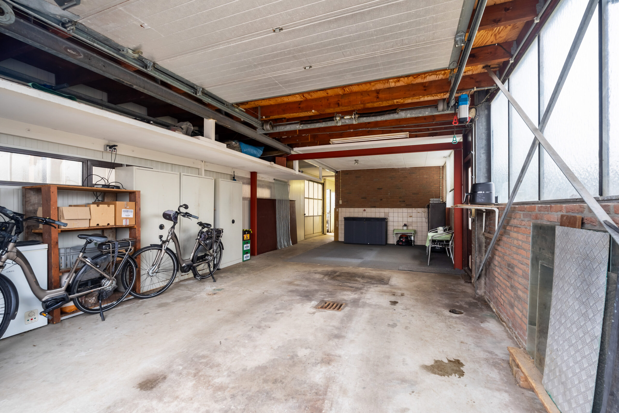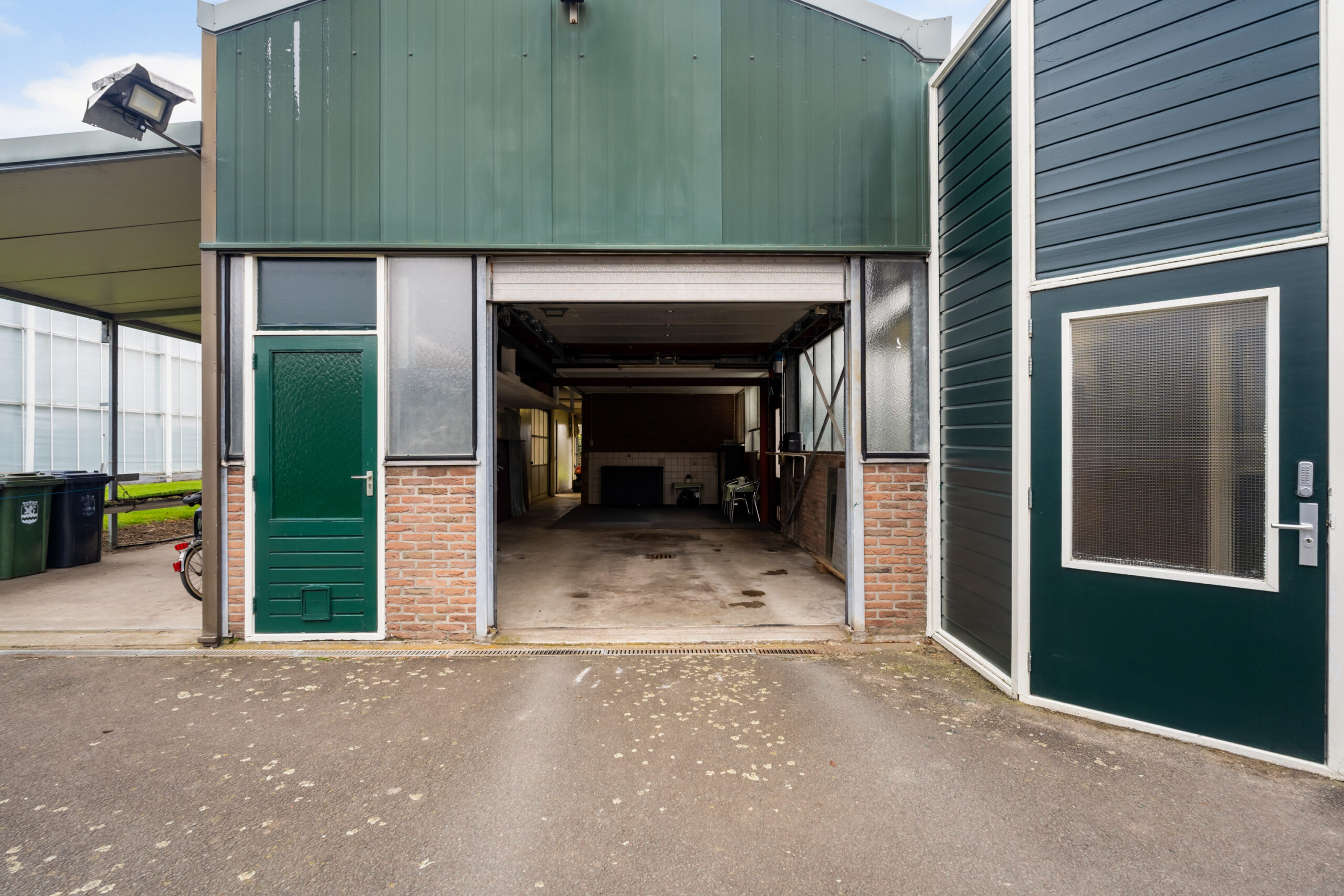 De royale garage/schuur van 159 m² met overkapping is perfect voor opslag, werkplaats, stalling van voertuigen of het combineren van wonen en werken aan huis.