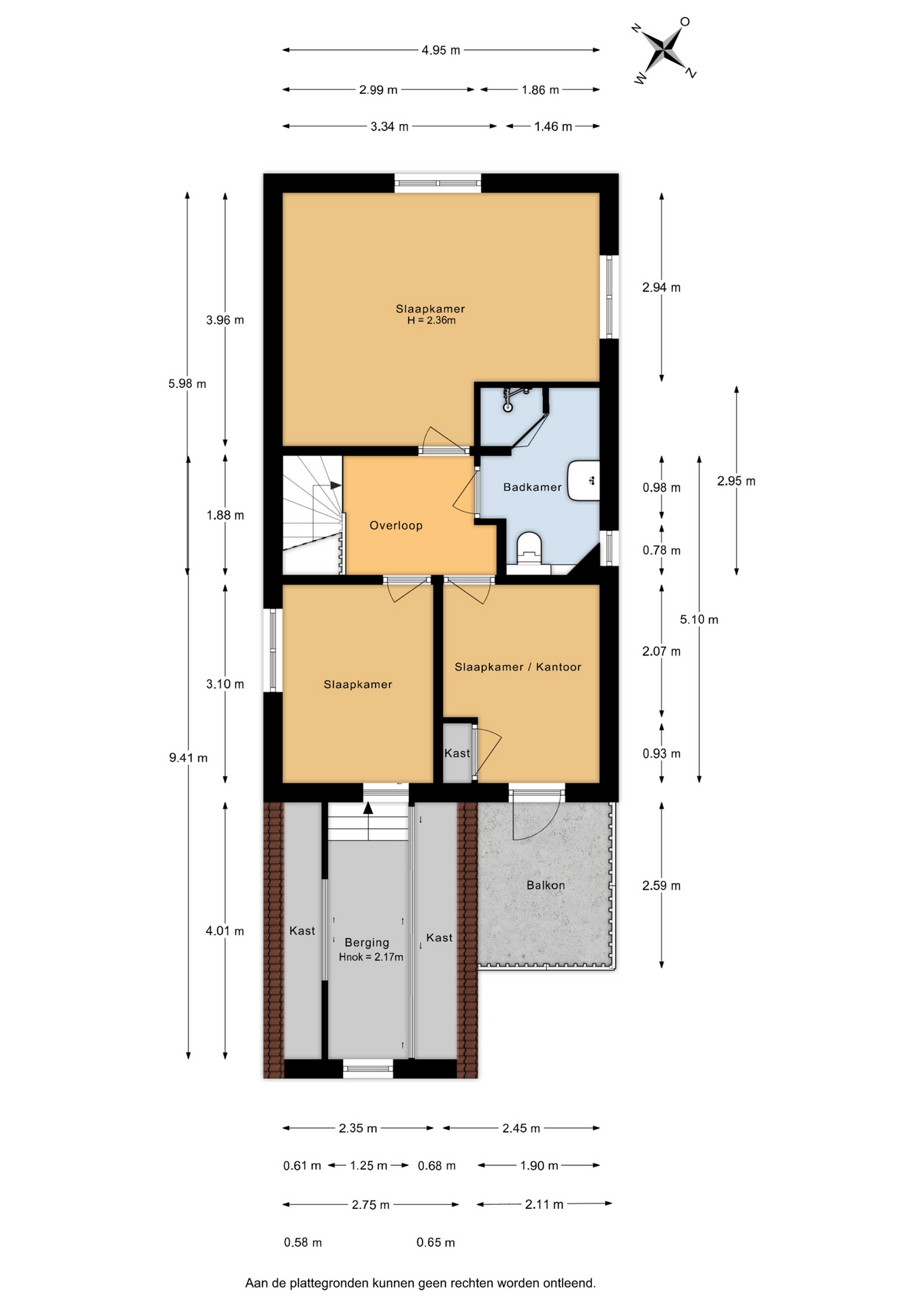 - De 2e slaapkamer (ca. 3,10 x 2,35 m) is gelegen aan de achterzijde van de woning en heeft een doorgang naar een ruime berging;
