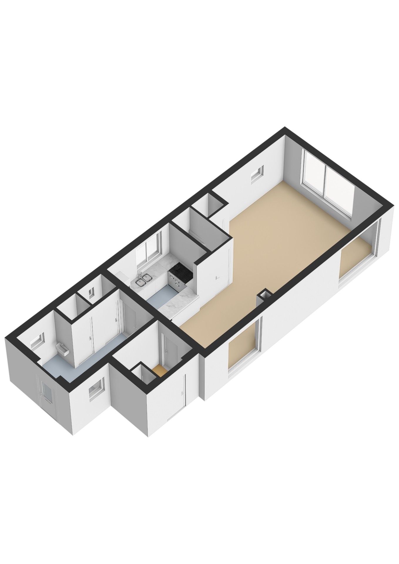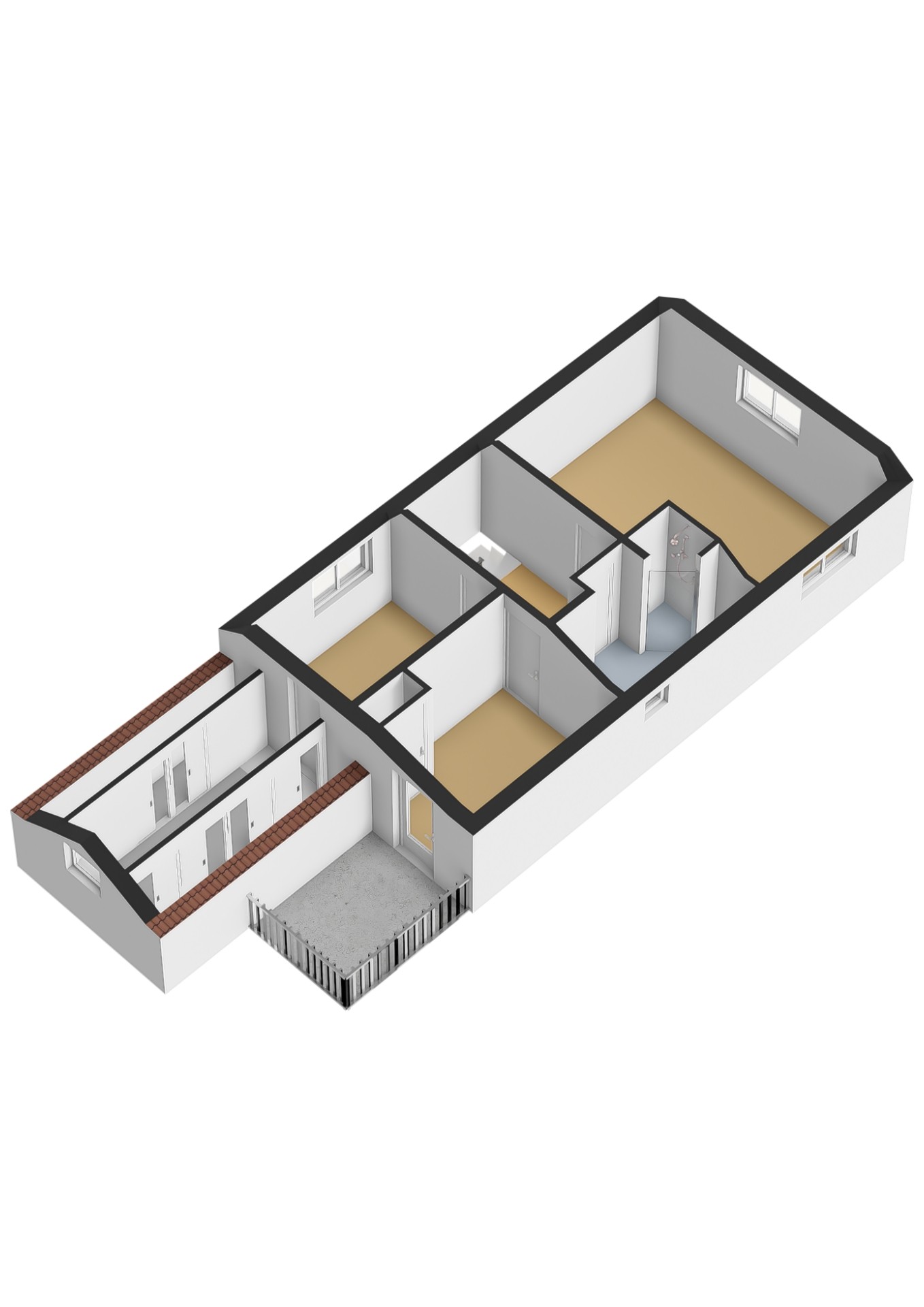 - De 3e slaapkamer (ca. 3,10 x 2,45 m) is tevens gelegen aan de achterzijde van de woning en geeft toegang tot het balkon;