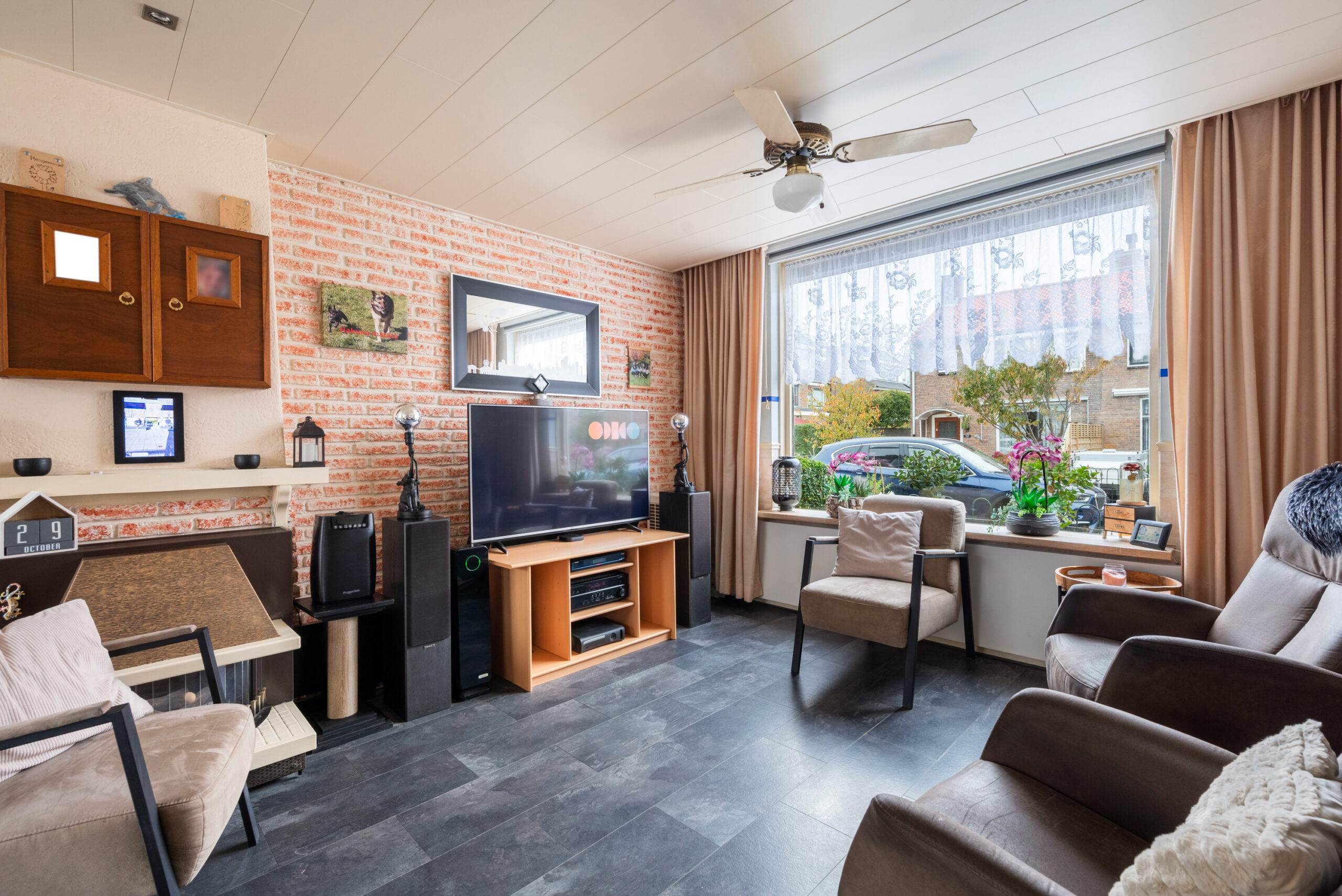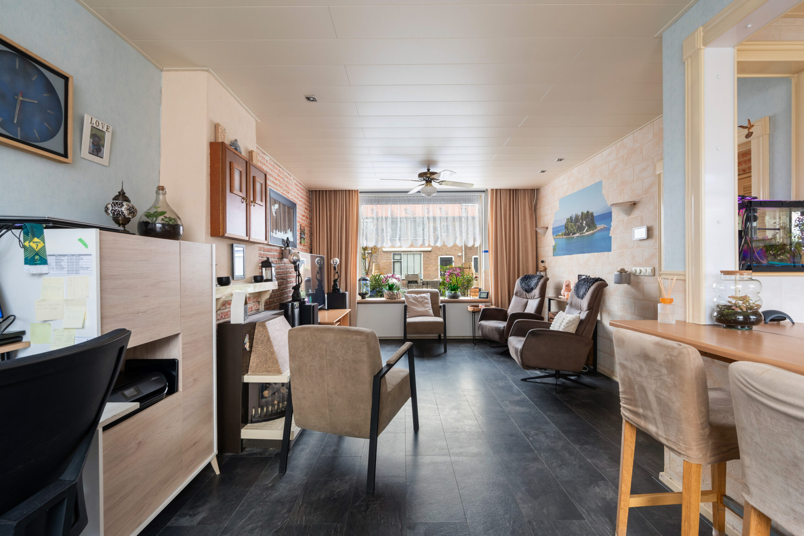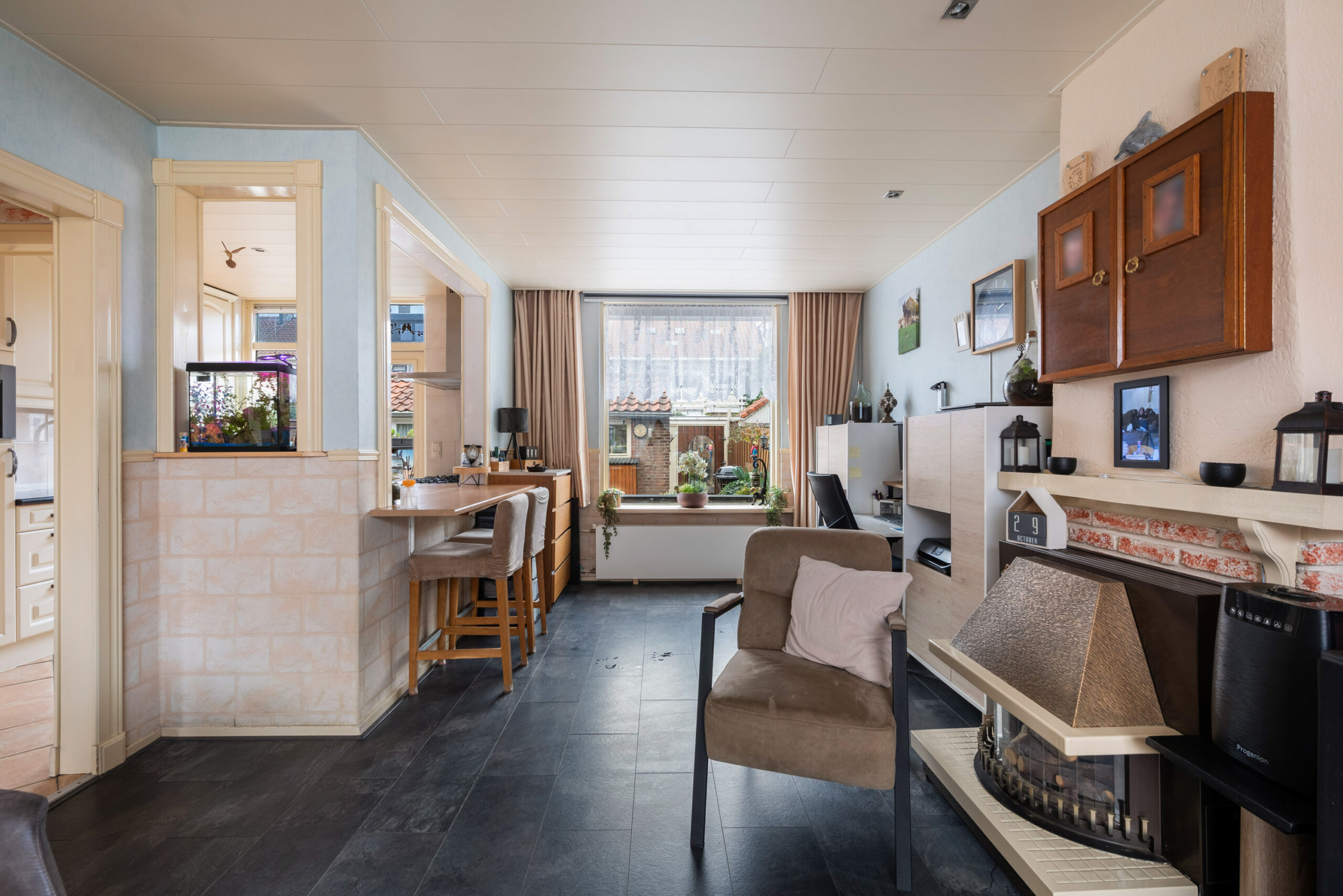 - Ruime doorzonwoonkamer met laminaatvloer en een siergaskachel. Door de grote raampartijen is het een heerlijk lichte ruimte;