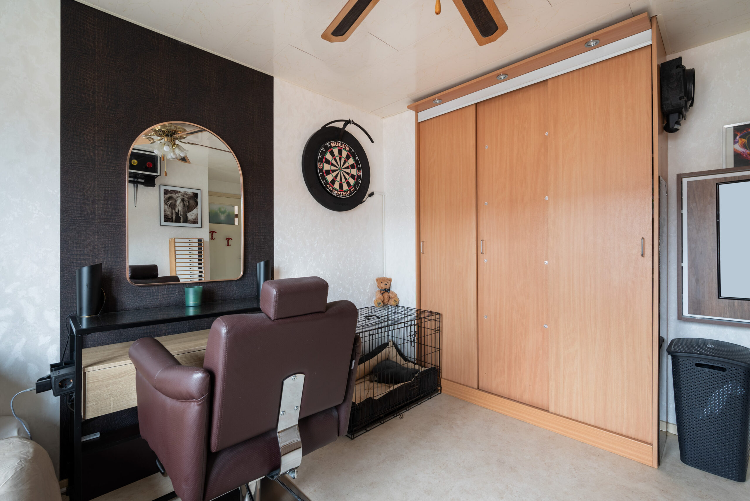 - Derde slaapkamer (ca. 2,59 x 2,57 m) aan de achterzijde van de woning;