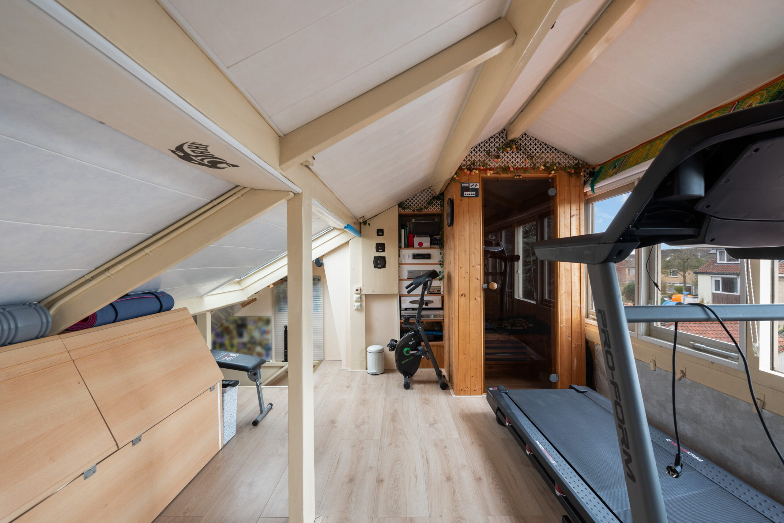 - Door een nokverhoging vergrote zolderverdieping. Ruime open zolderruimte met infraroodsauna en opstelplaats CV-ketel (Intergas HRE). De zolder is voorzien van een 2 dakramen aan de voorzijde;