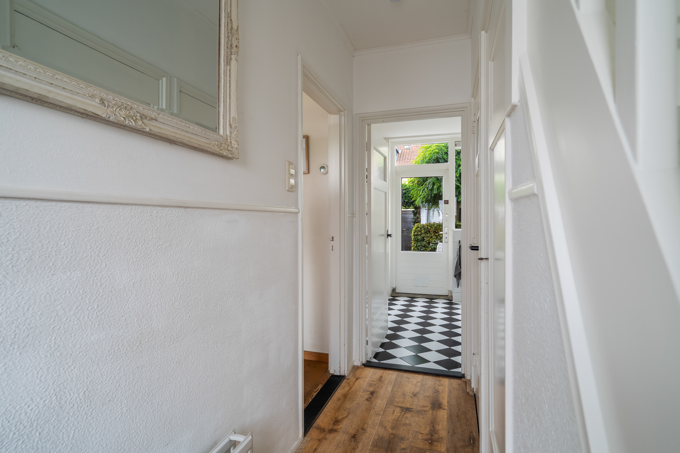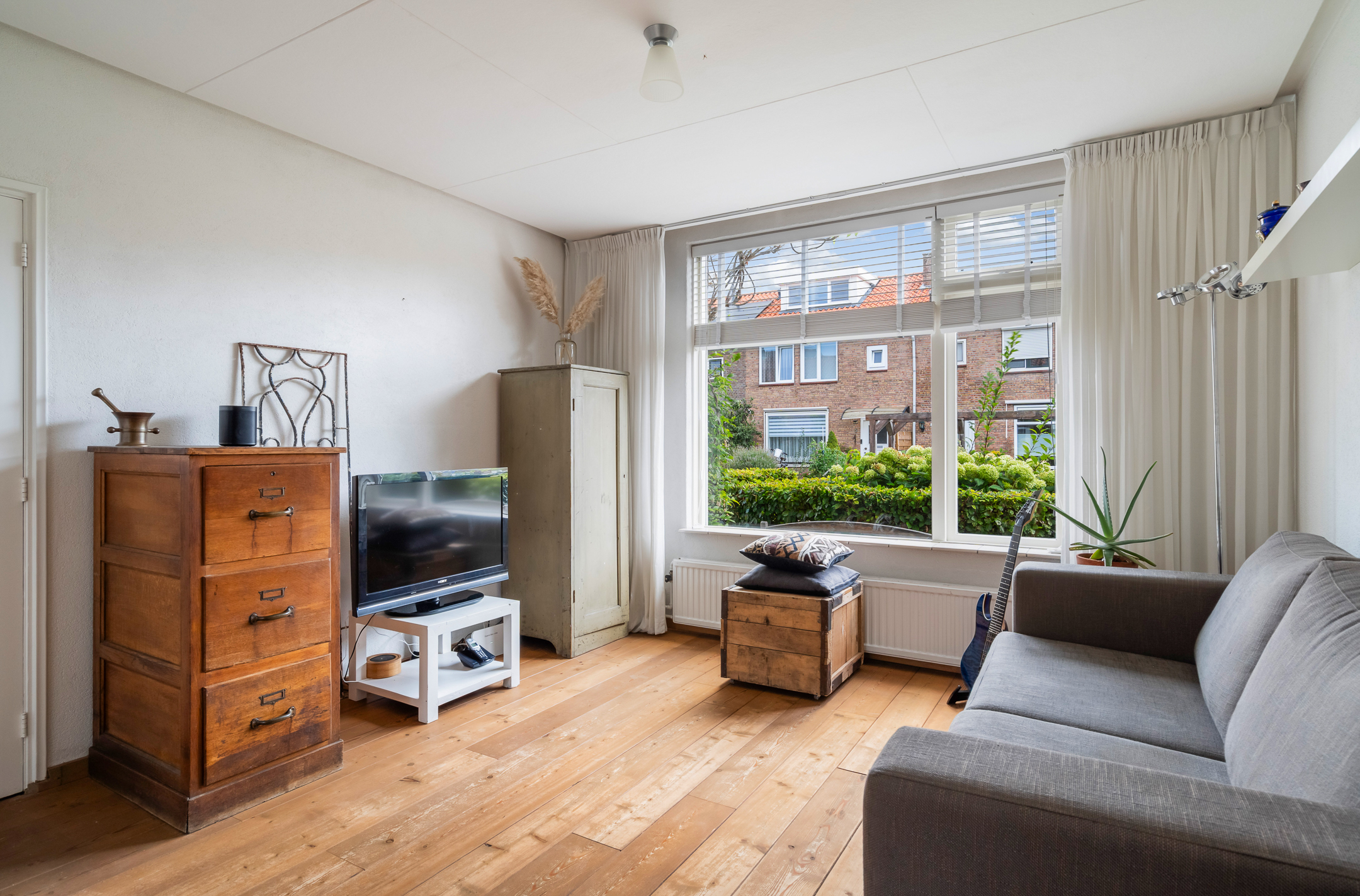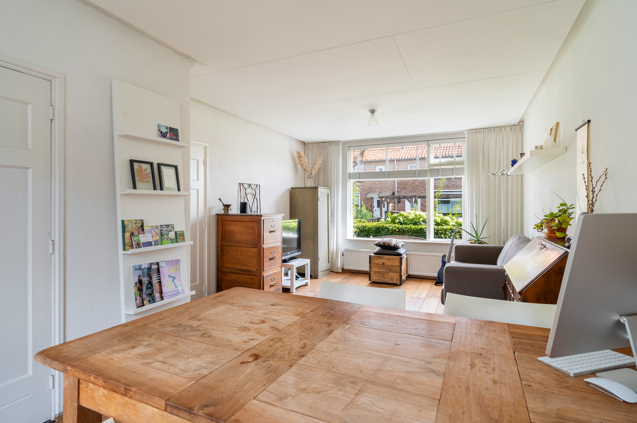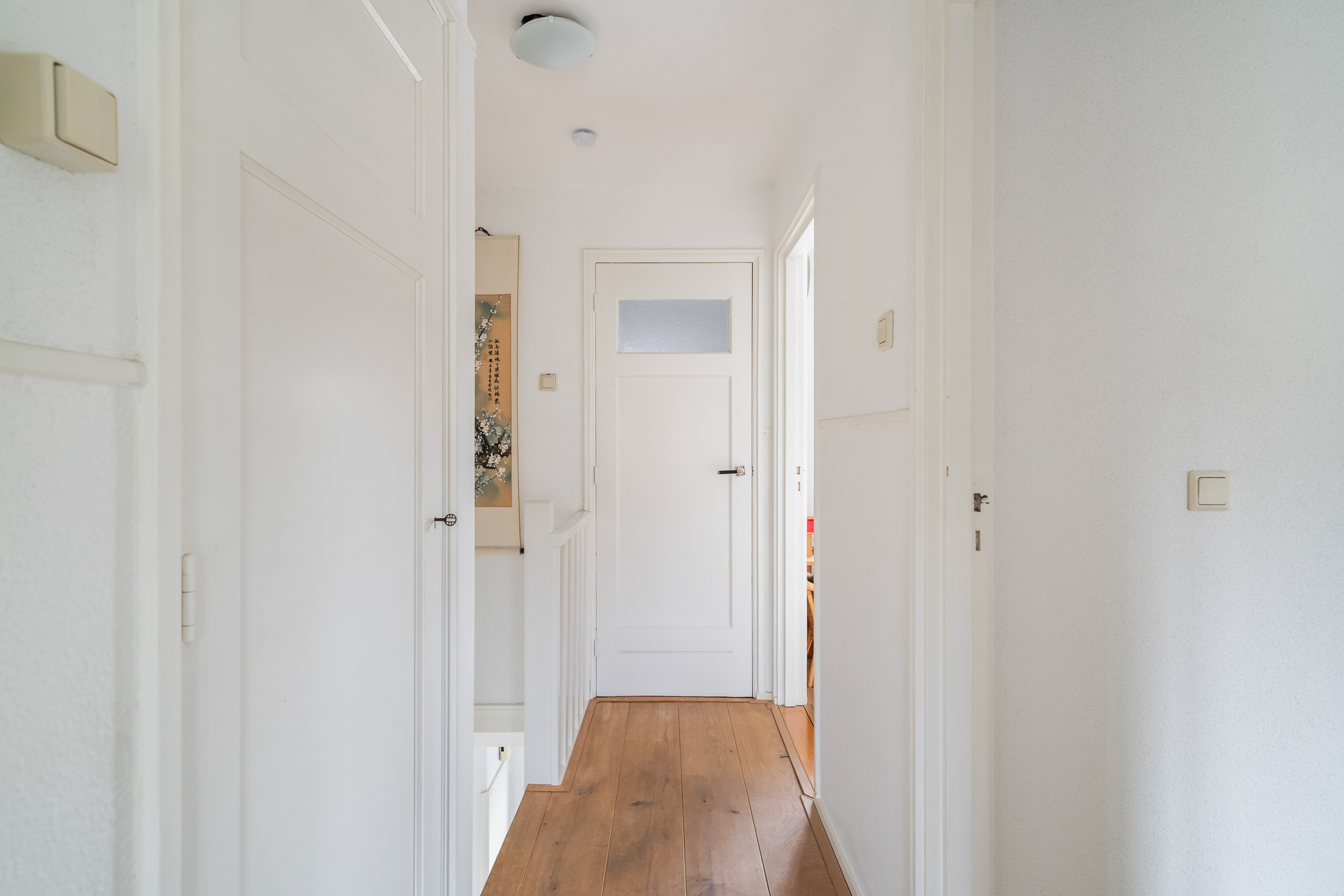 De woning beschikt over een lichte woonkamer met openslaande deuren naar de achtertuin, die is gelegen op het zuidwesten. Verder vindt u een dichte keuken en twee ruime slaapkamers. De karakteristieke jaren ’30 paneeldeuren en houten vloeren geven de woning extra charme en sfeer.