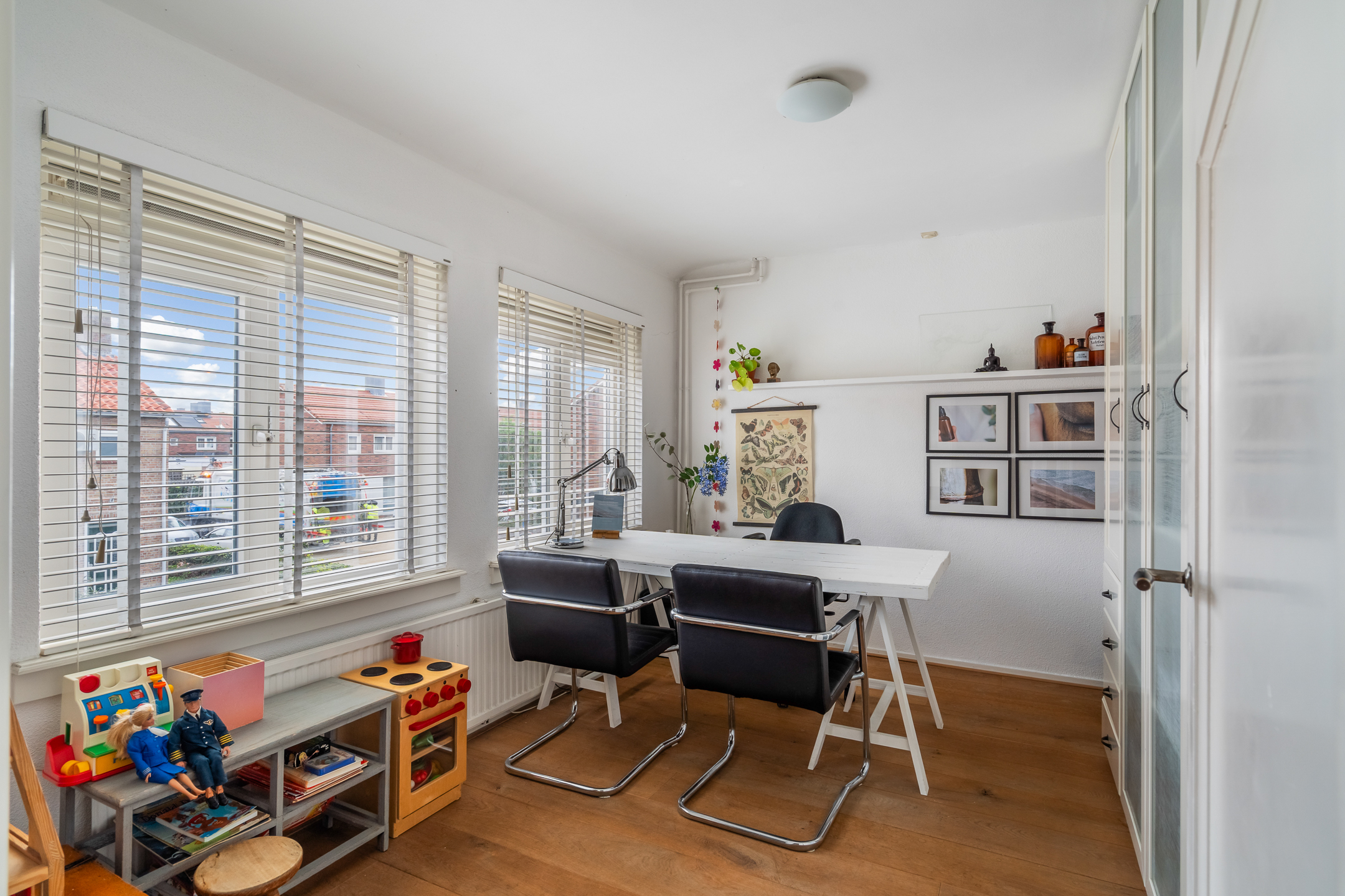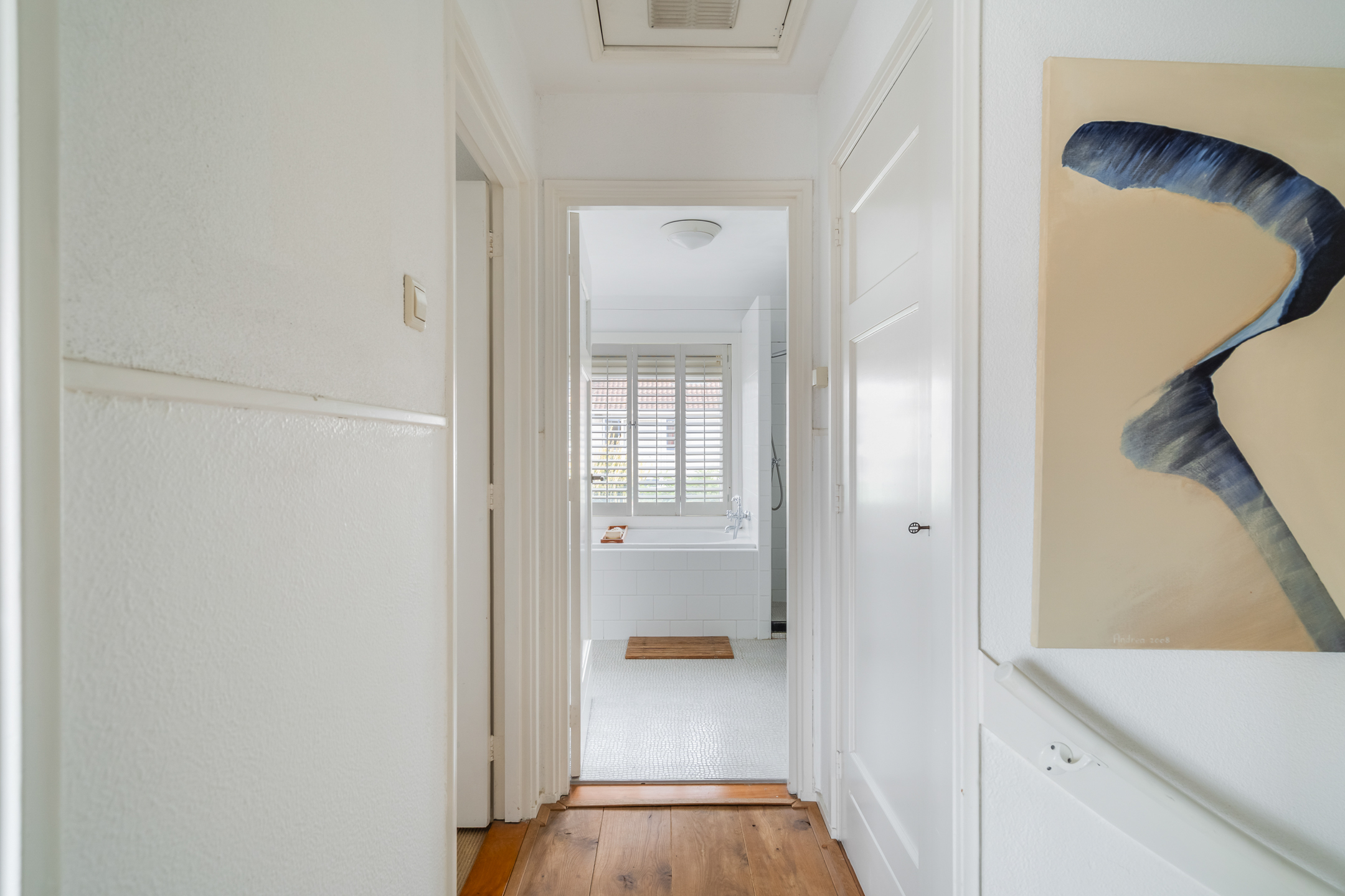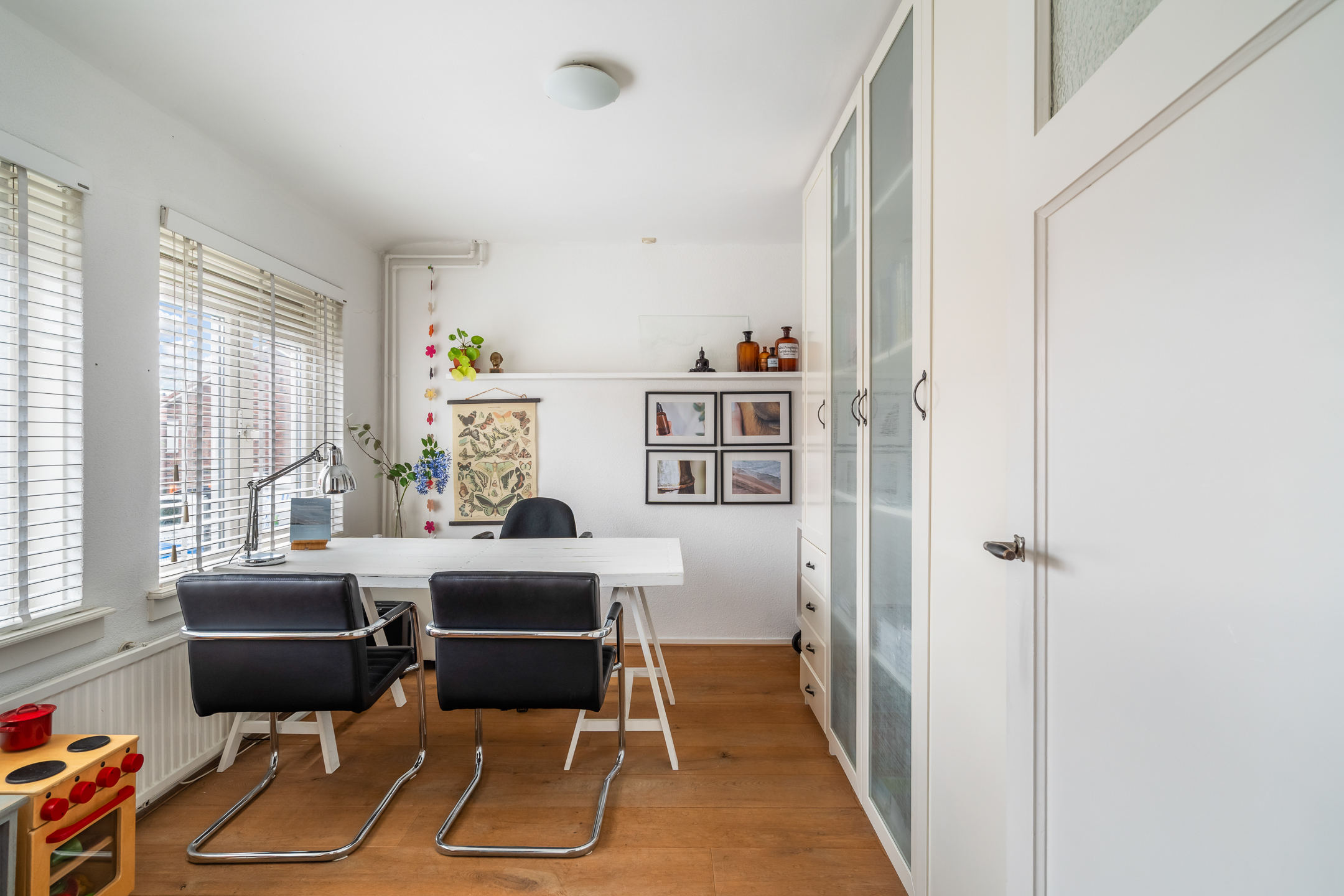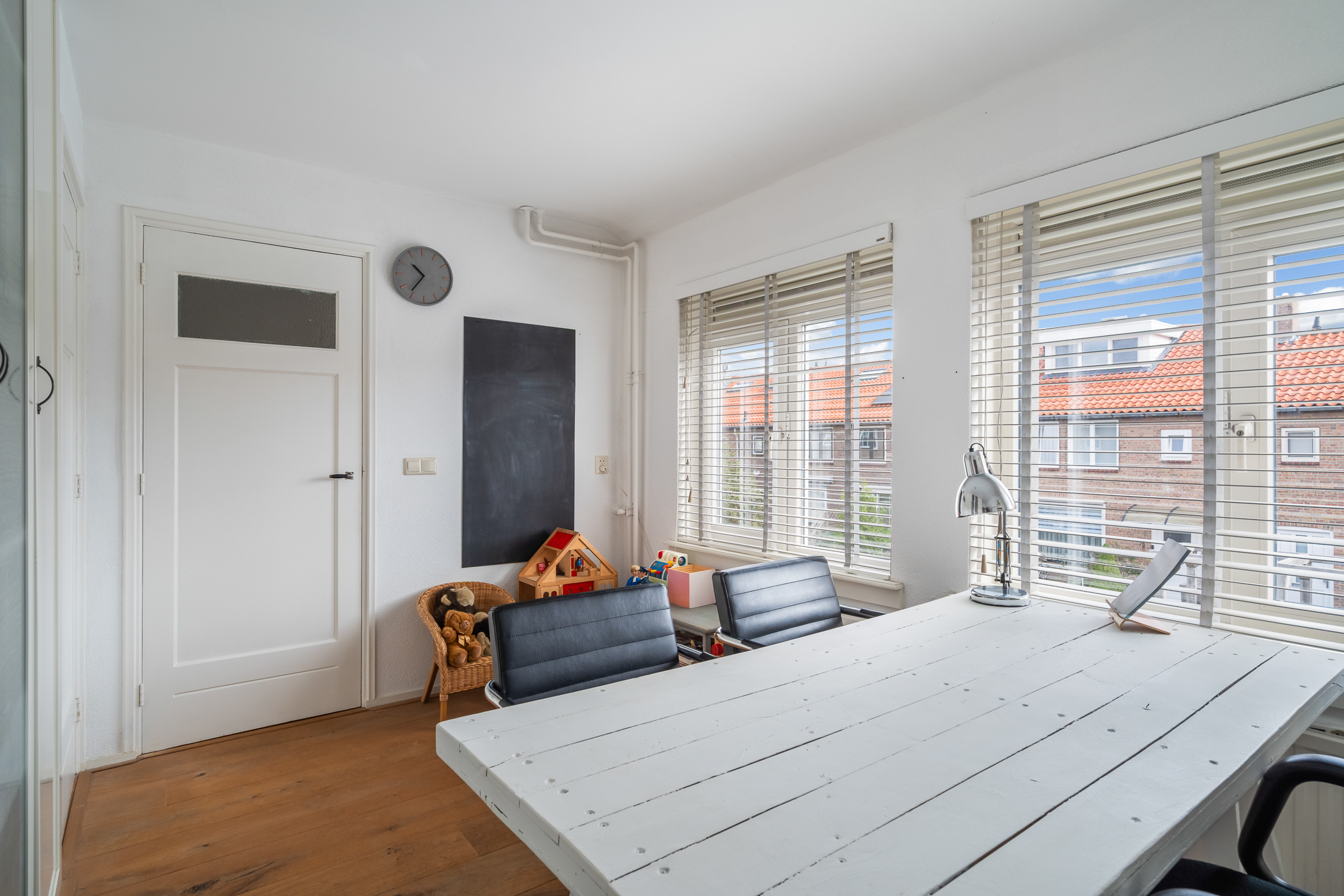 De woning beschikt over een lichte woonkamer met openslaande deuren naar de achtertuin, die is gelegen op het zuidwesten. Verder vindt u een dichte keuken en twee ruime slaapkamers. De karakteristieke jaren ’30 paneeldeuren en houten vloeren geven de woning extra charme en sfeer.