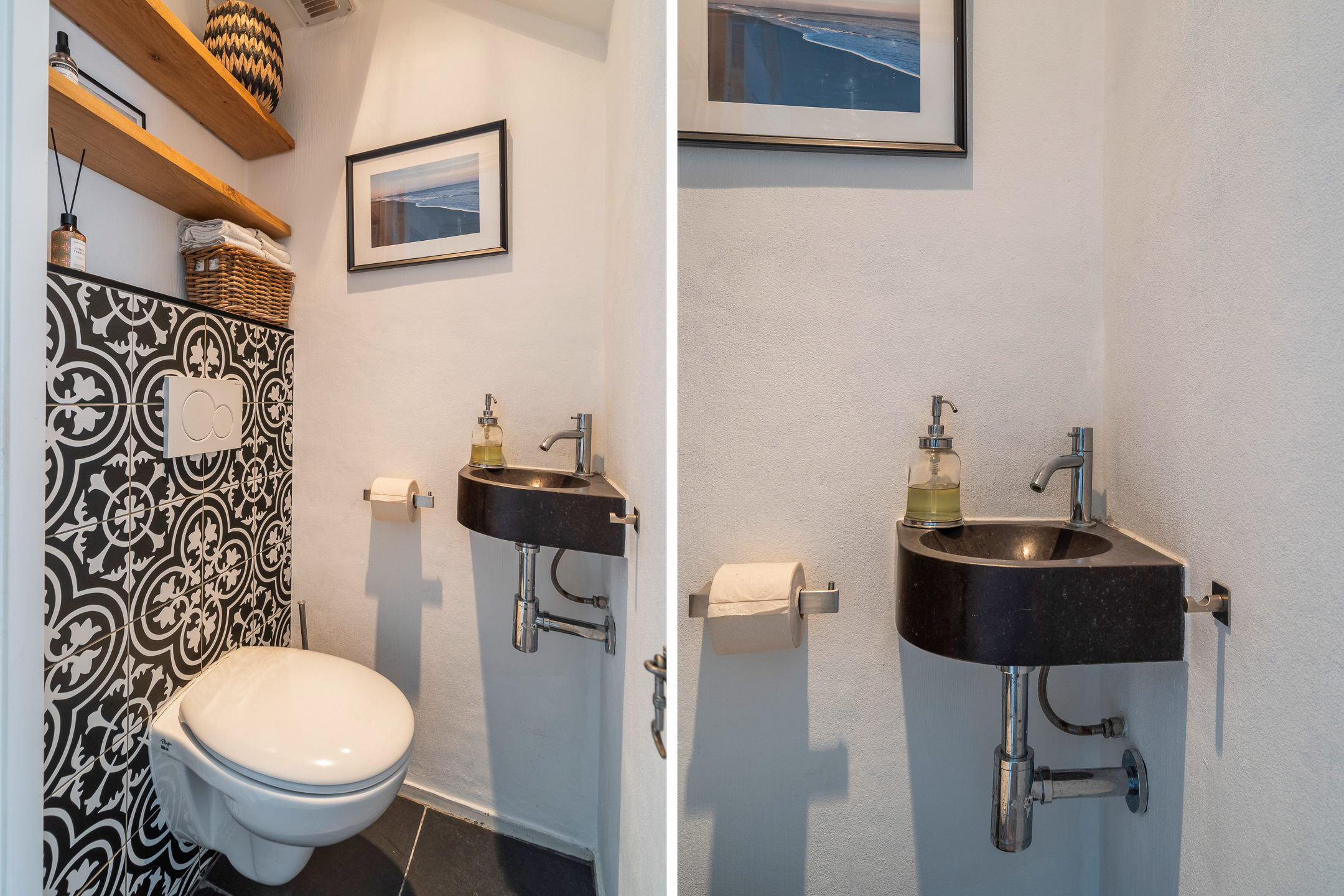 - De voormalige badkamer is omgebouwd tot wasruimte met wasbak en aansluiting voor de wasmachine;