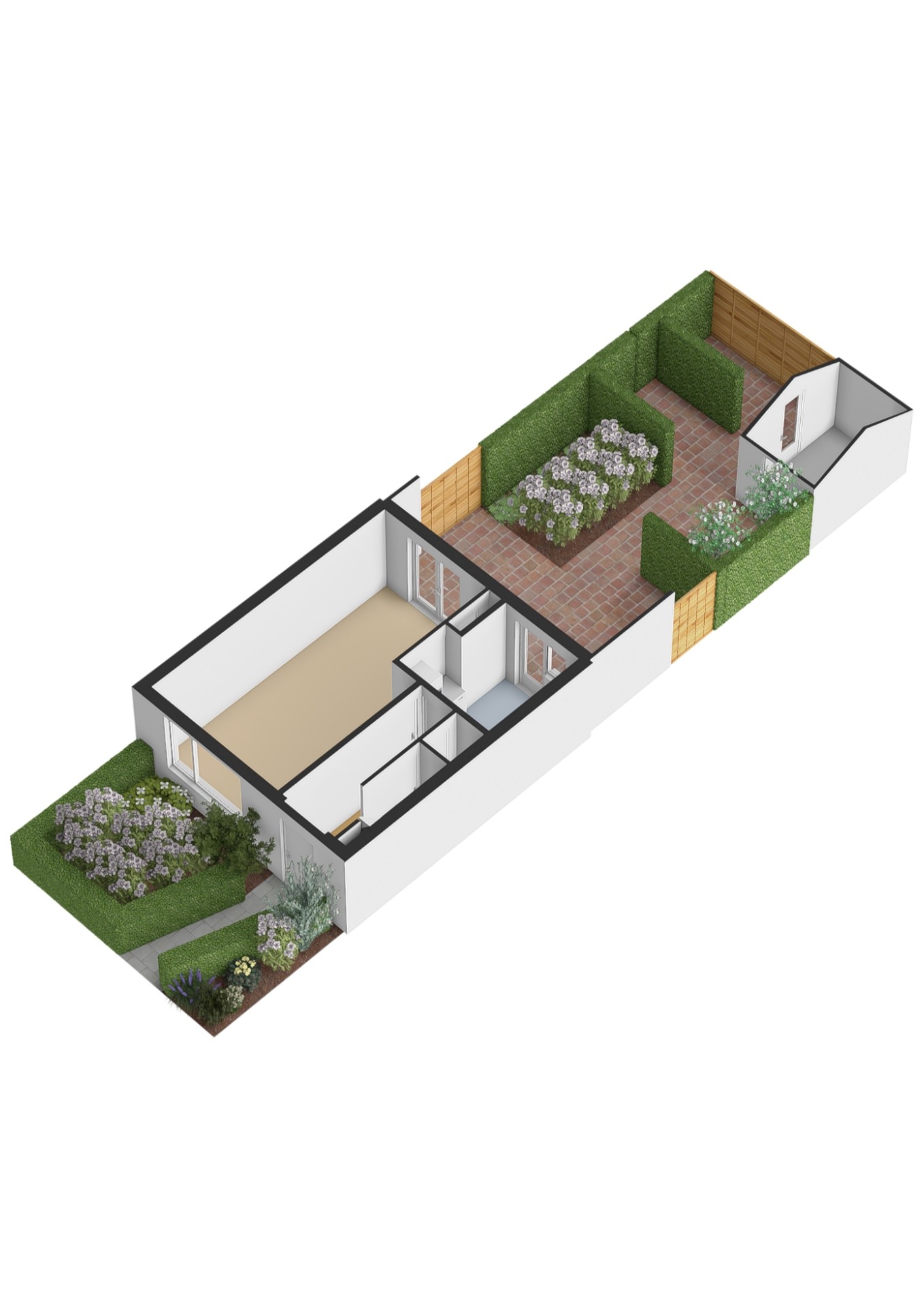 - Oppervlakte hoofdtuin ca. 61 m2