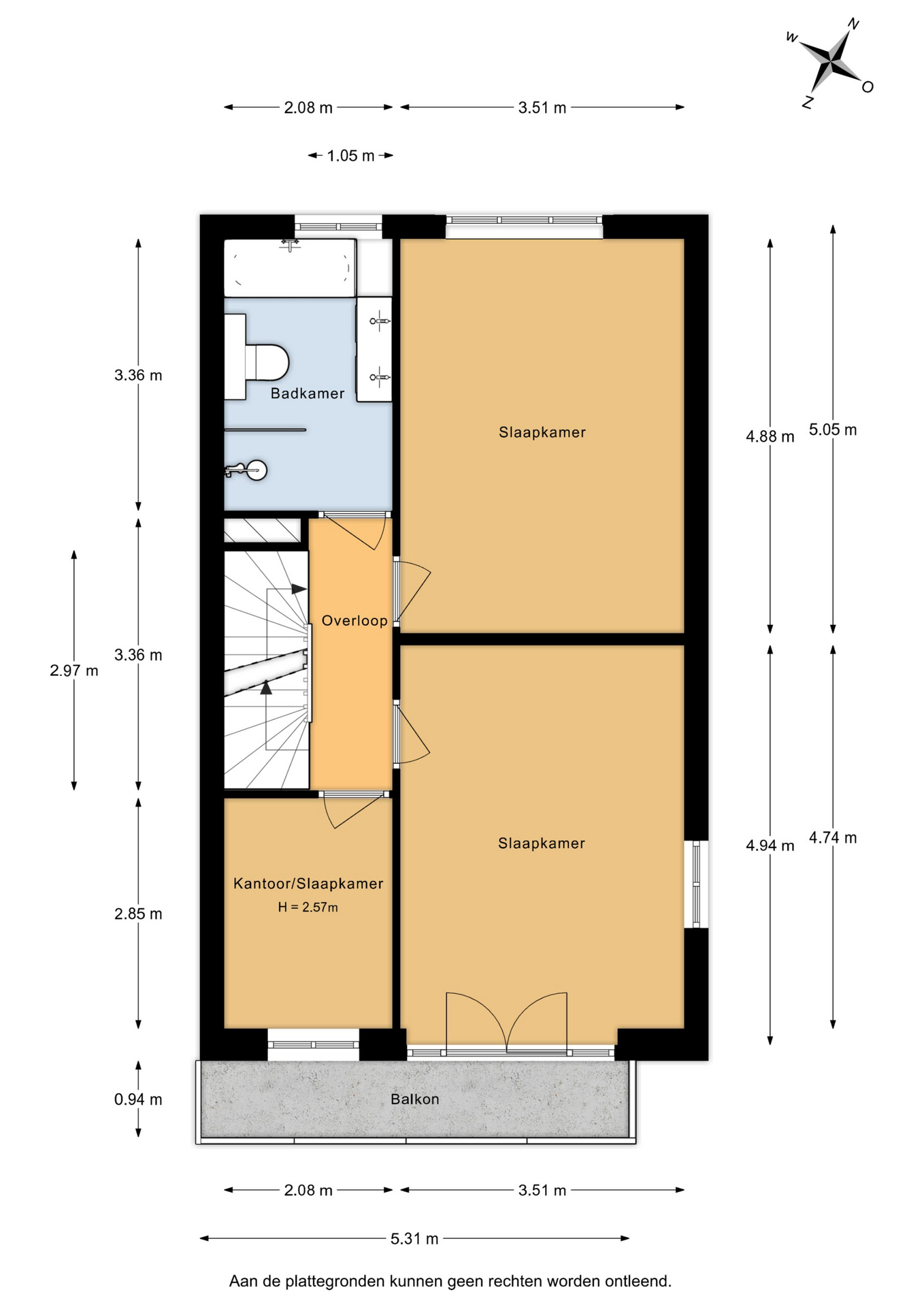 - Grote slaapkamer aan de voorzijde van de woning (ca. 4,94 x 3,51 m) met zijraam en openslaande deuren naar het zonnige balkon;