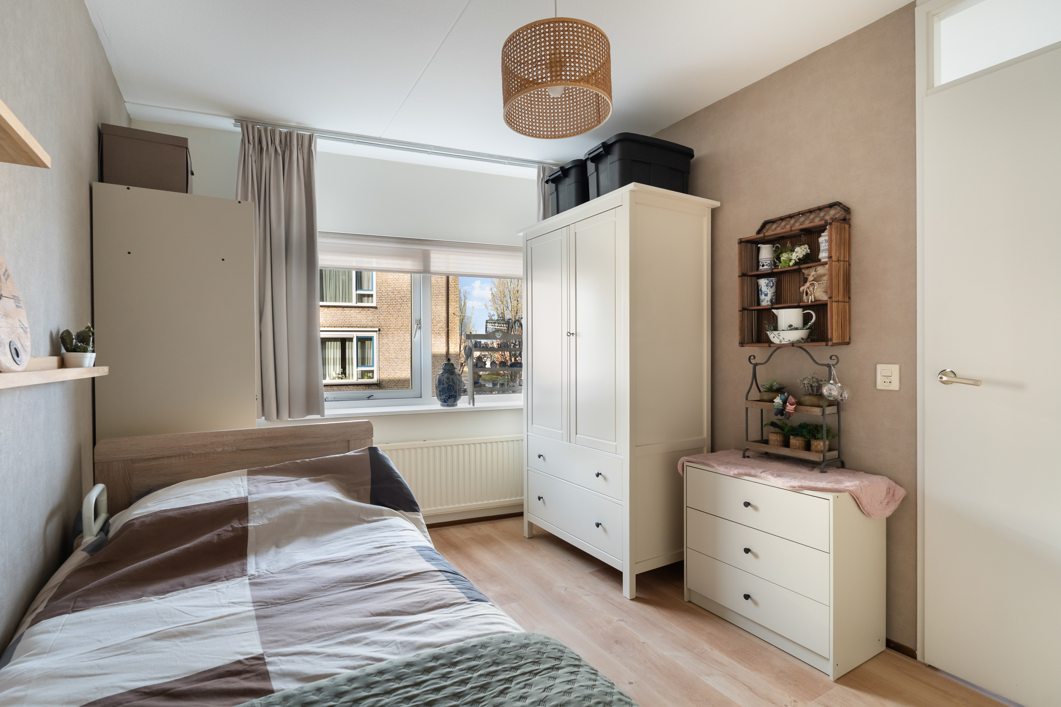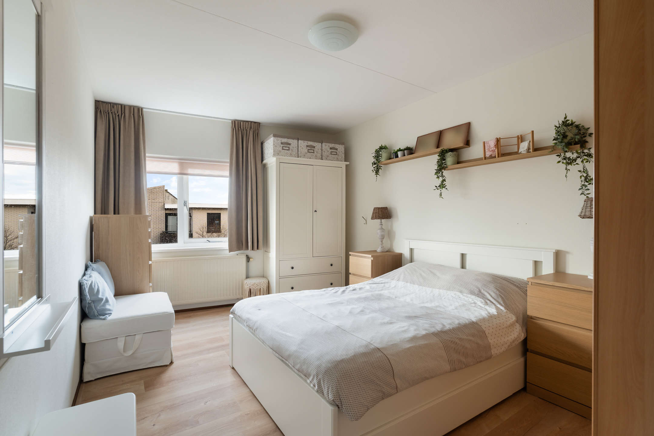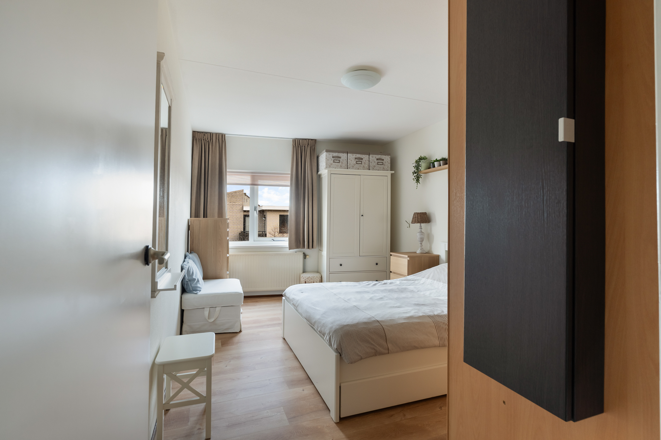 - Ruime slaapkamer met laminaatvloer en vaste schuifkast.