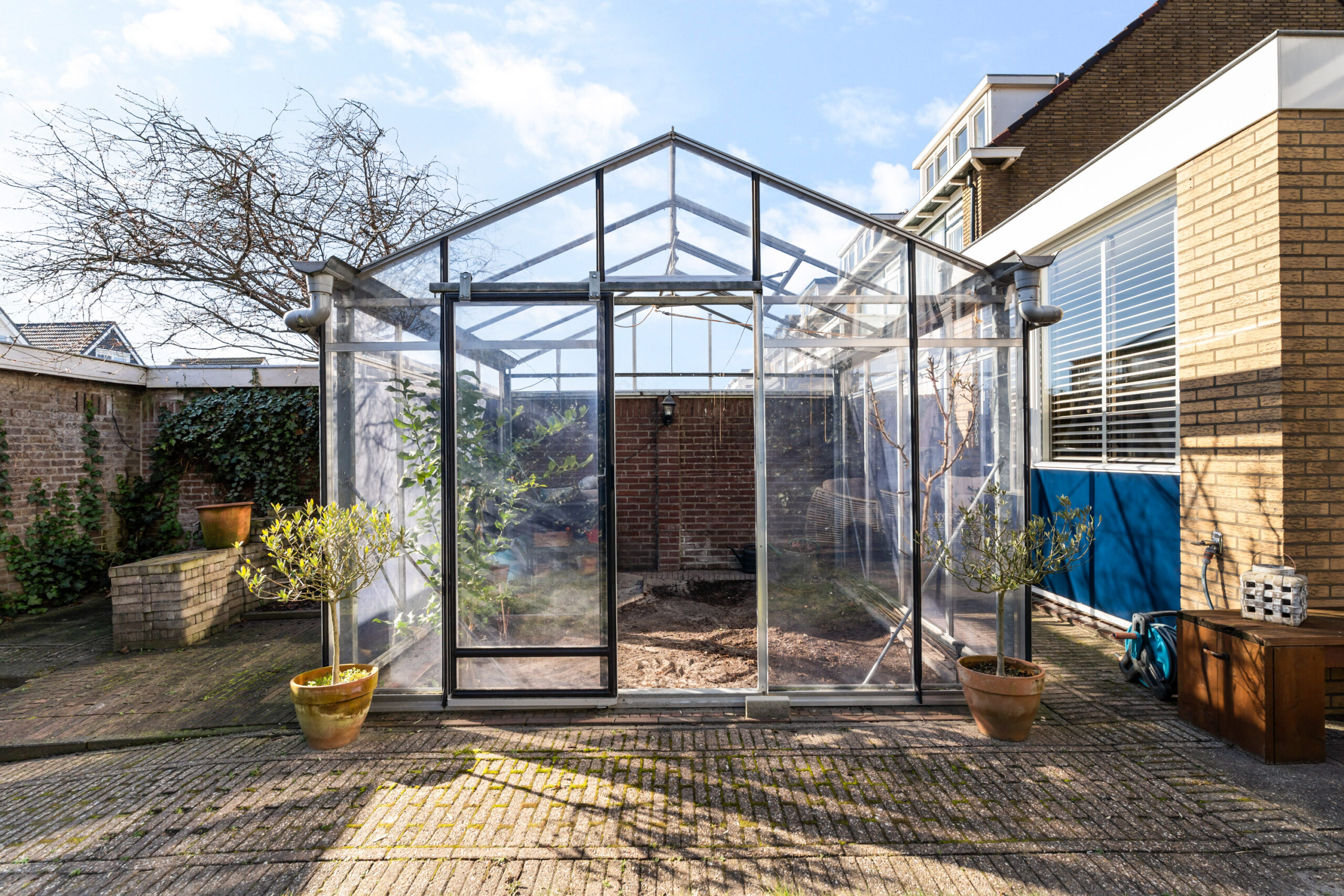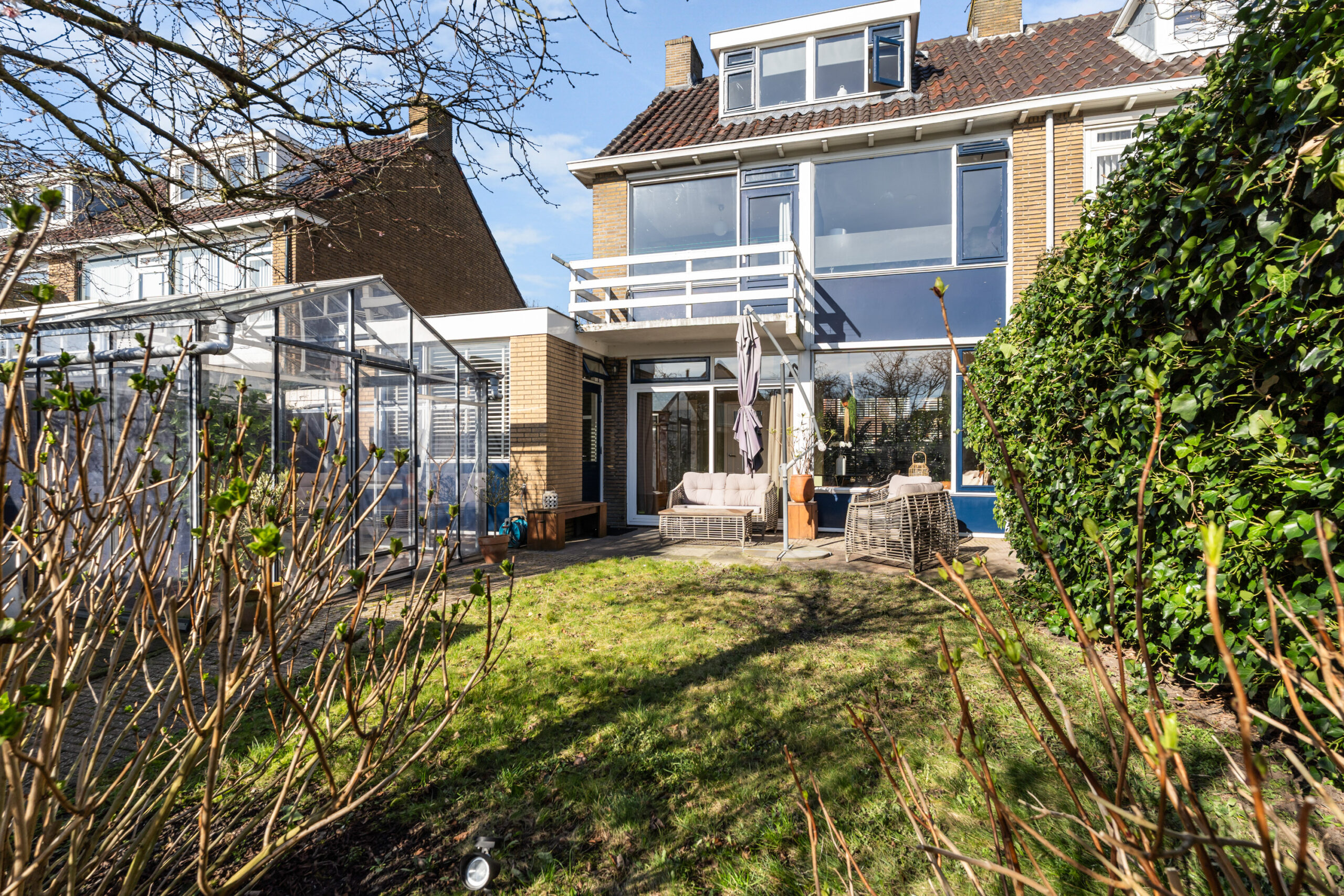 - De verzorgde achtertuin biedt op elk moment van de dag een heerlijk plekje in de zon en is voorzien van een ruime garage met elektrische roldeur en geschakelde berging met elektra. Tevens heeft de tuin een hobbykas waar je je eigen groente en fruit kunt gaan kweken.