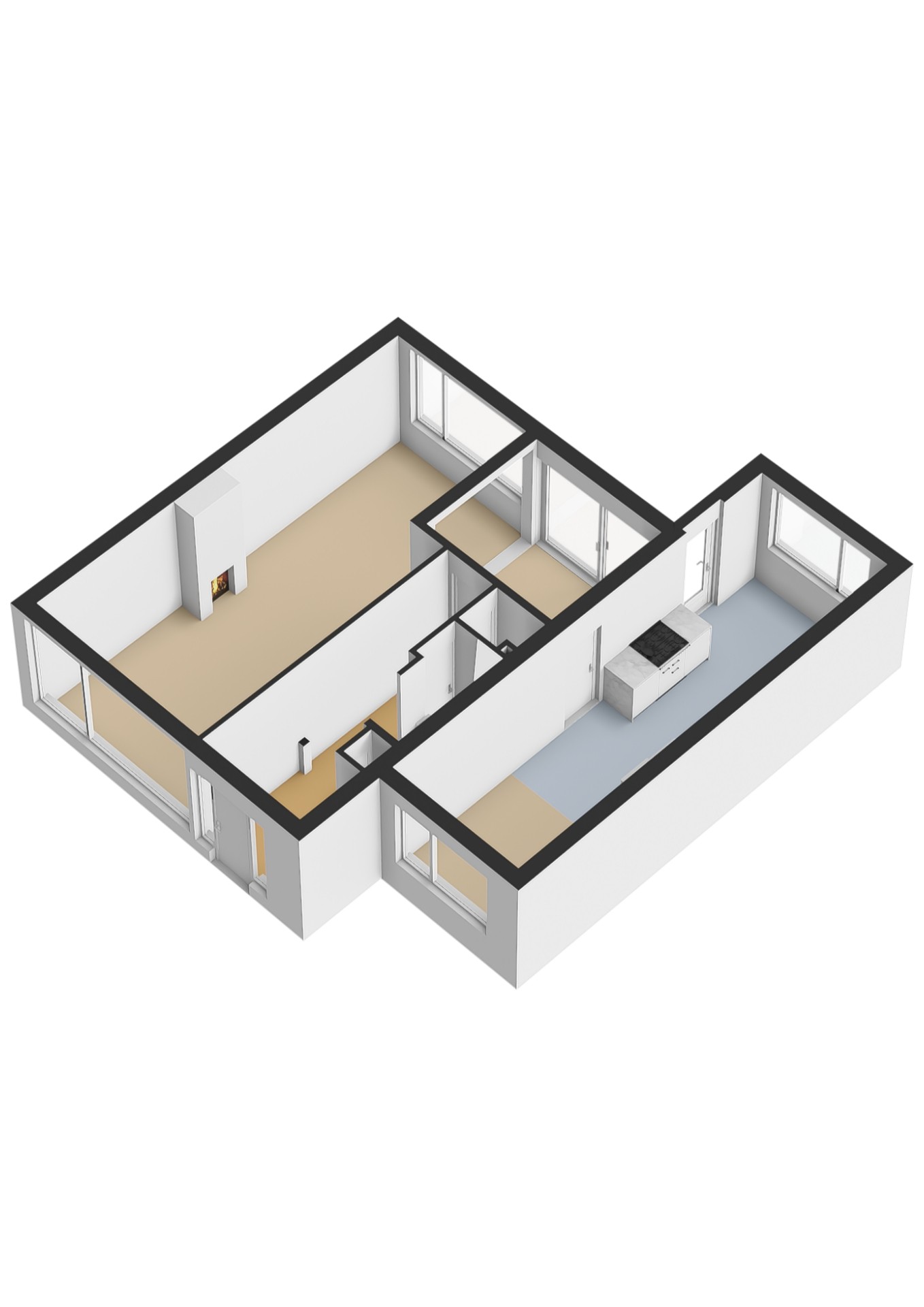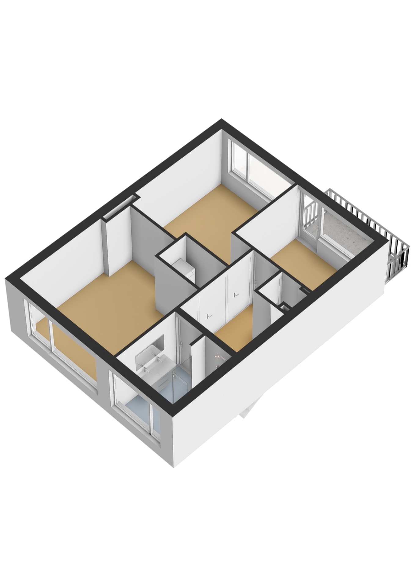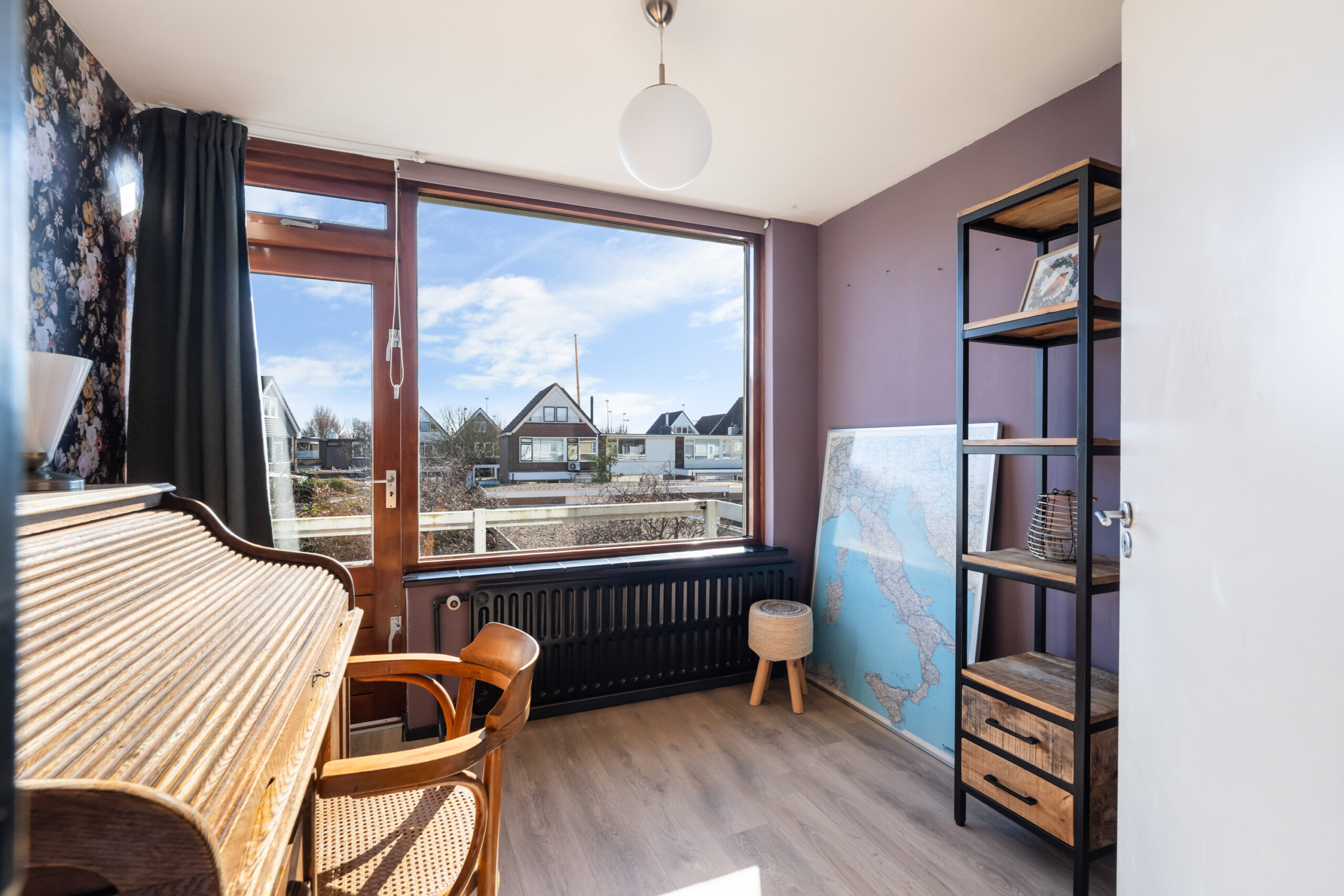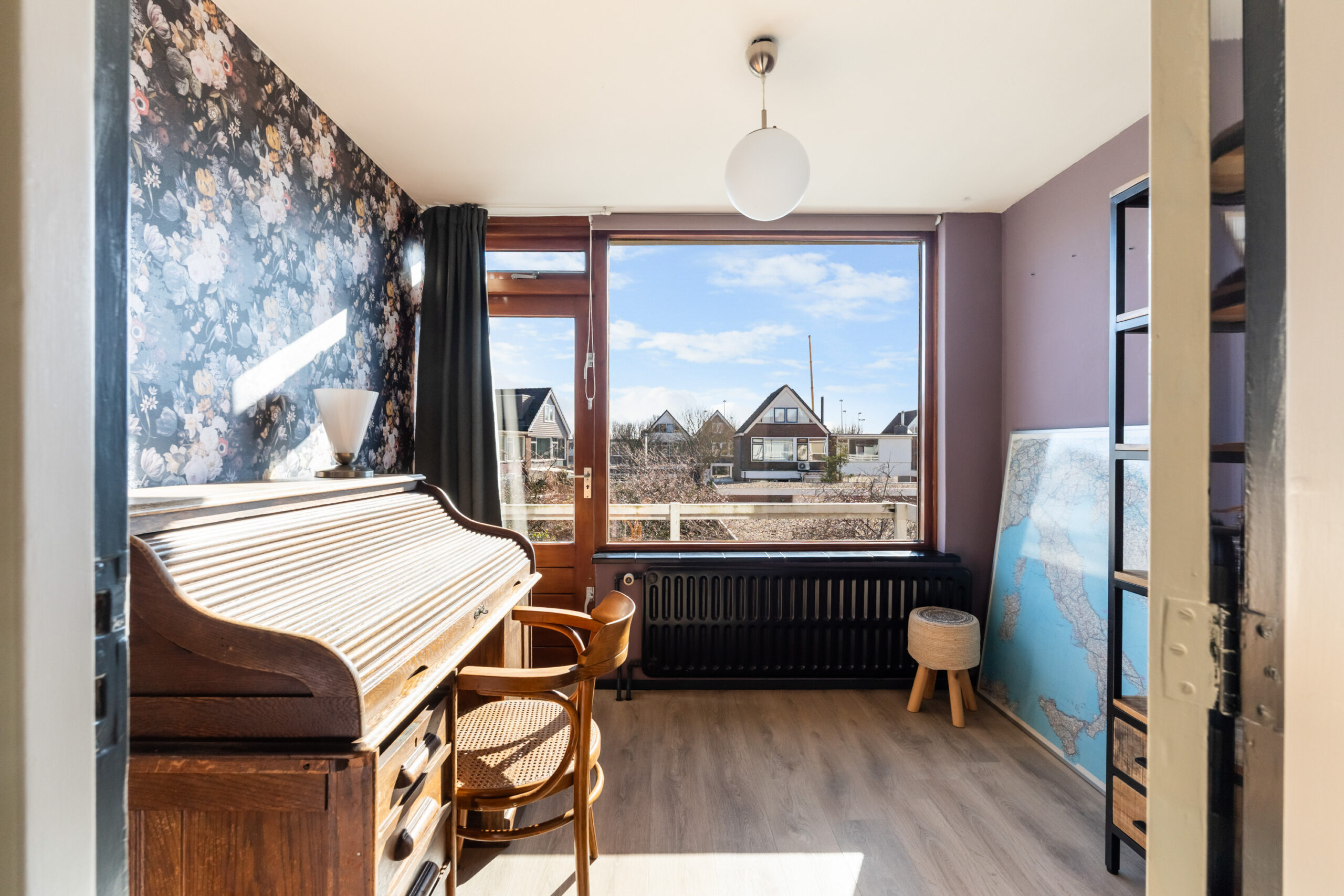 - Derde slaap-/ studeerkamer (ca. 7 m2) tevens gelegen aan de achterzijde van de woning. De kamer biedt toegang tot het zonnige balkon.