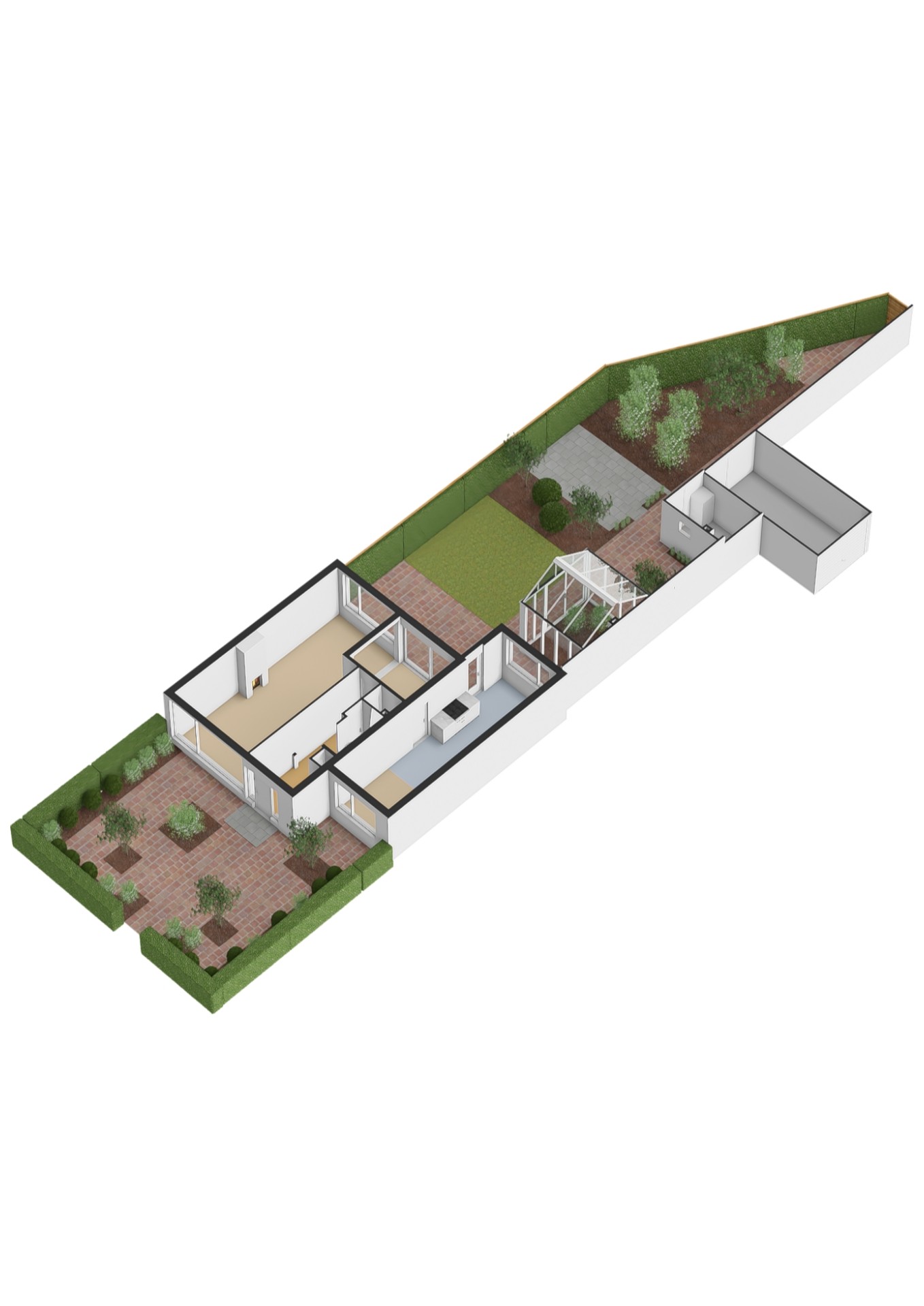 - Oppervlakte hoofdtuin ca. 129 m2