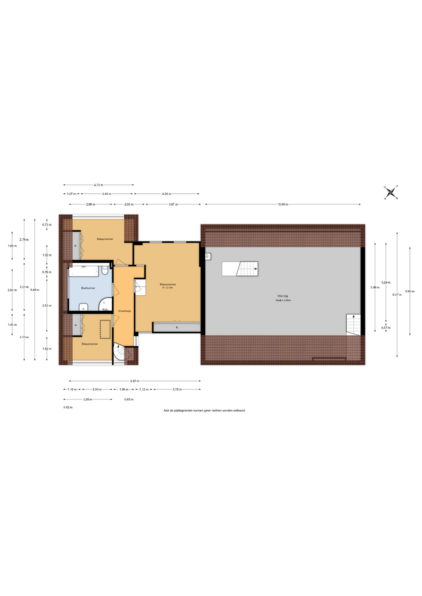 - Daarnaast zijn er twee slaapkamers van ca. 10 m² en 13 m²,  beide voorzien van vaste kasten;