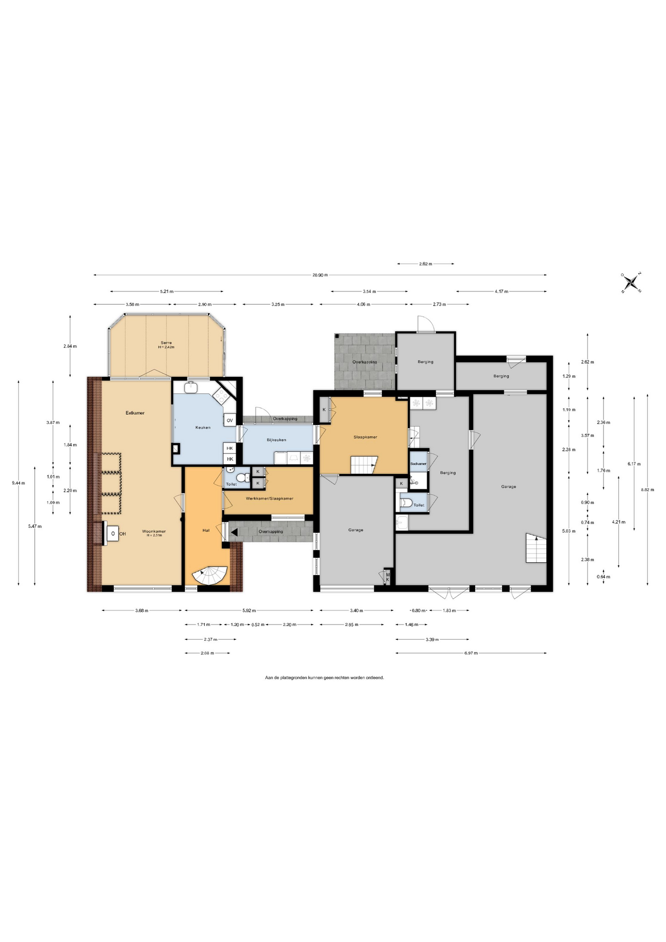 - De 2e bijkeuken, extra ruimte en de garages bevinden zich op het deel met agrarische bestemming;