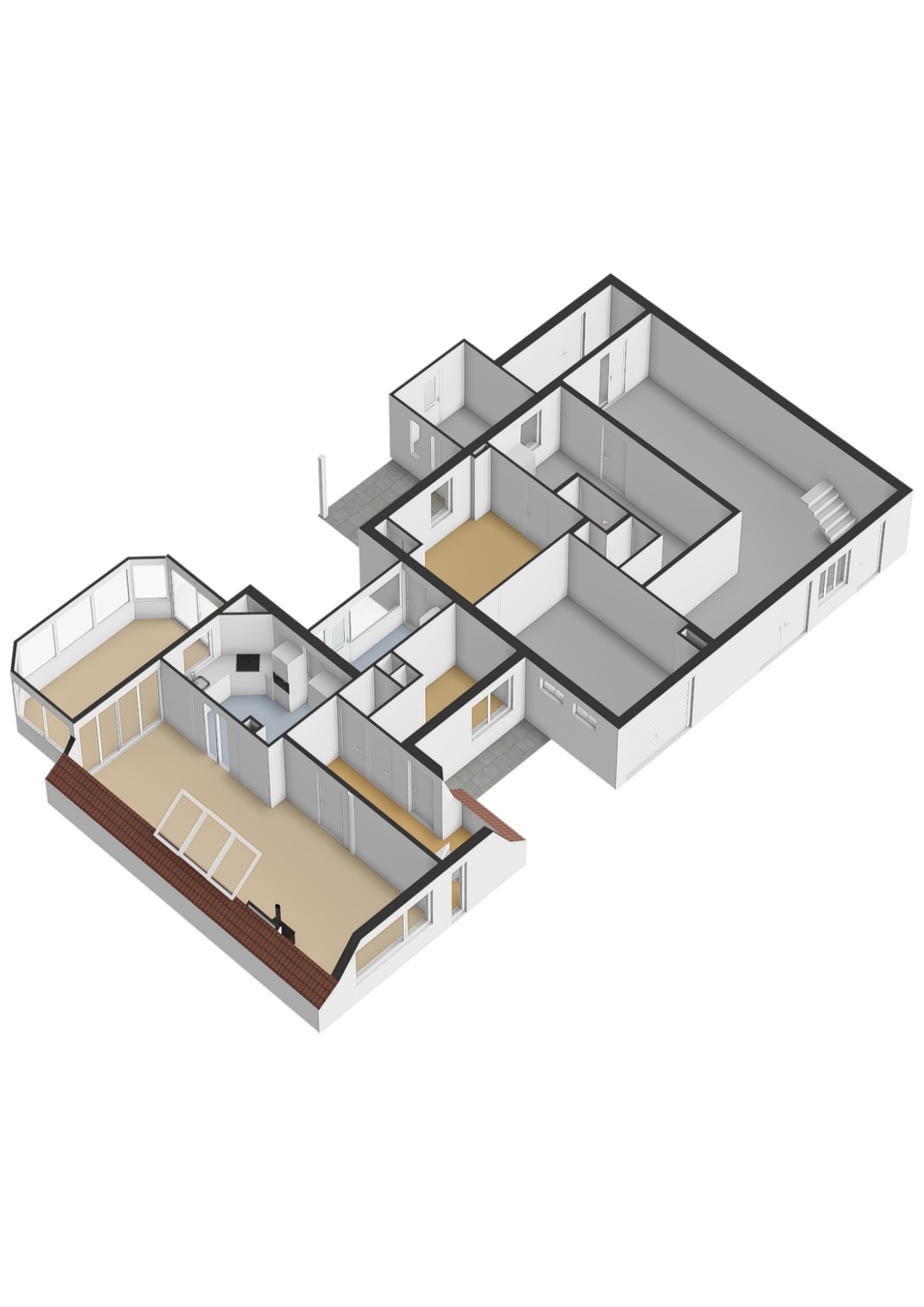- Via de tweede bijkeuken op de begane grond heeft u toegang tot de zolderruimte boven de garages. Deze ruimte is recent geïsoleerd en voorbereid voor het realiseren van een extra badkamer, en kan in de toekomst geschikt gemaakt worden voor diverse doeleinden zoals extra slaapkamers, hobbyruimte of kantoor.