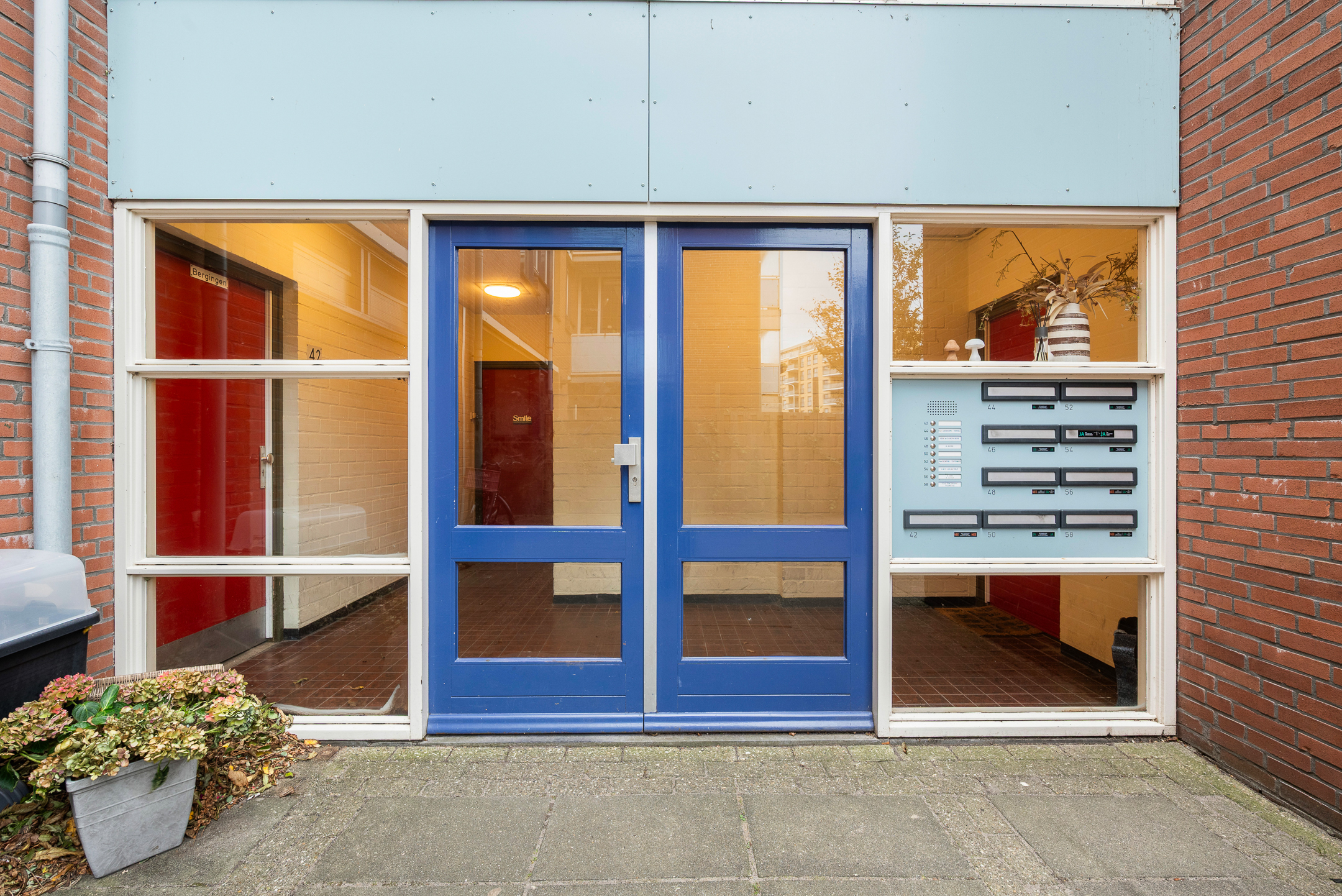 - Centrale entree met bellentableau en brievenbussen en trap naar de eerste verdieping;