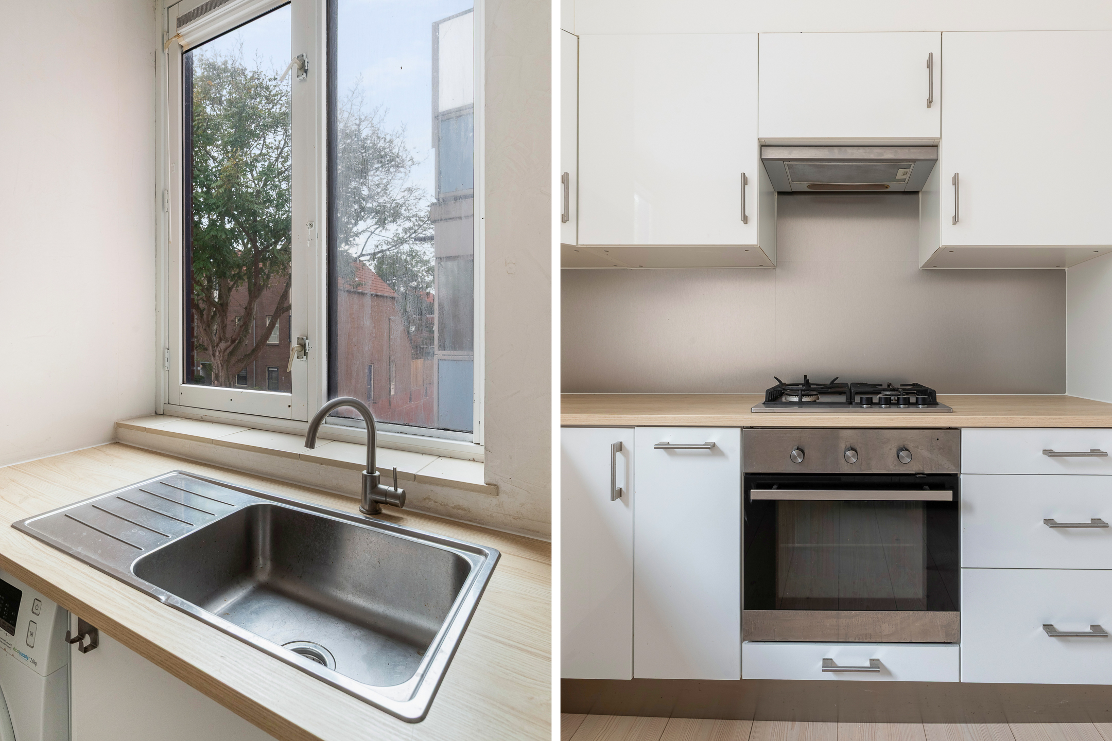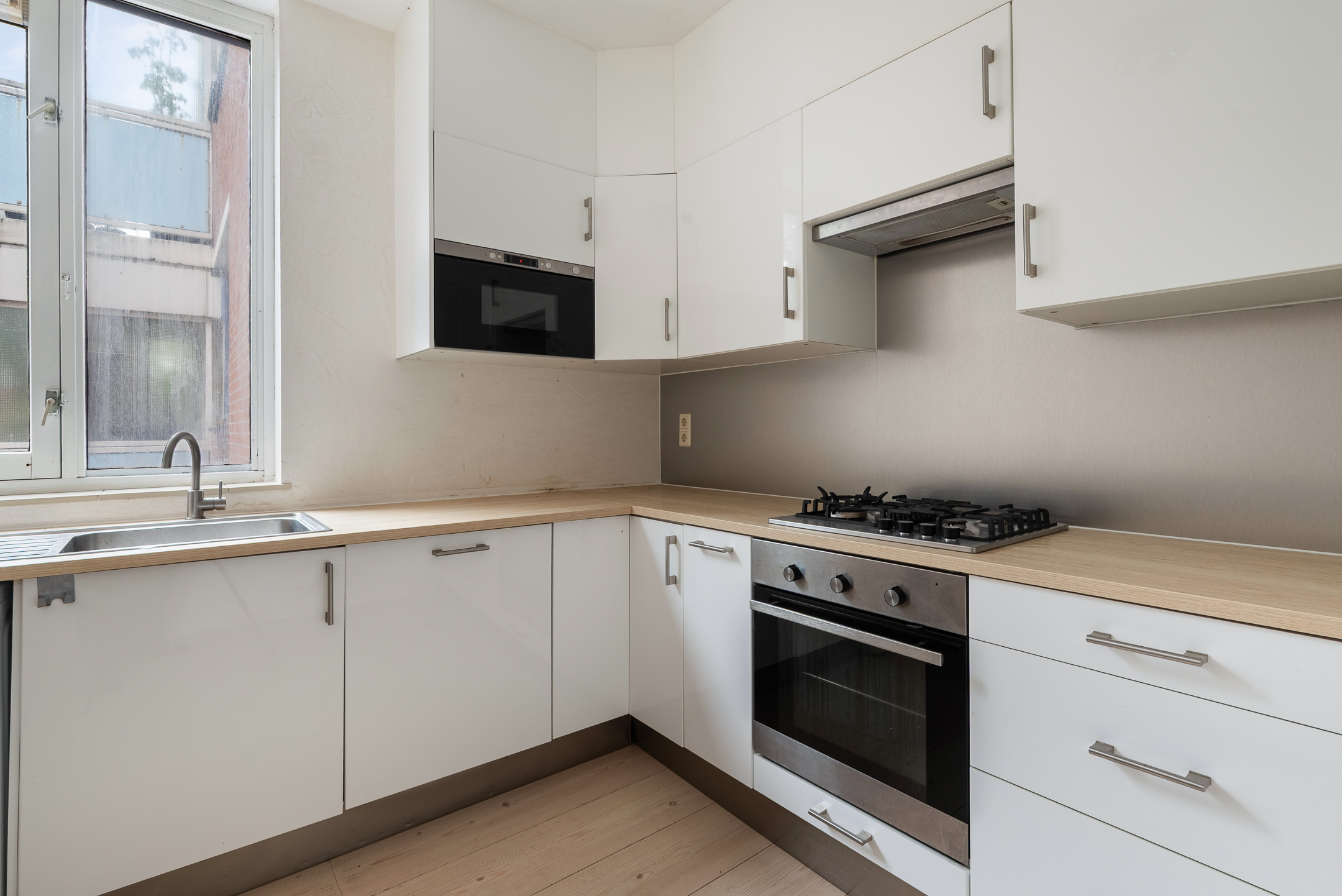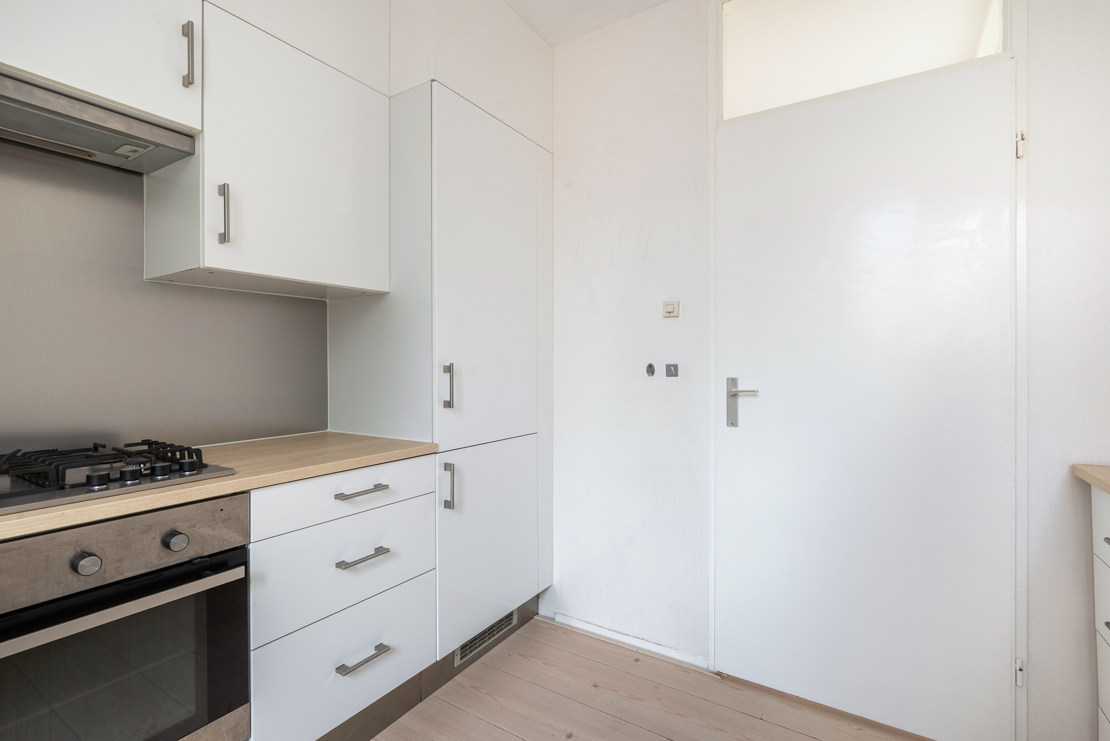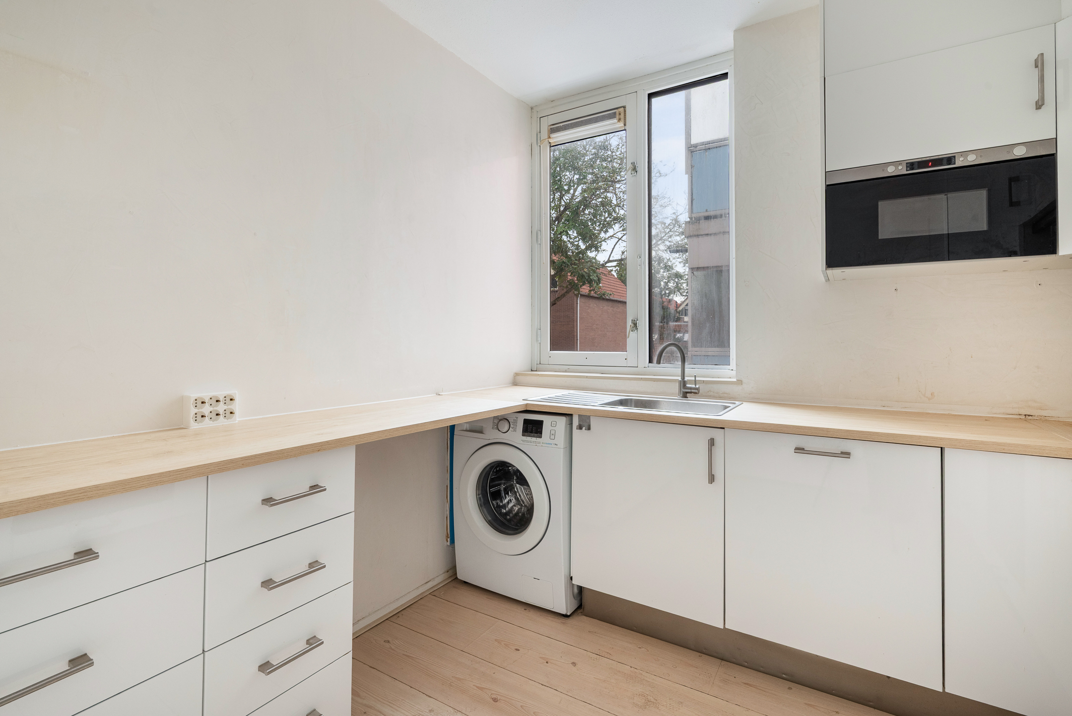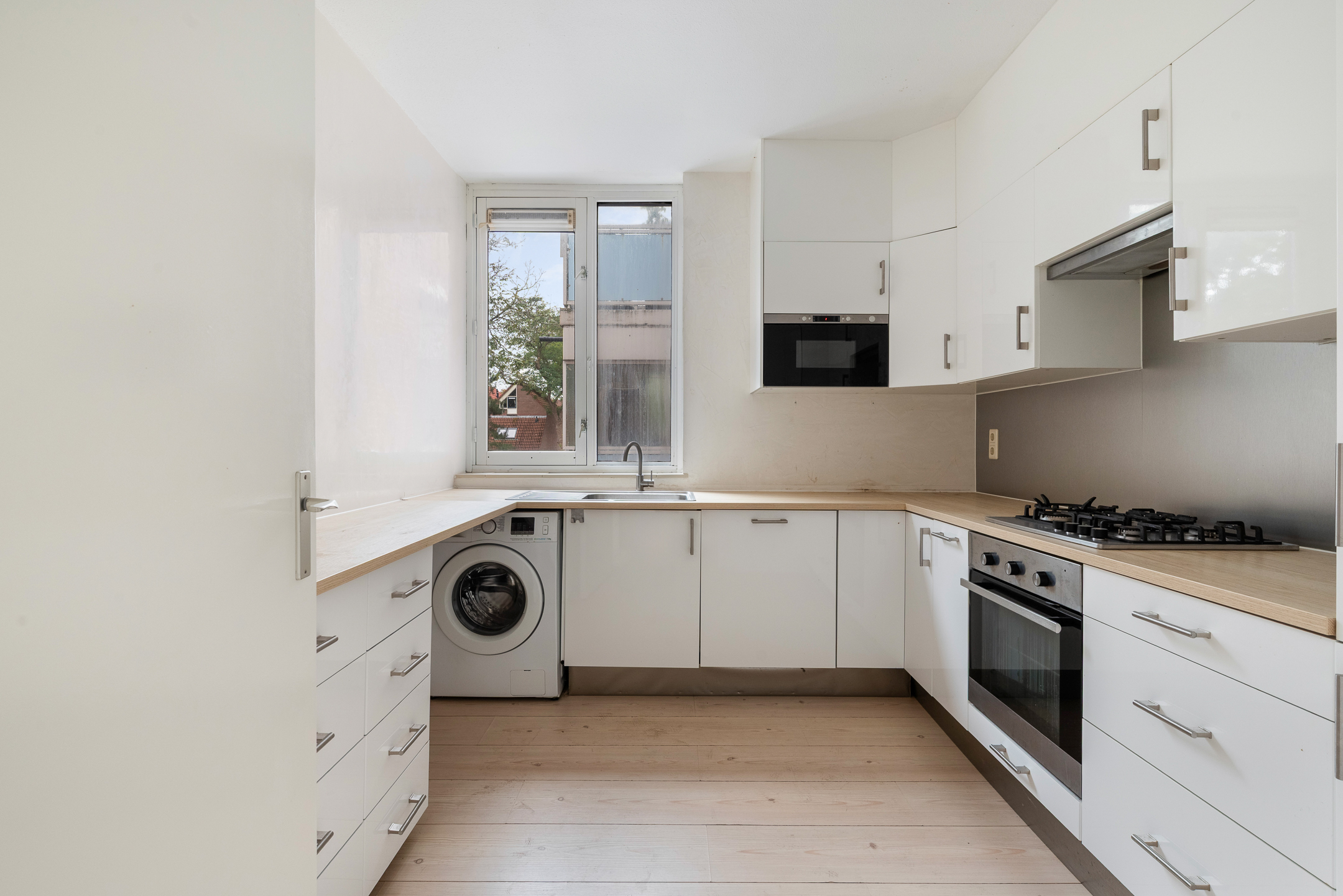 - Gesloten keuken (ca. 2,79 x 3,20 m) met diverse inbouwapparatuur: koelkast, vriezer, magnetron, oven, 4 pits gaskookplaat, afzuigkap, vaatwasser en aansluiting voor de wasmachine;
