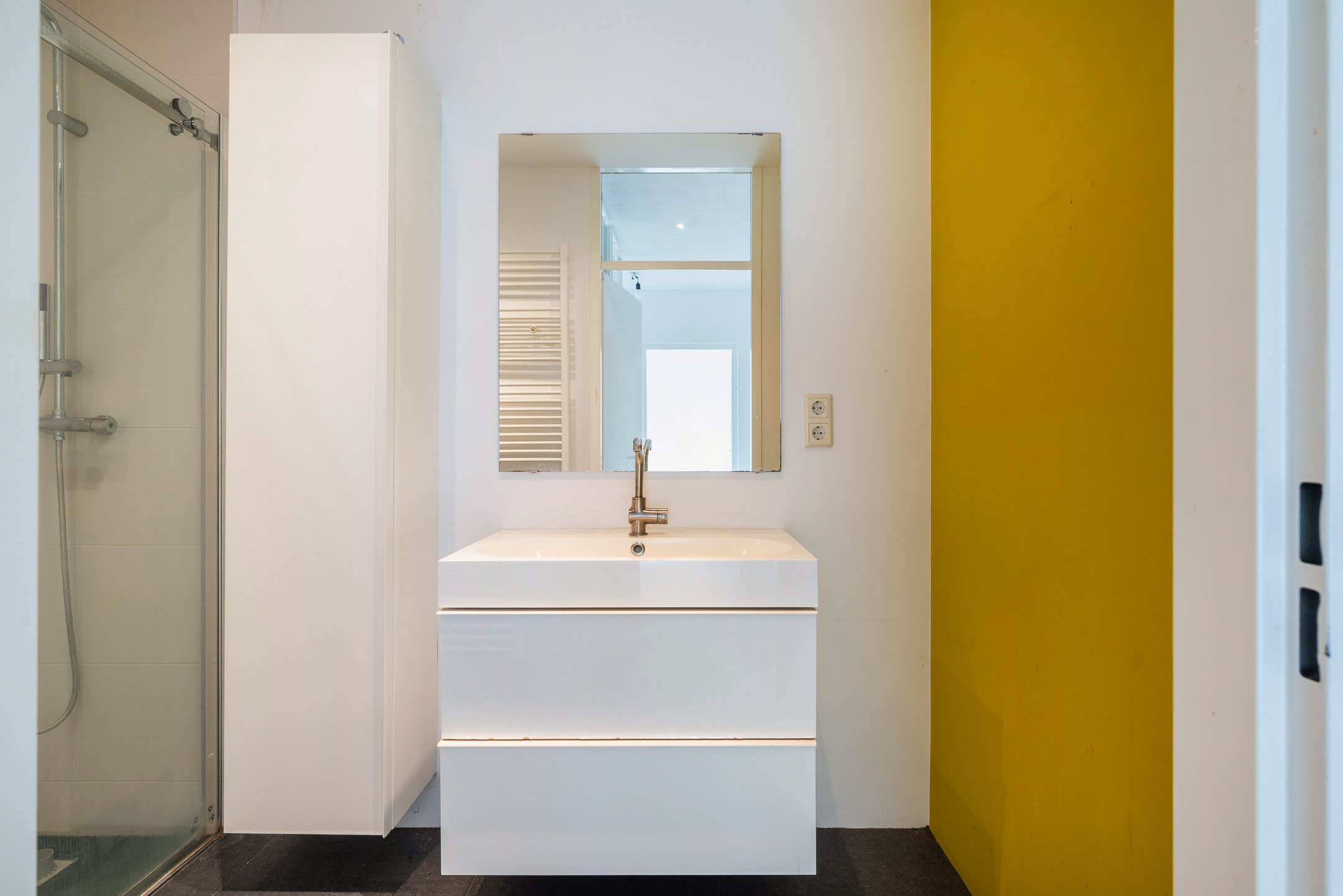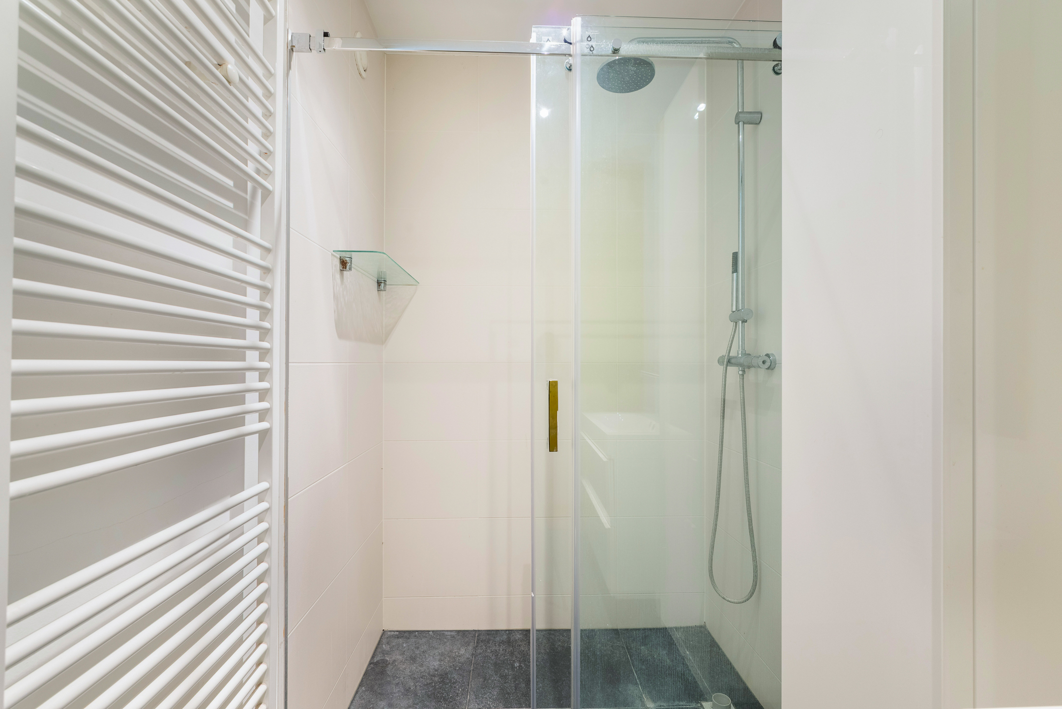 - De badkamer (ca. 2,90 x 1,42 m) voorzien van douche en wastafel.