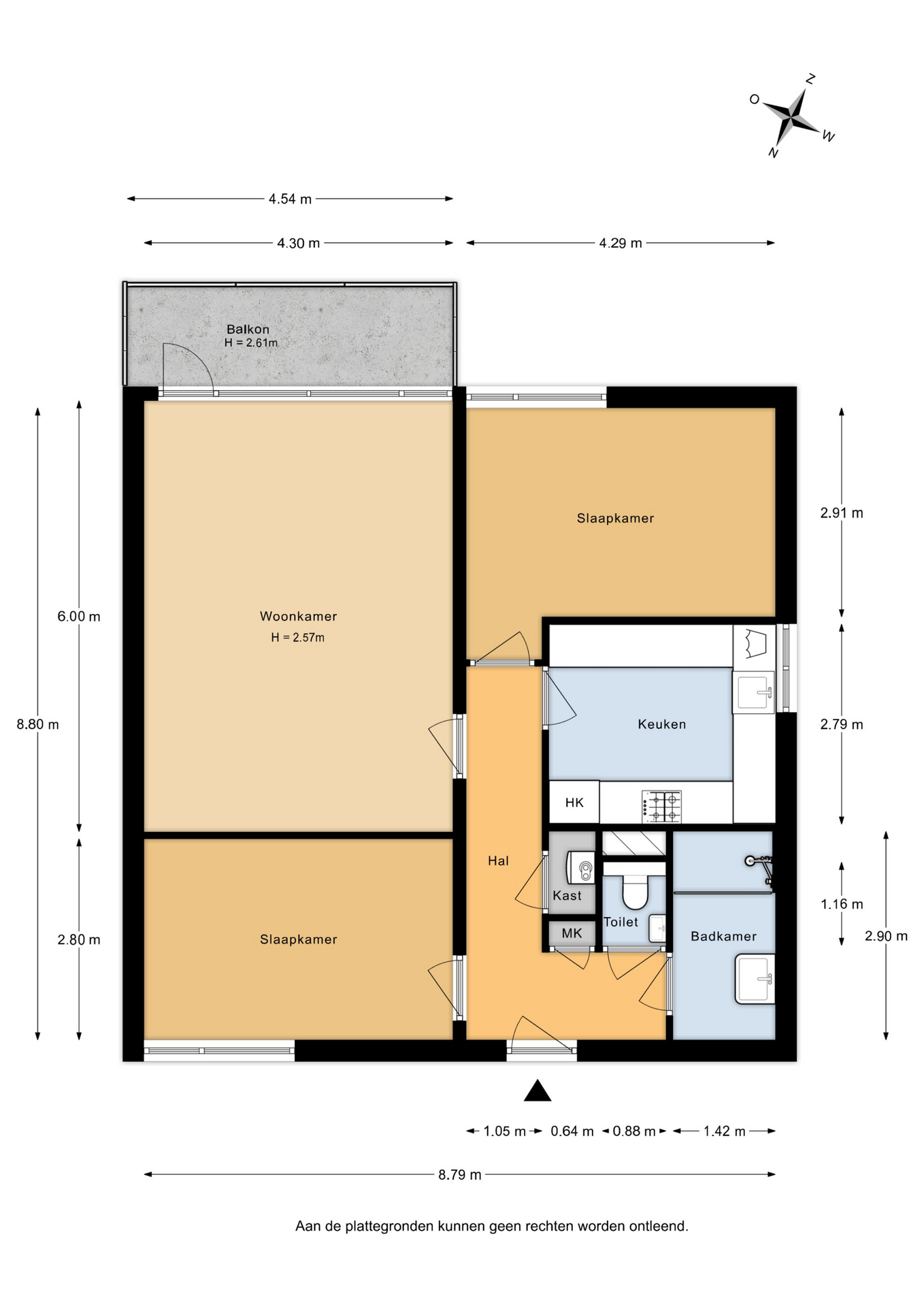 - Zonnig balkon (ca. 1,44 x 4,54 m) gelegen op het zuidoosten;