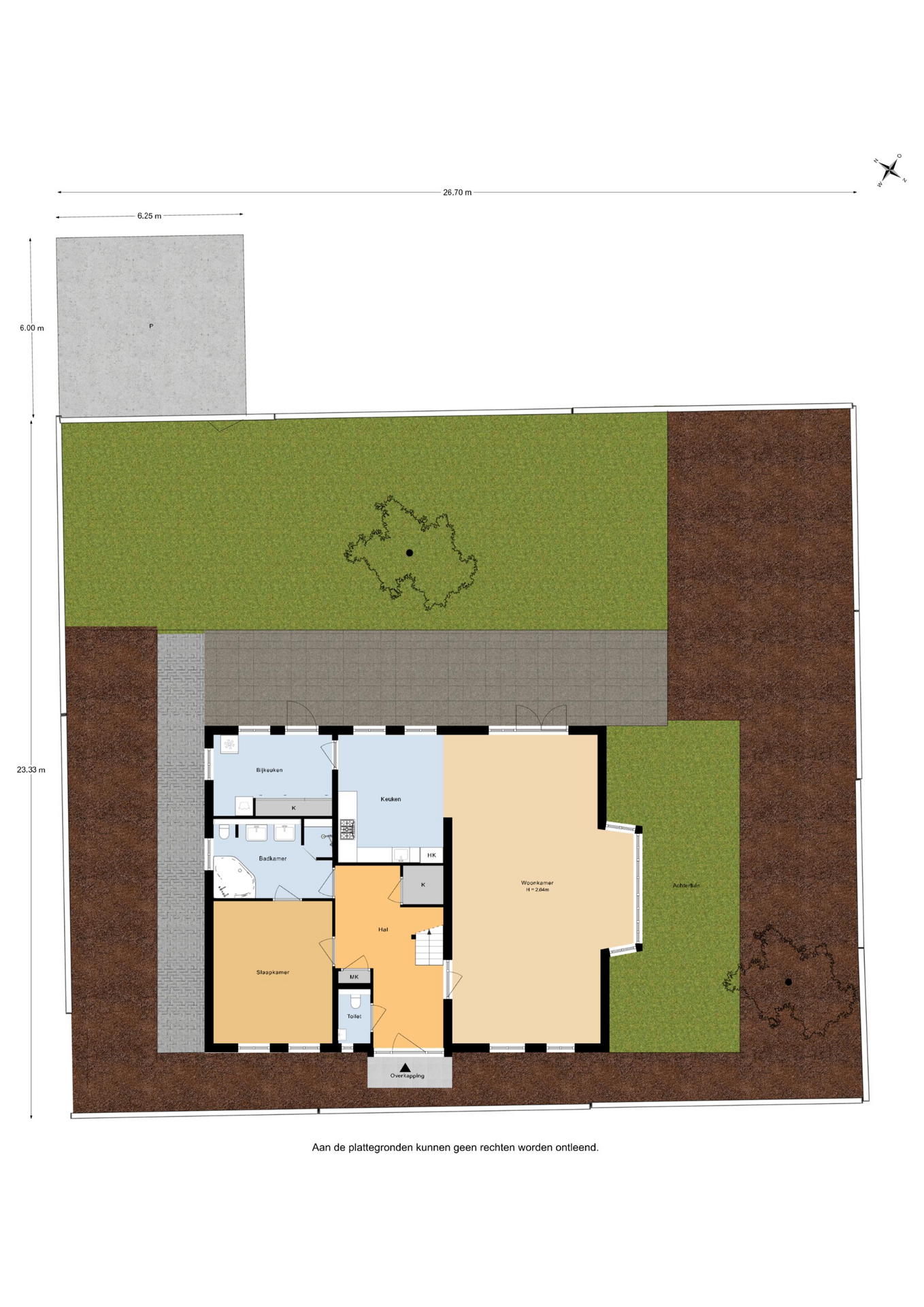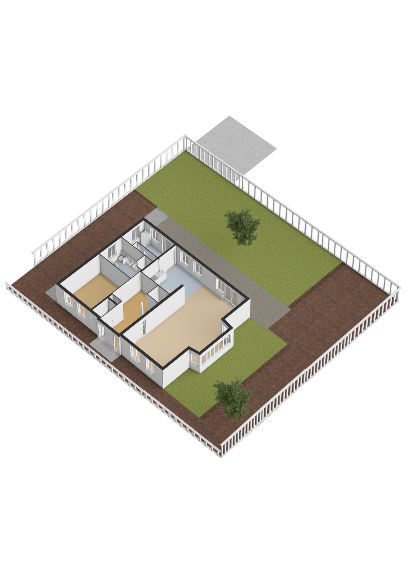 - Royale en zonnige achtertuin welke nog geheel naar eigen wens aangelegd kan worden. Aan de achterzijde van de tuin zijn twee parkeerplaatsen.