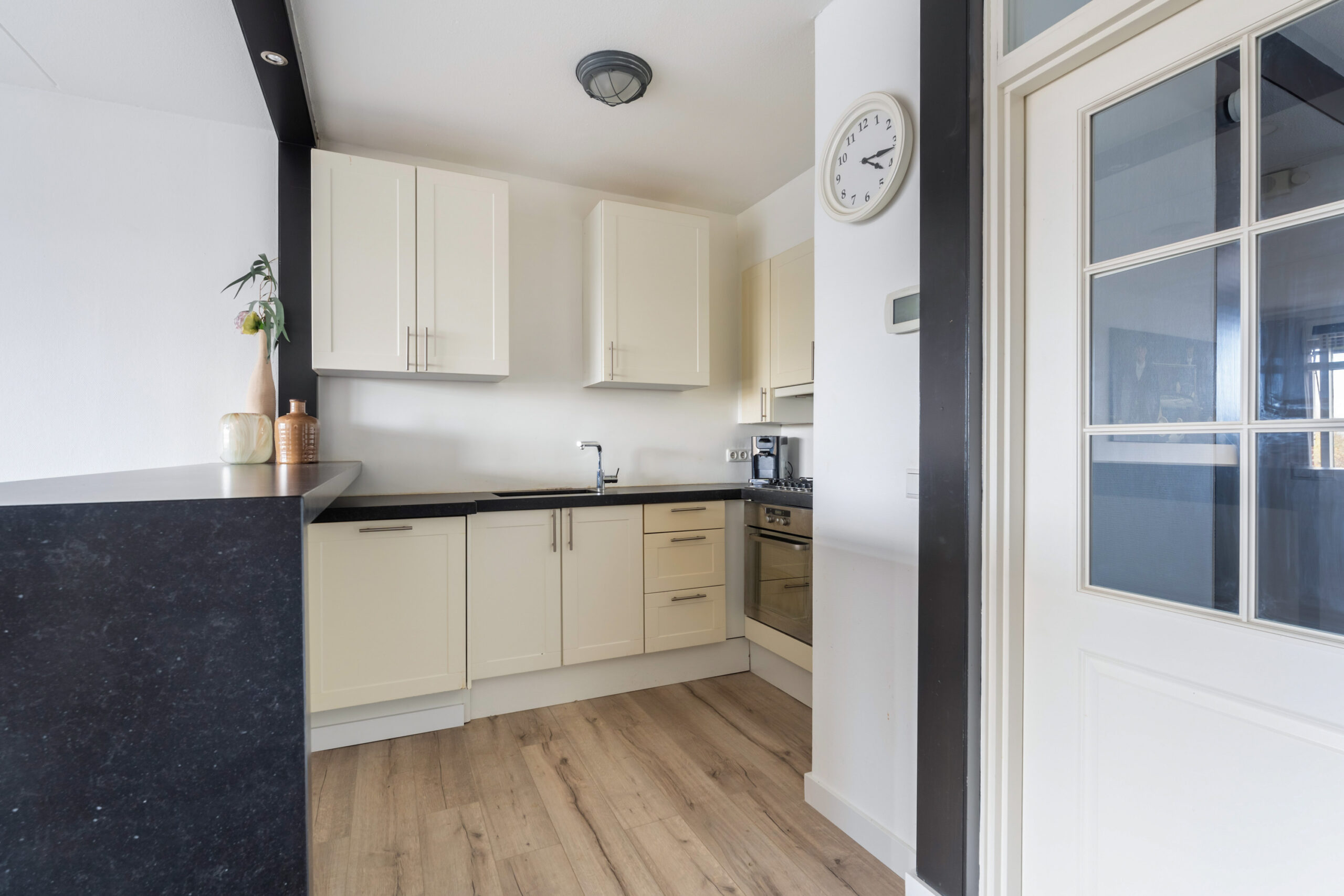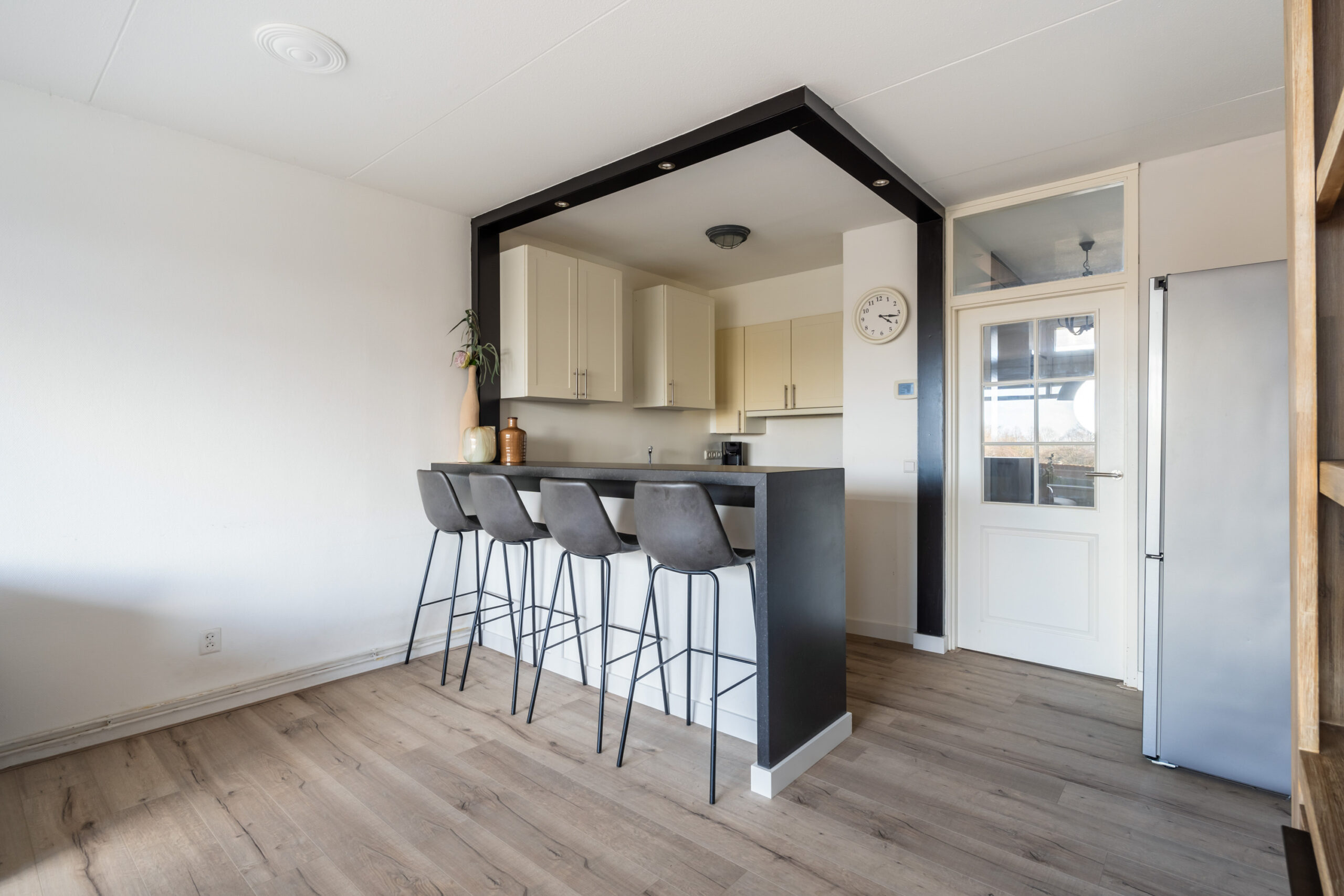 - Open keuken (ca. 2,50 x 1,60 m) in hoekopstelling met bar en diverse inbouwapparatuur, waaronder een vaatwasser, 5-pits gasfornuis, afzuigkap en oven.