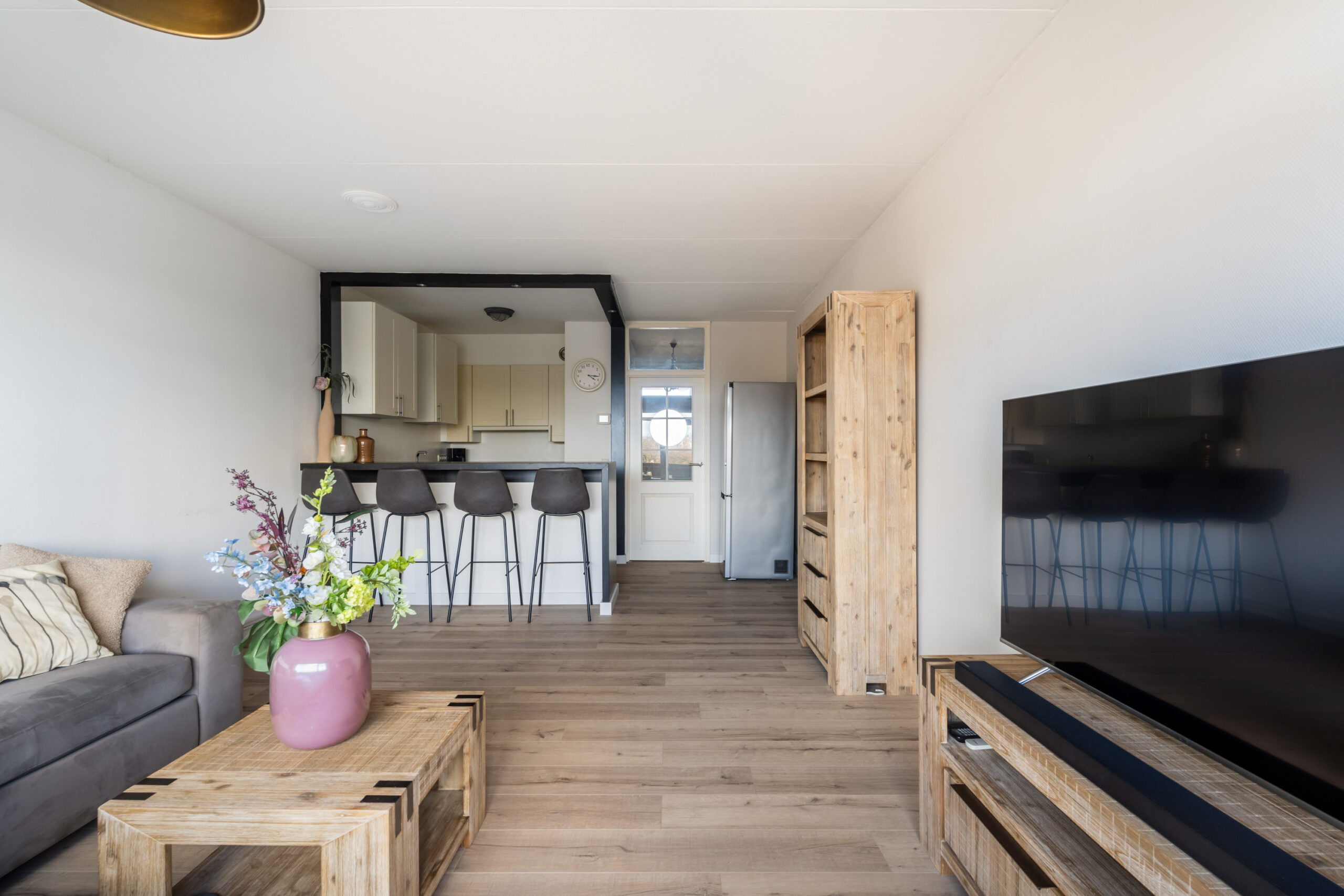 - Heerlijk lichte woonkamer (ca. 6,76 x 3,98 m) met laminaatvloer en toegang tot het zonnige balkon (ZW) aan de achterzijde van de woning;