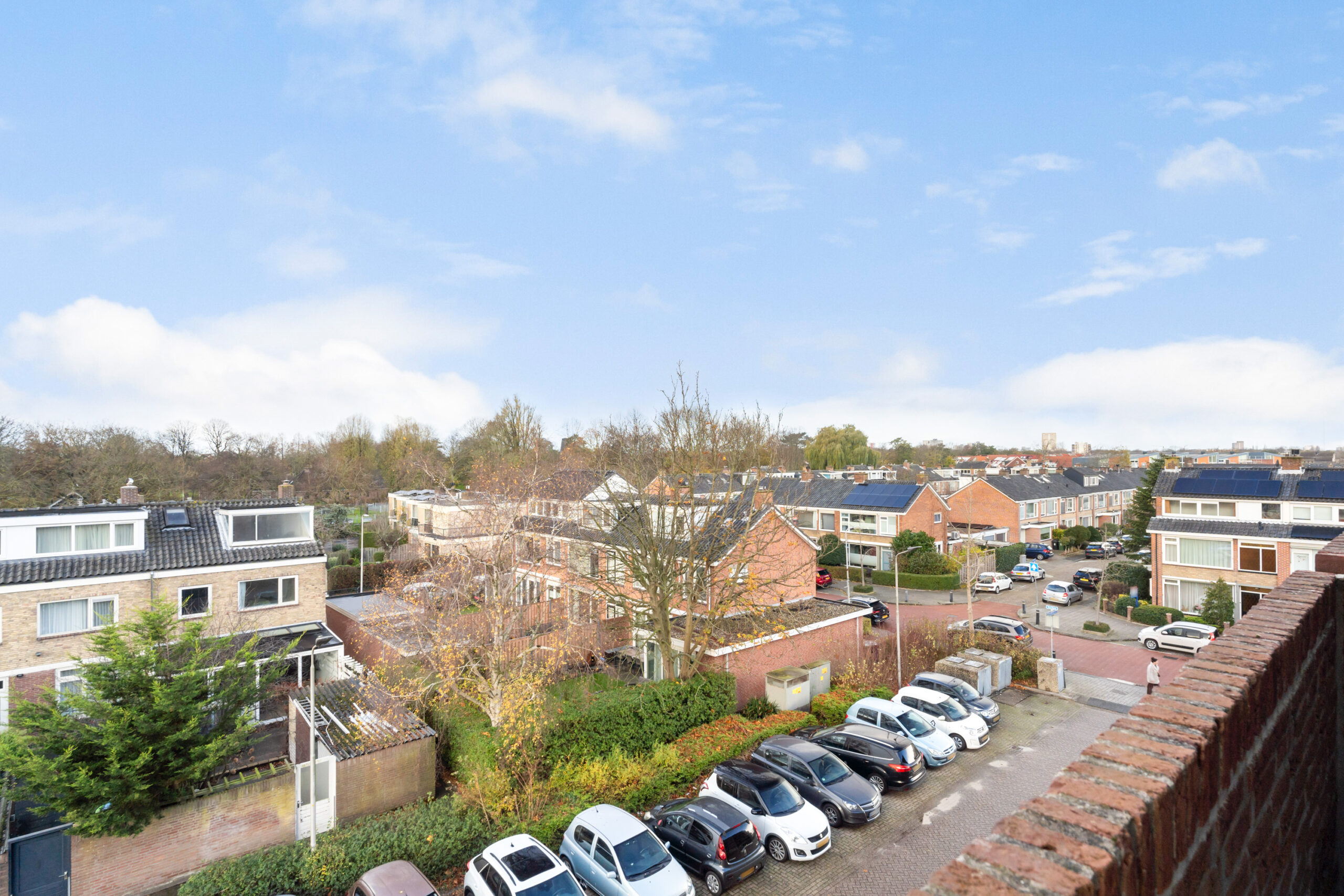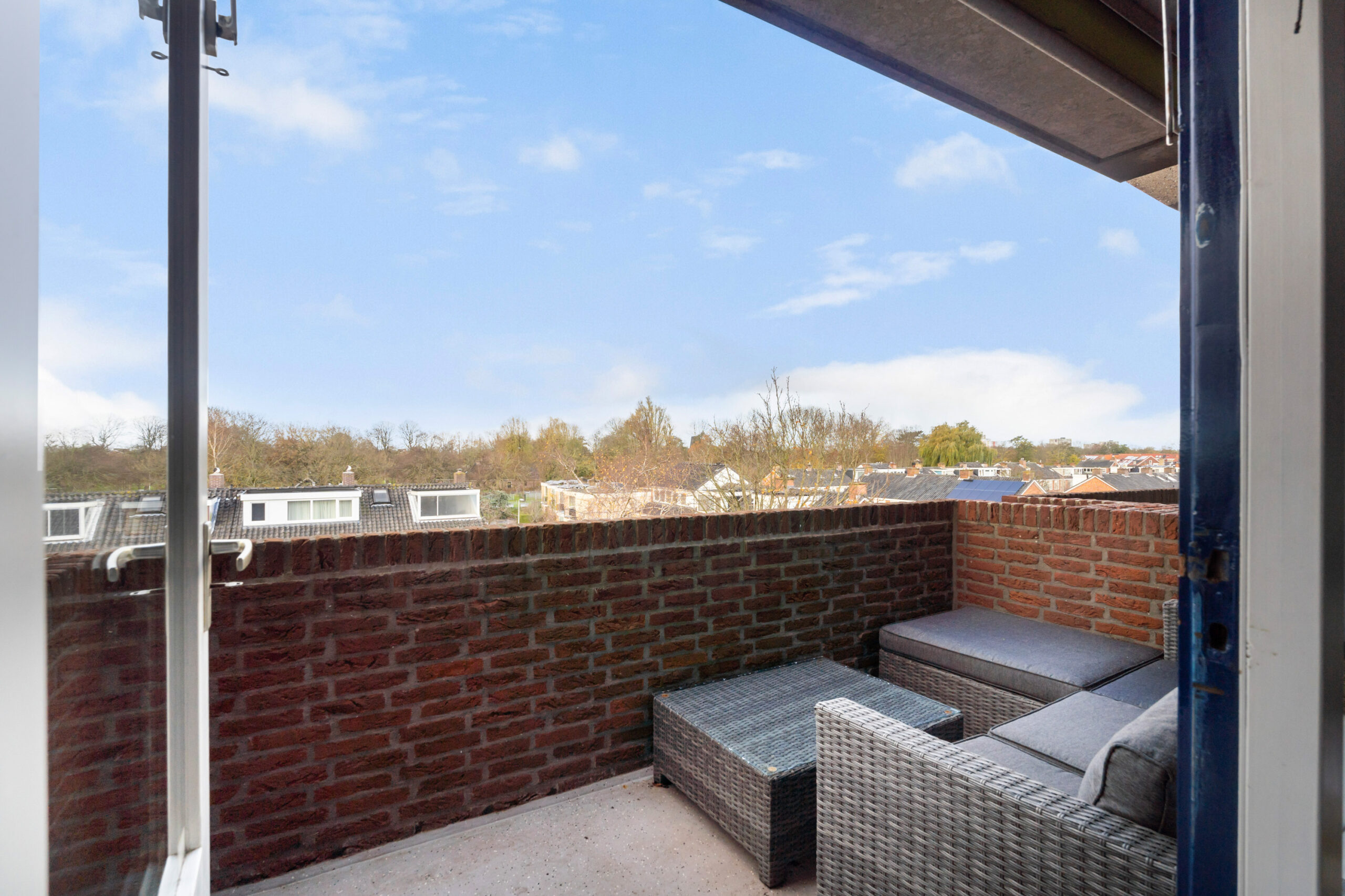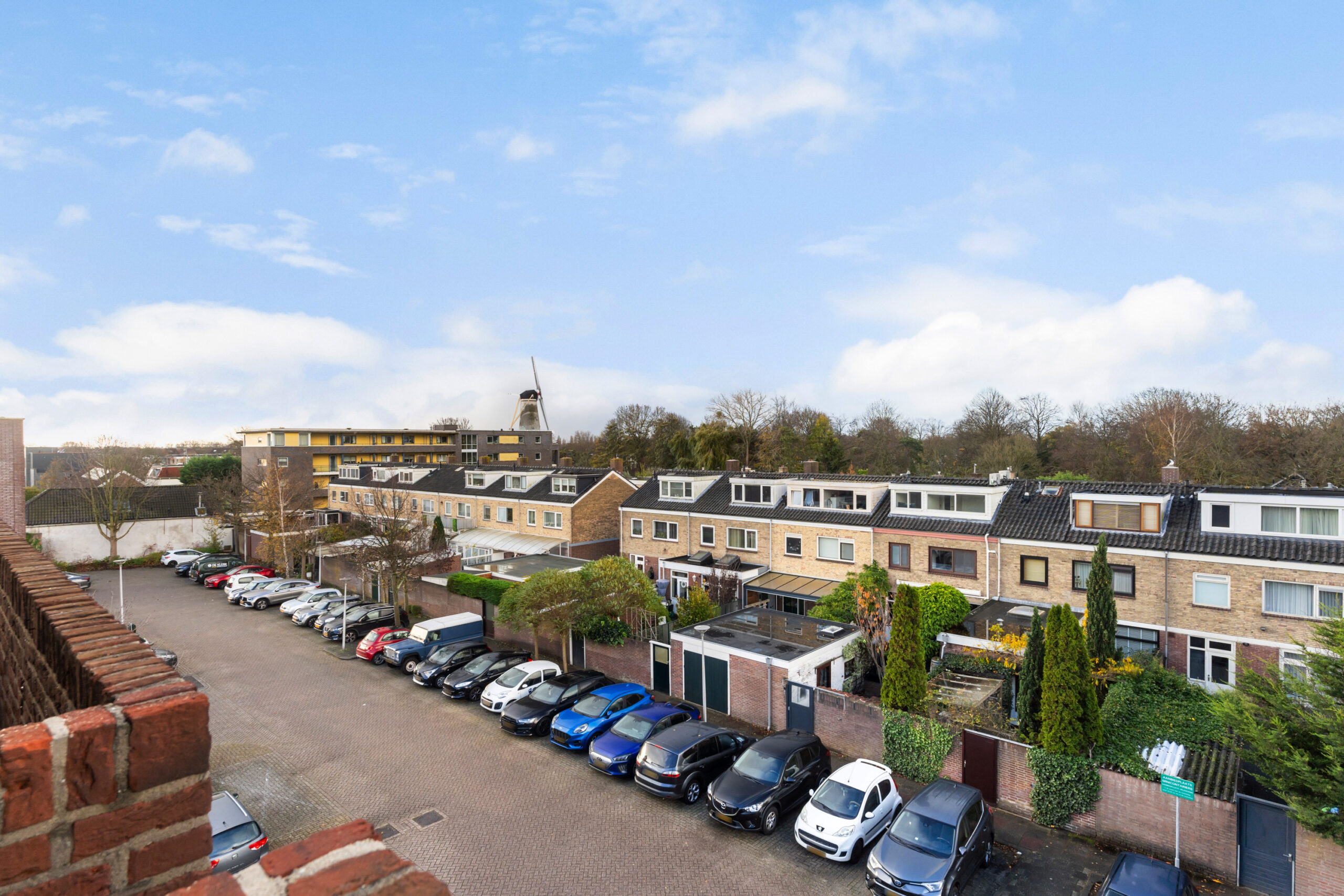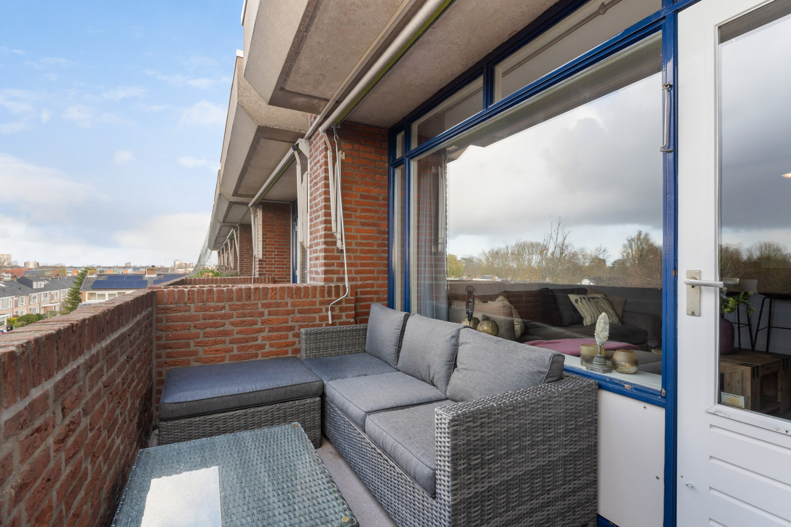 - Zonnig balkon op het zuidwesten voorzien van zonnescherm. Hier kun je heerlijk genieten van het middag- en avondzonnetje. Vanaf het balkon je een vrij en leuk uitzicht richting het Hofpark en de molen;