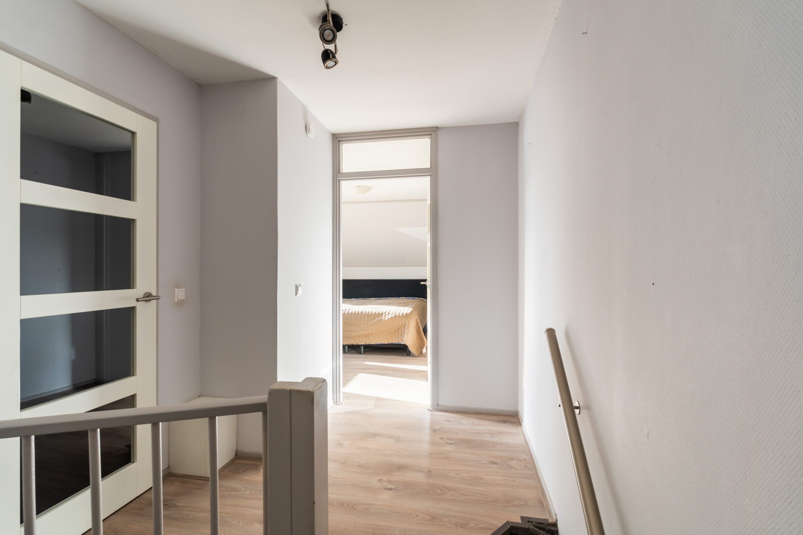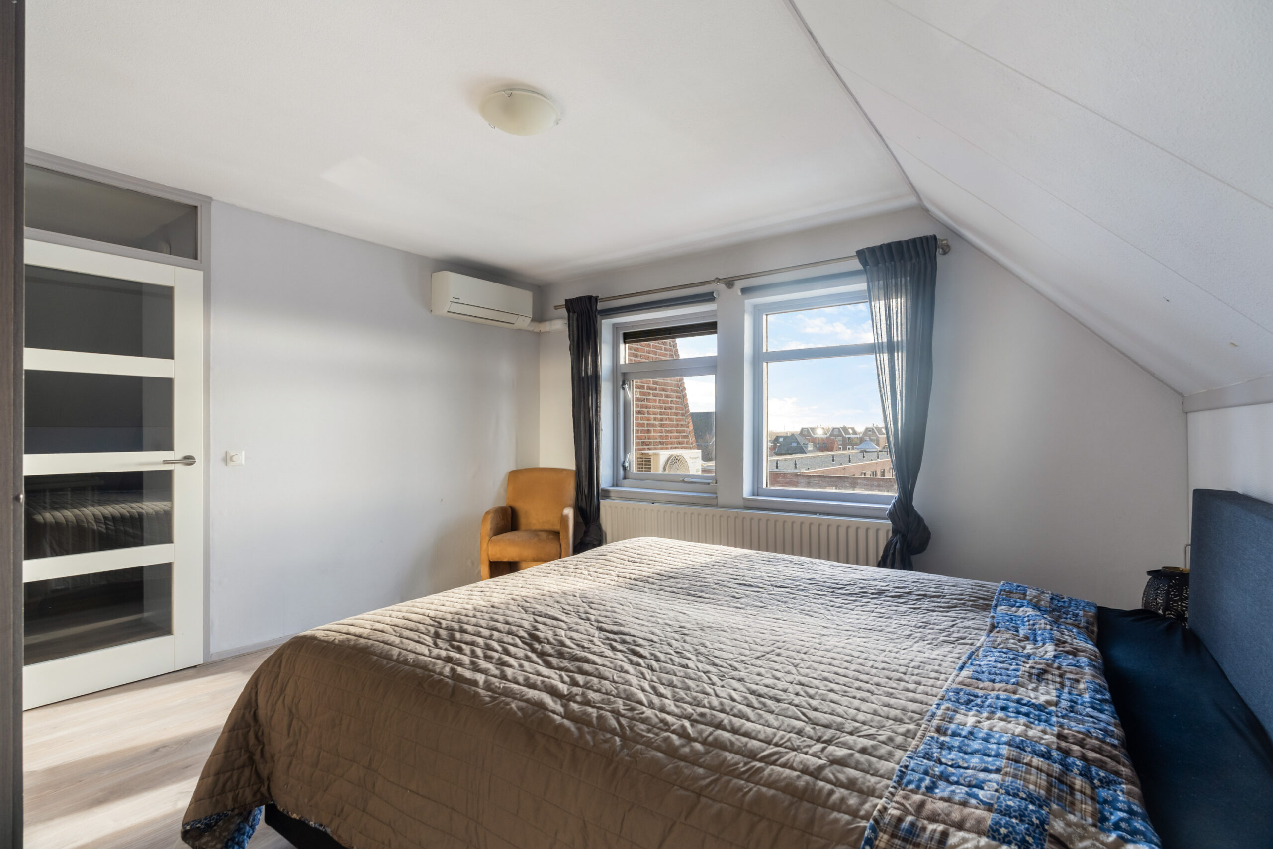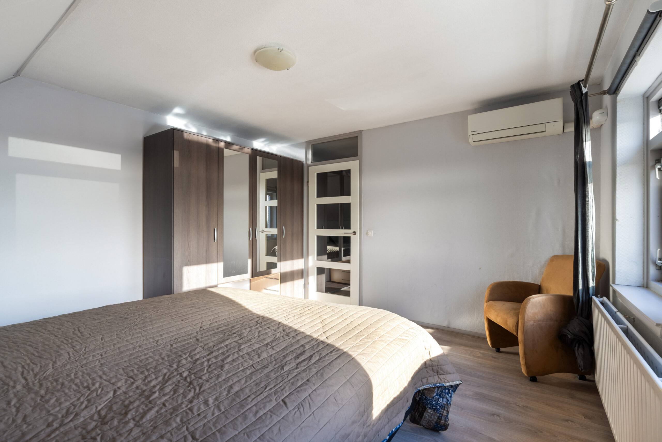 - Grote slaapkamer aan de achterzijde van de woning voorzien van laminaat en aircoconditionering, extra bergruimte aanwezig achter het knieschot;