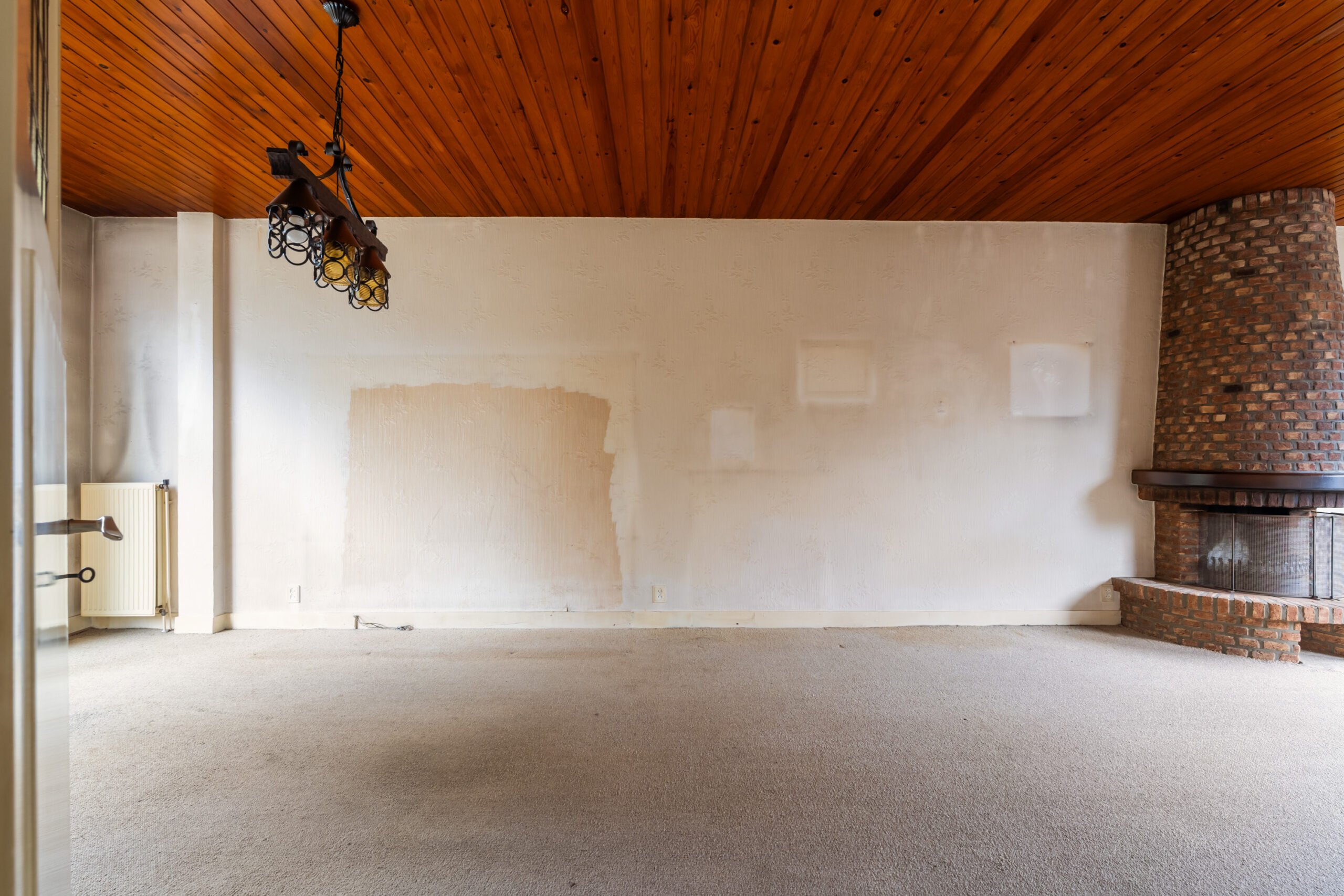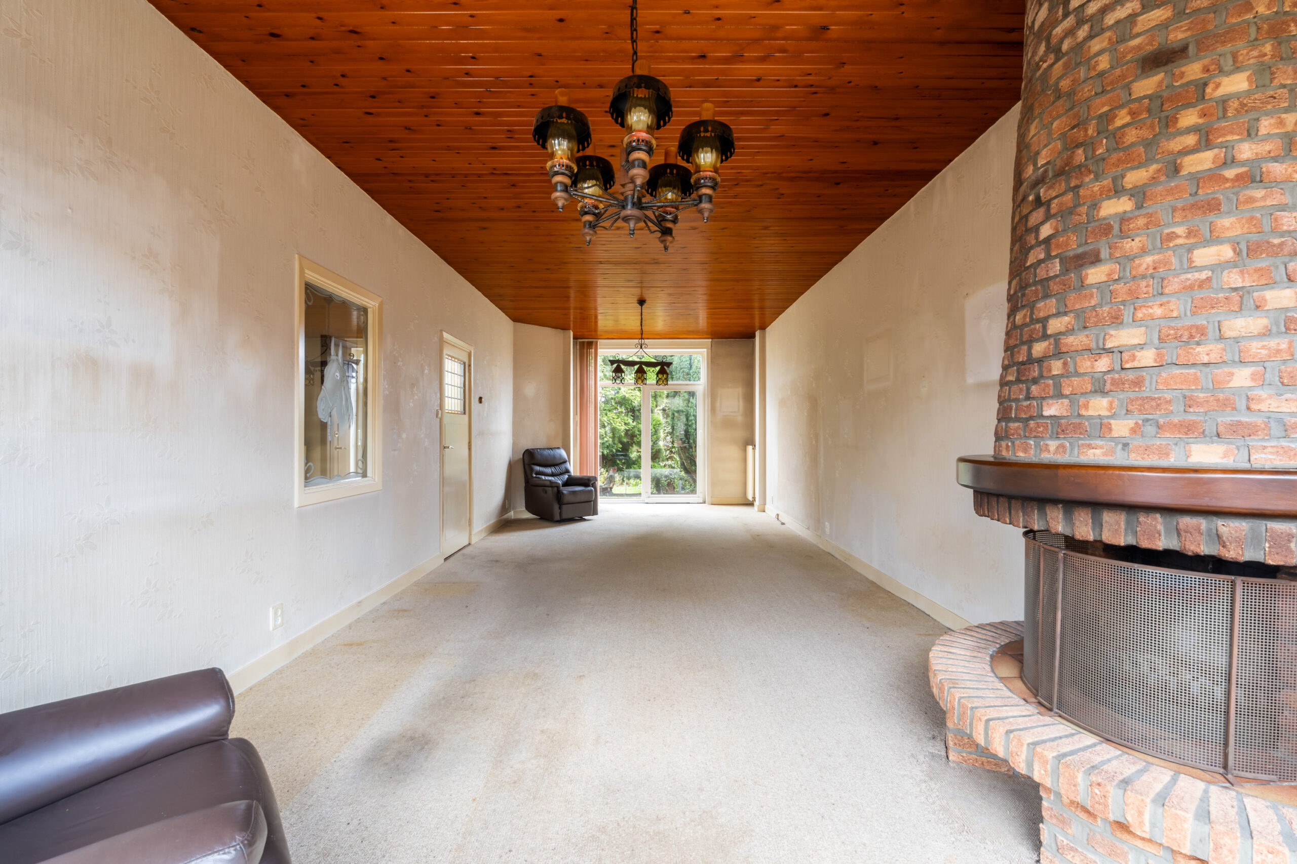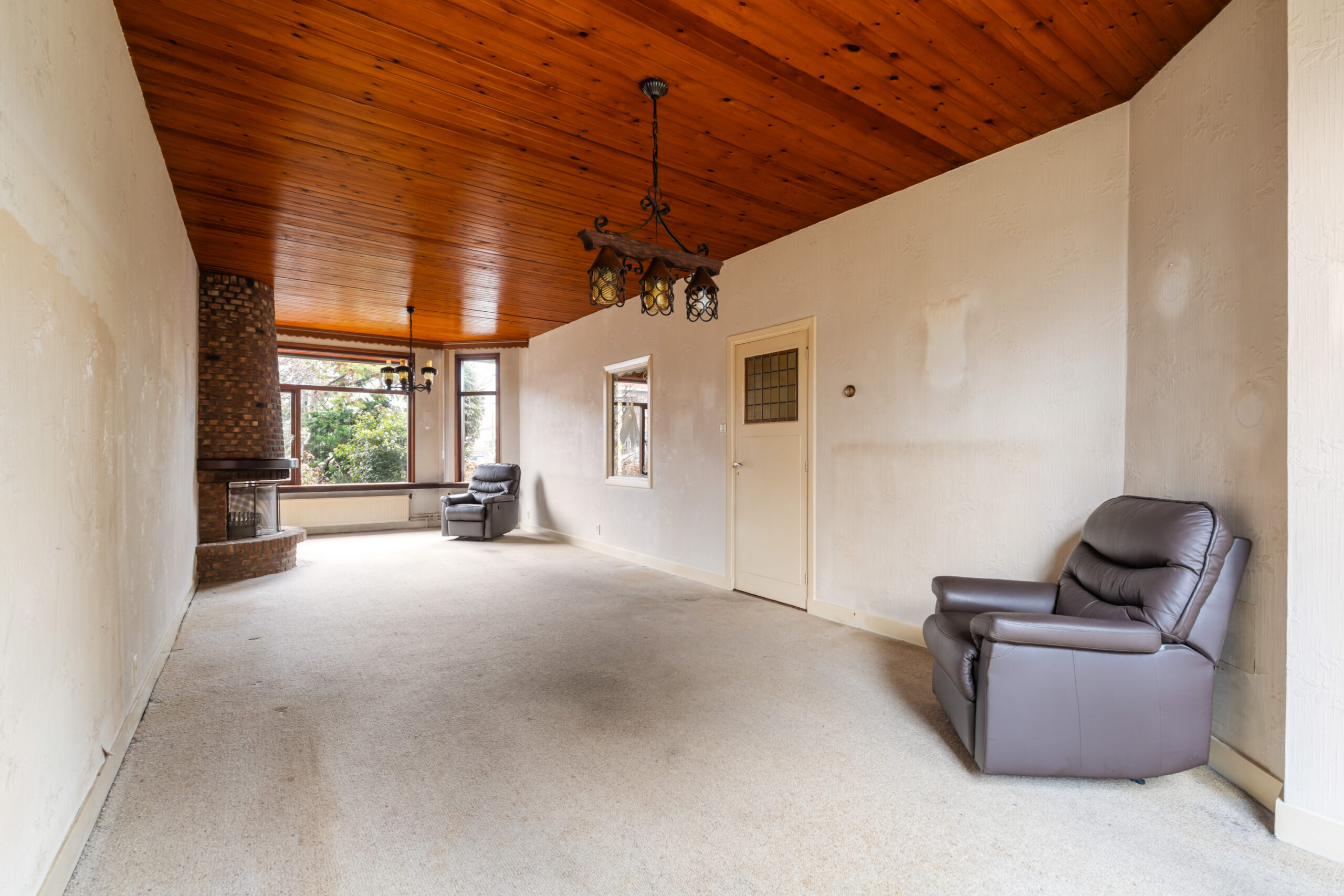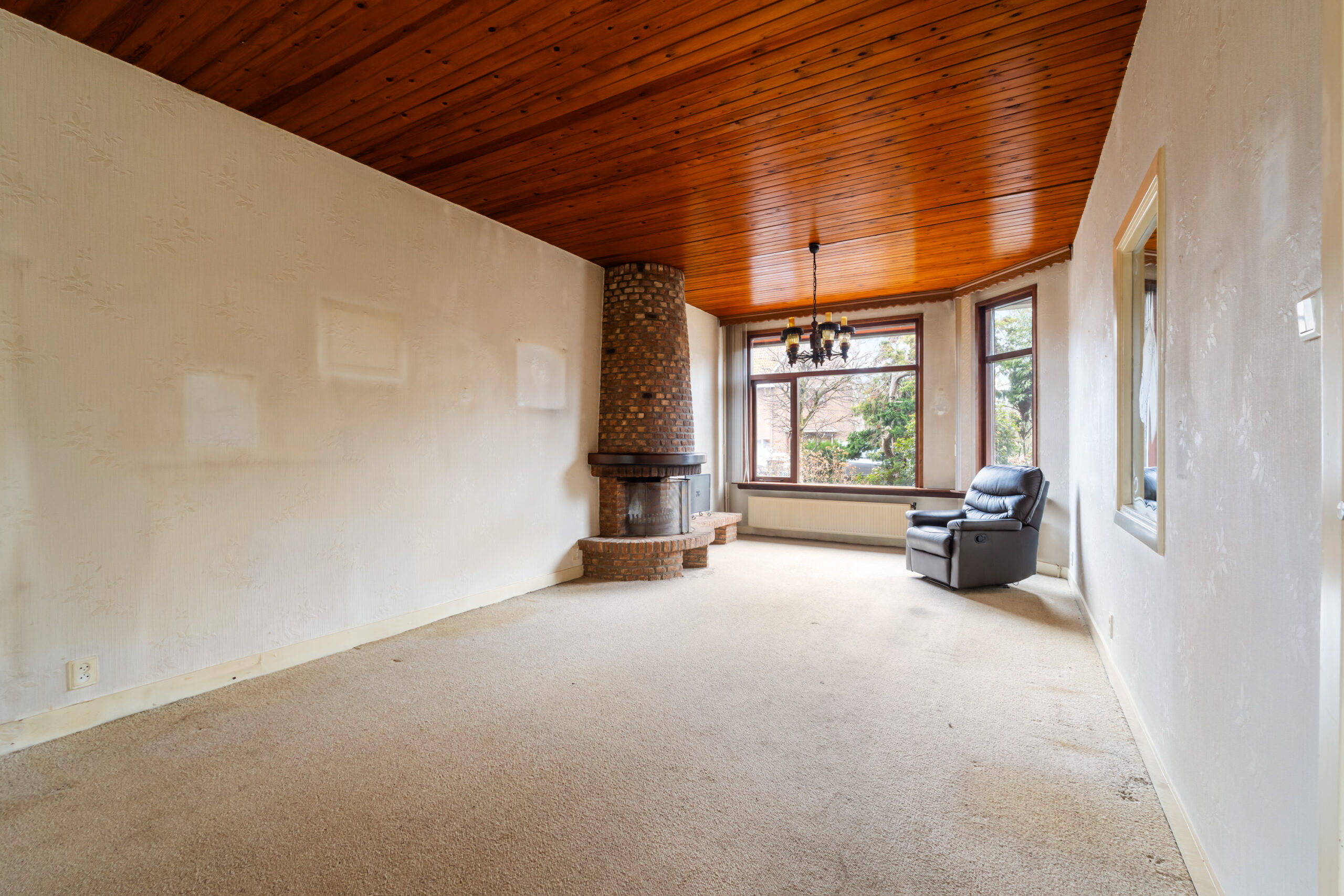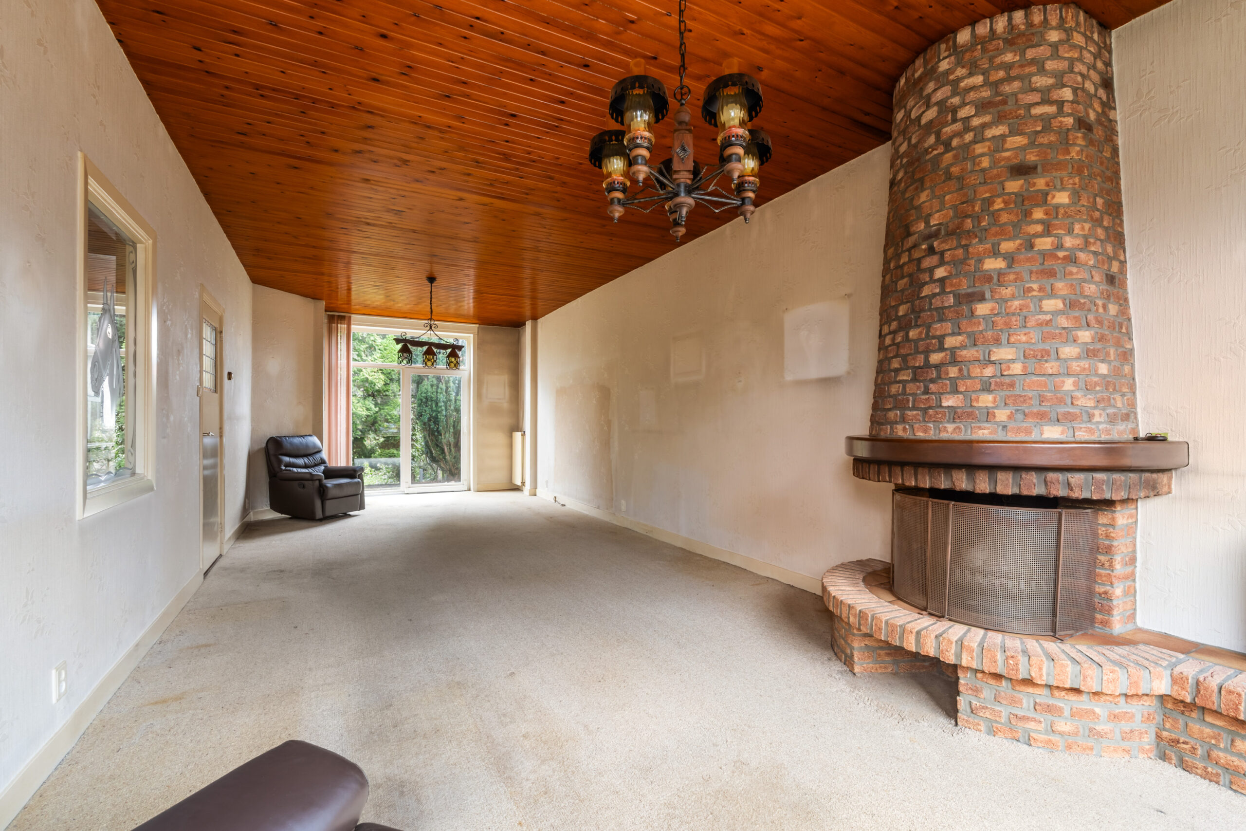 - Royale en lichte woonkamer met open haard en kunststof schuifpui naar de achtertuin.